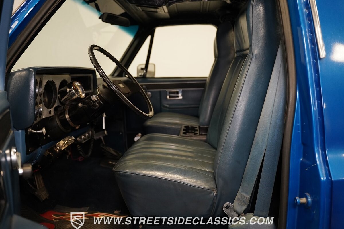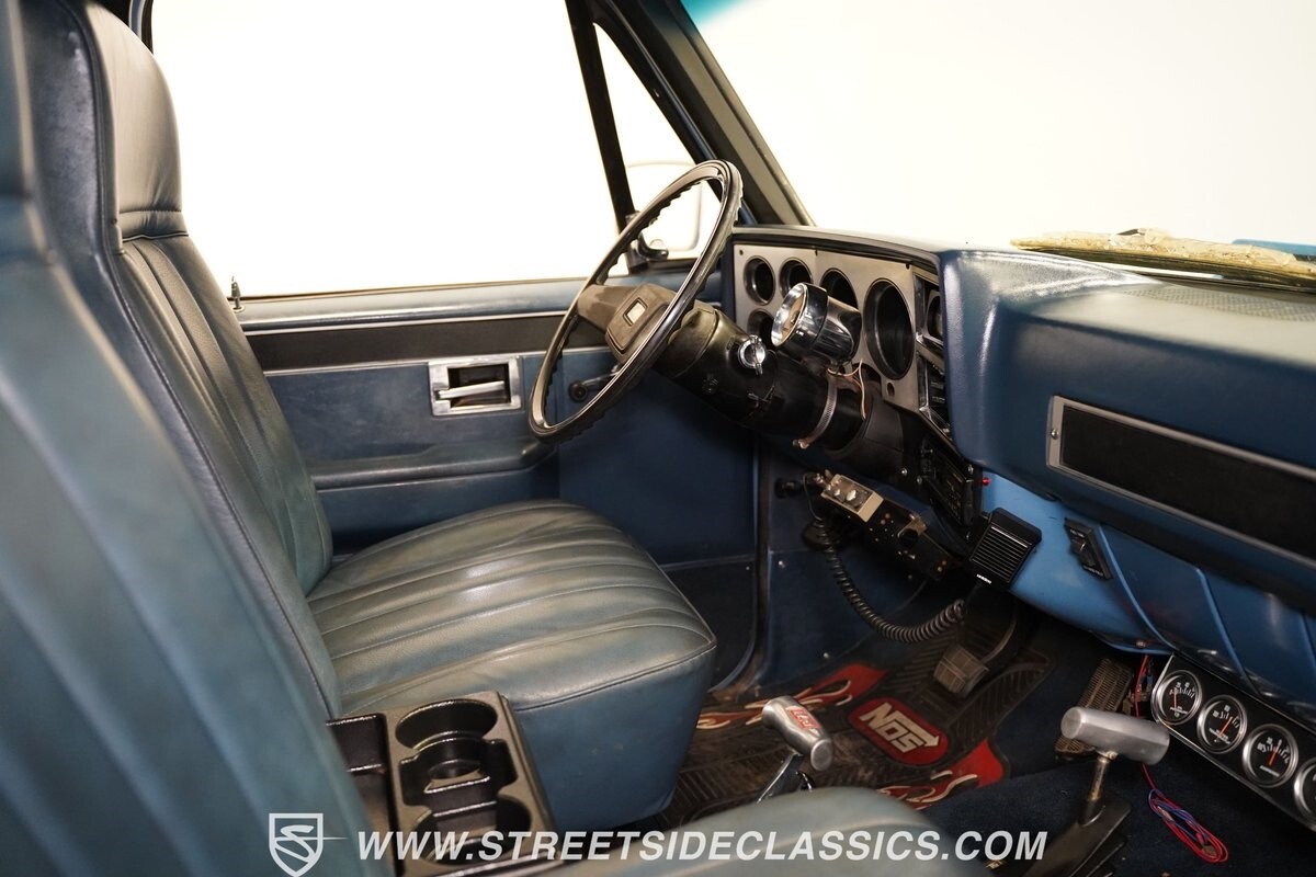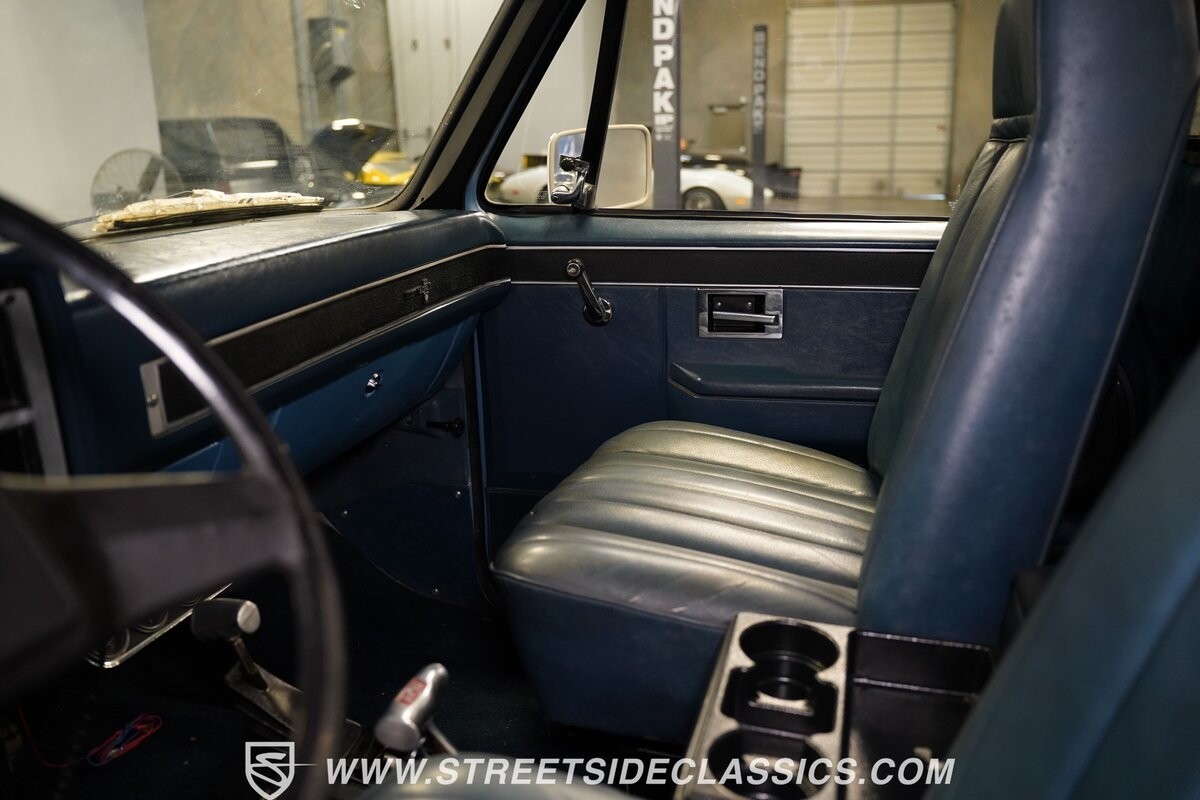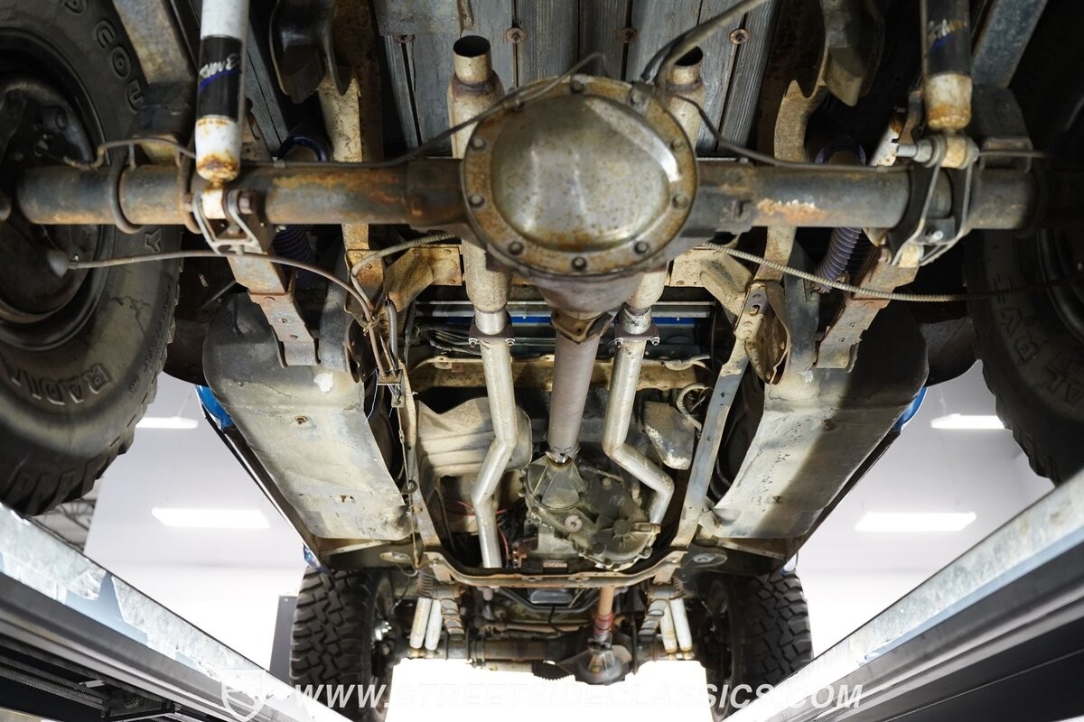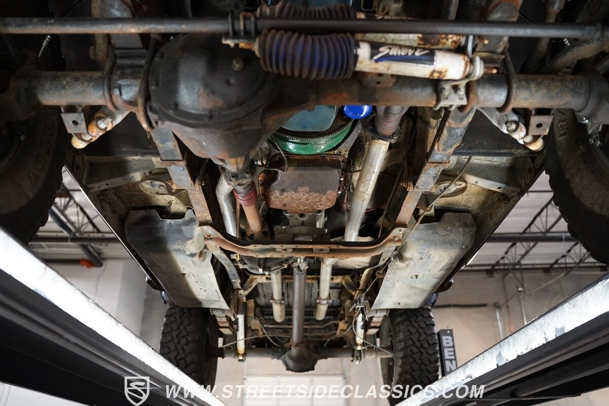 Powering this K10 is a force-multiplied 400 V8 engine, amplified by a B&M supercharger and fueled through a Carter AFB 4-barrel carburetor. Long tube headers feed into a Cherry Bomb dual exhaust system, producing a soundtrack that matches the truck's muscular appearance. A TH400 transmission and NP208 transfer case efficiently distribute power to all four wheels. Power steering and brakes (discs up front, drums in rear) keep this Chevy manageable on any terrain. An aluminum radiator maintains optimal operating temperatures, while an HEI ignition system delivers reliable starts every time.