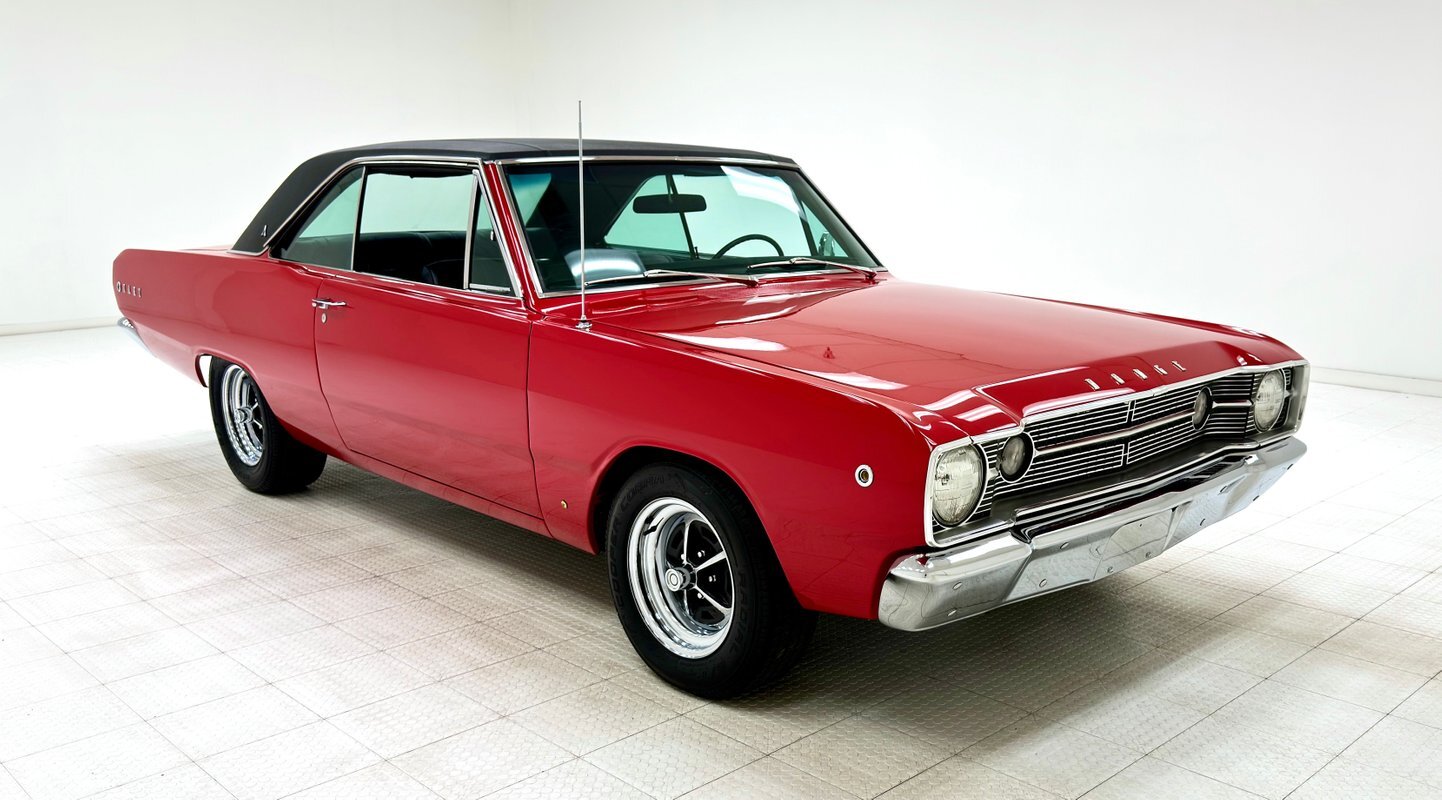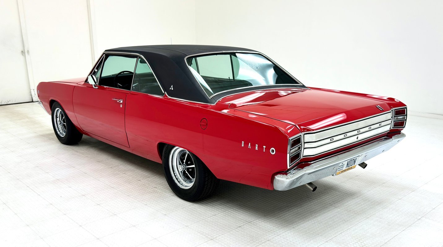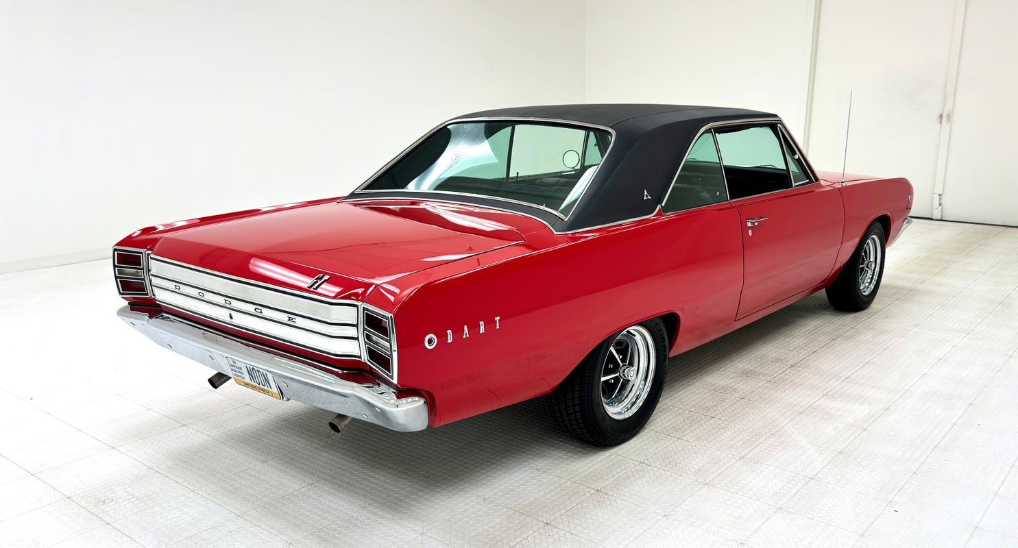 For consignment, a 1968 Dodge Dart GT hardtop with a rebuilt 318ci V8 crowned by a Holley intake manifold and Edelbrock carburetor. It's in great condition and is representative of some of the 60's automotive trends that were prevalent at the time.