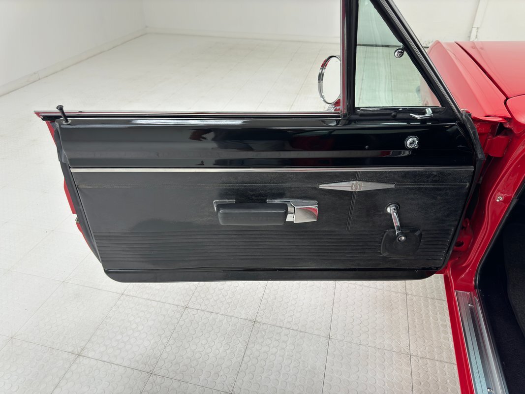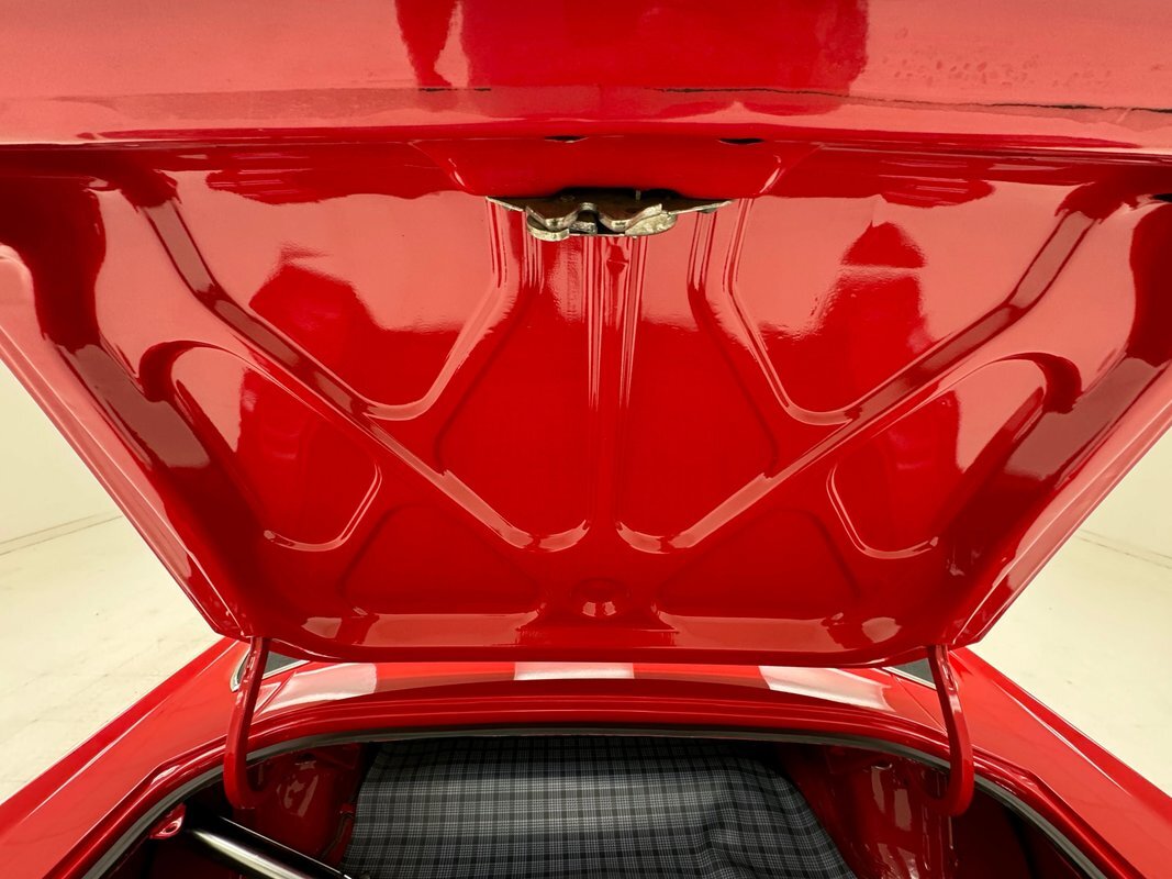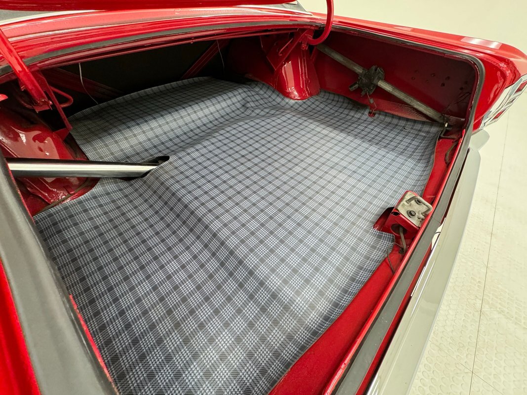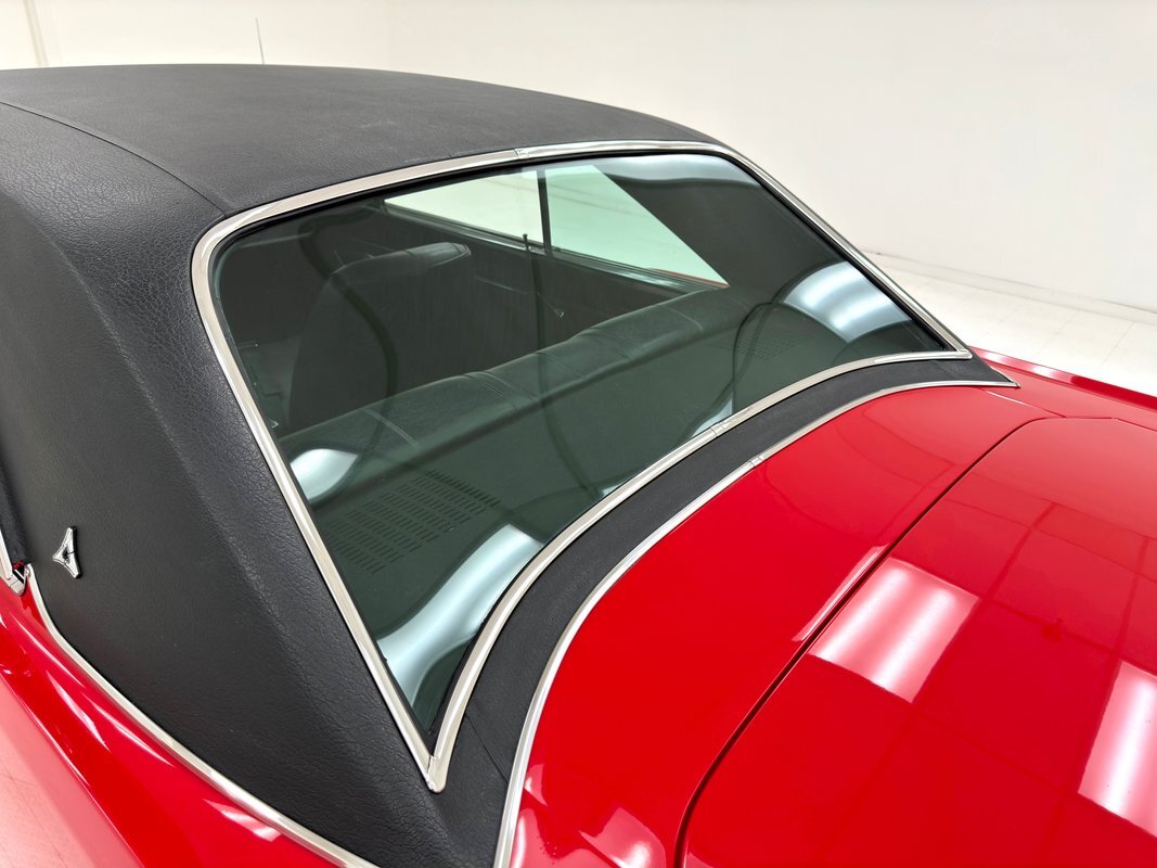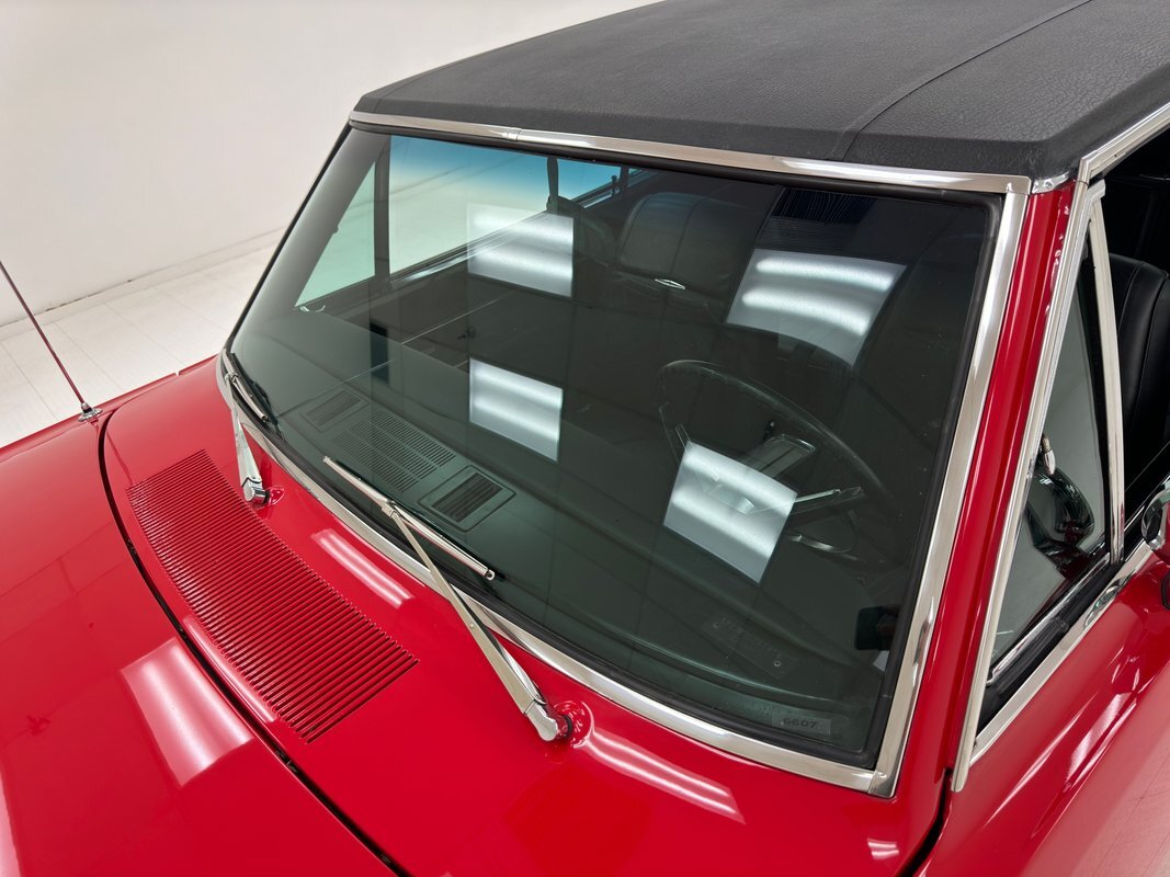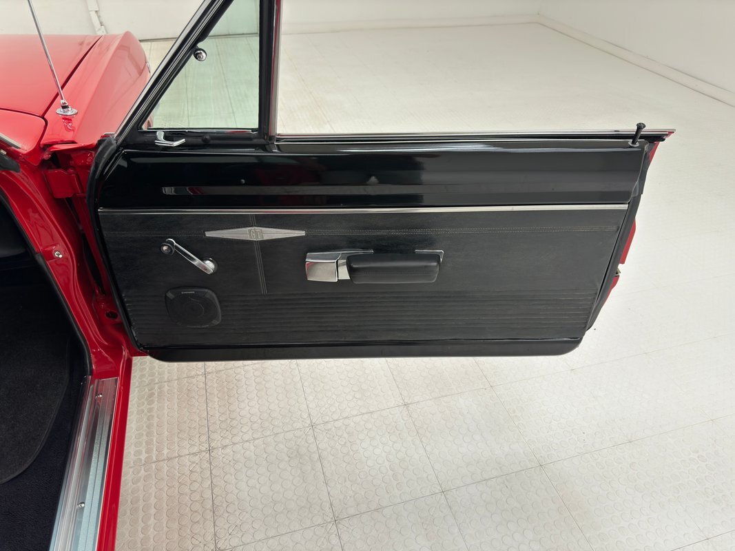 Stunning red paint with a black vinyl top makes a dramatic presentation on this mid-level performance car, considered a small car for the times, and marketed to the free love young demographic, but probably ending up in more adult hands for people who were looking to downsize from big 60's family cars. This is a remarkably clean and original example that is show worthy.