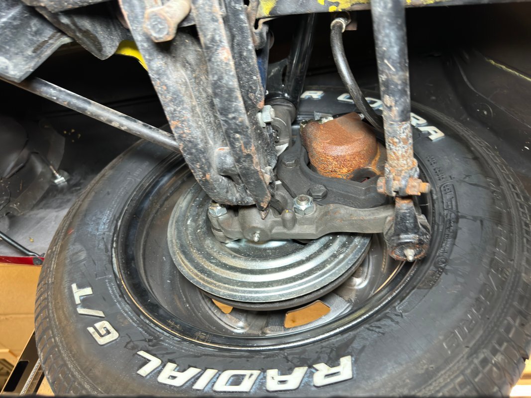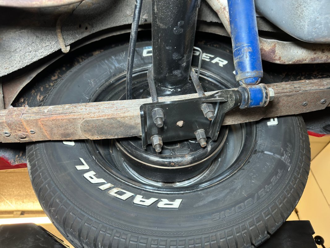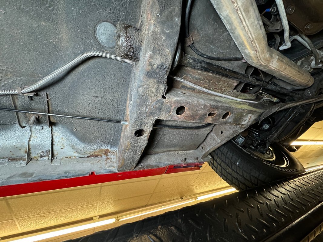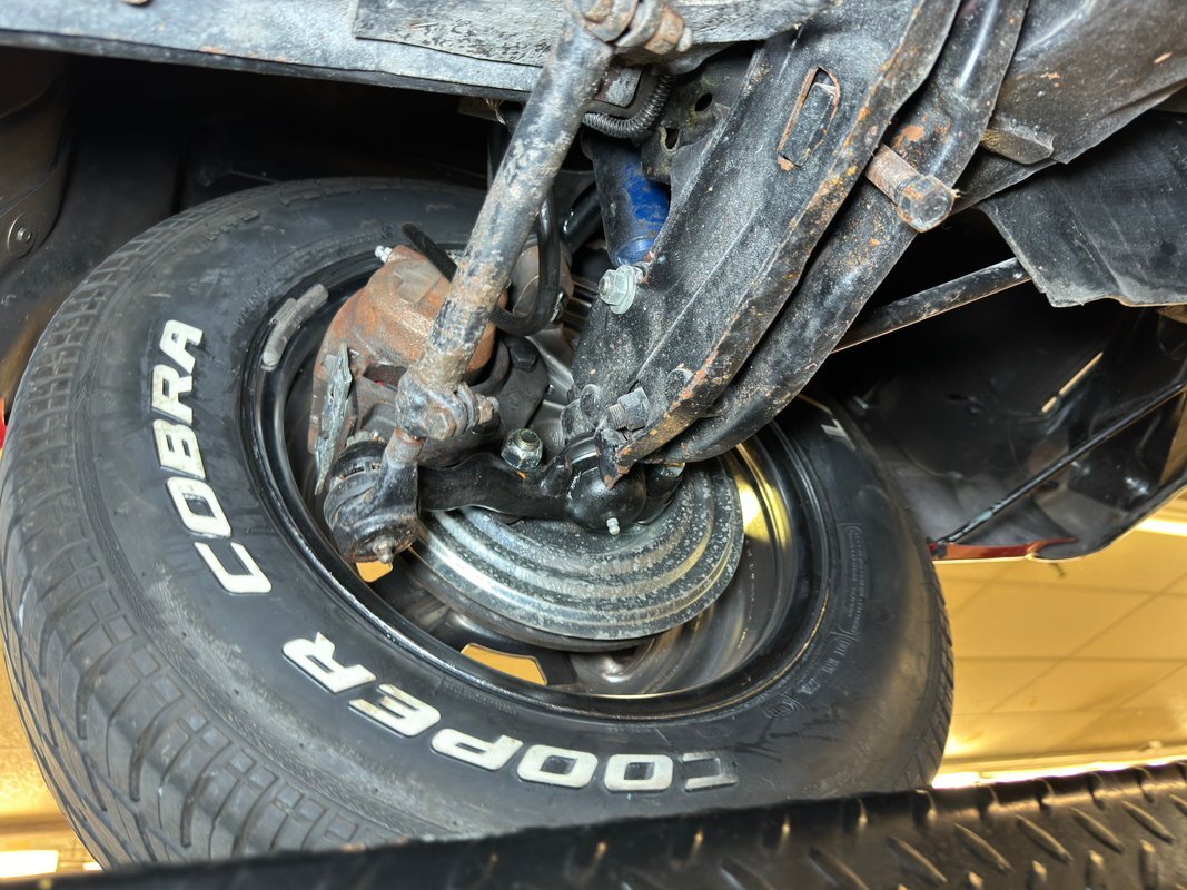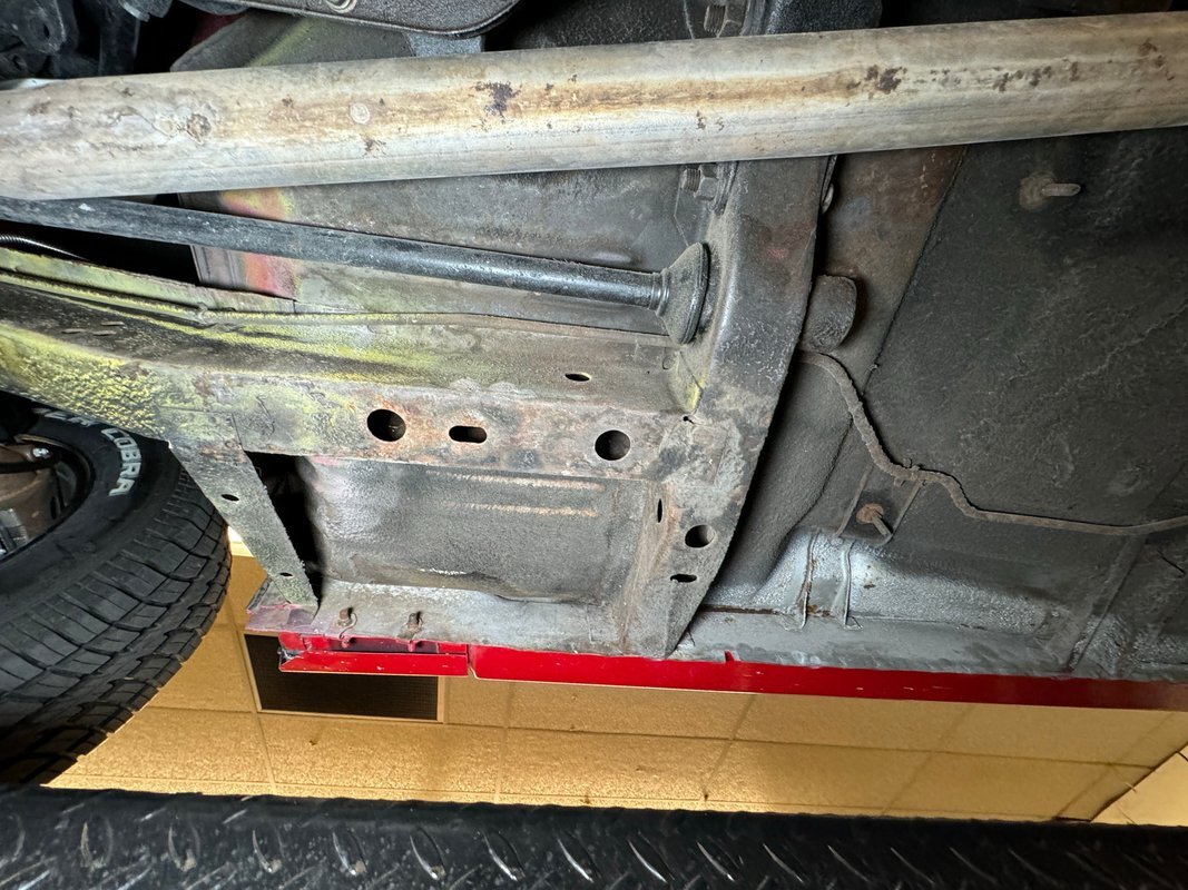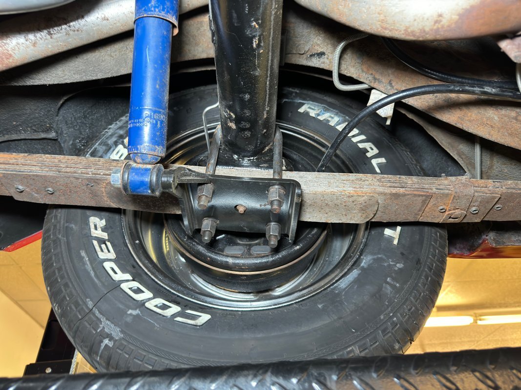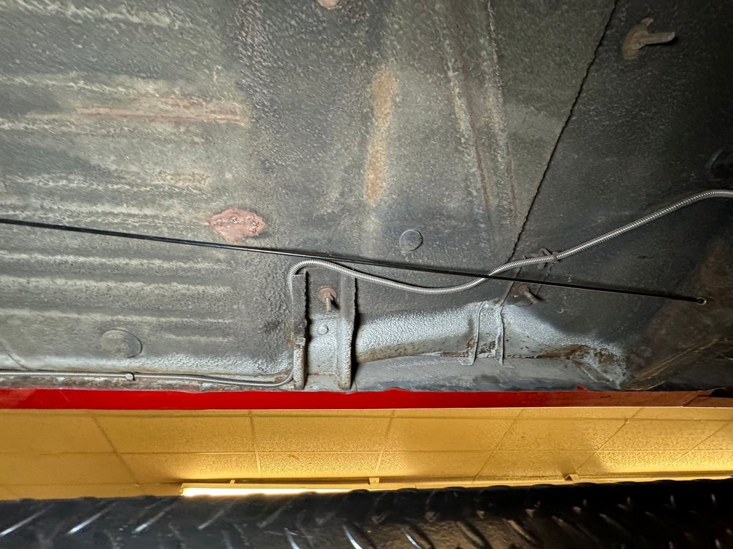 Wonderfully clean underneath with minimal surface rust, dry pans, and knuckles that are free of grease. The dual exhaust travels into Xlerator mufflers before exiting in the back. Torsion bar suspension is found up front with leaf springs in the back. No disappointments here, it's darn clean!