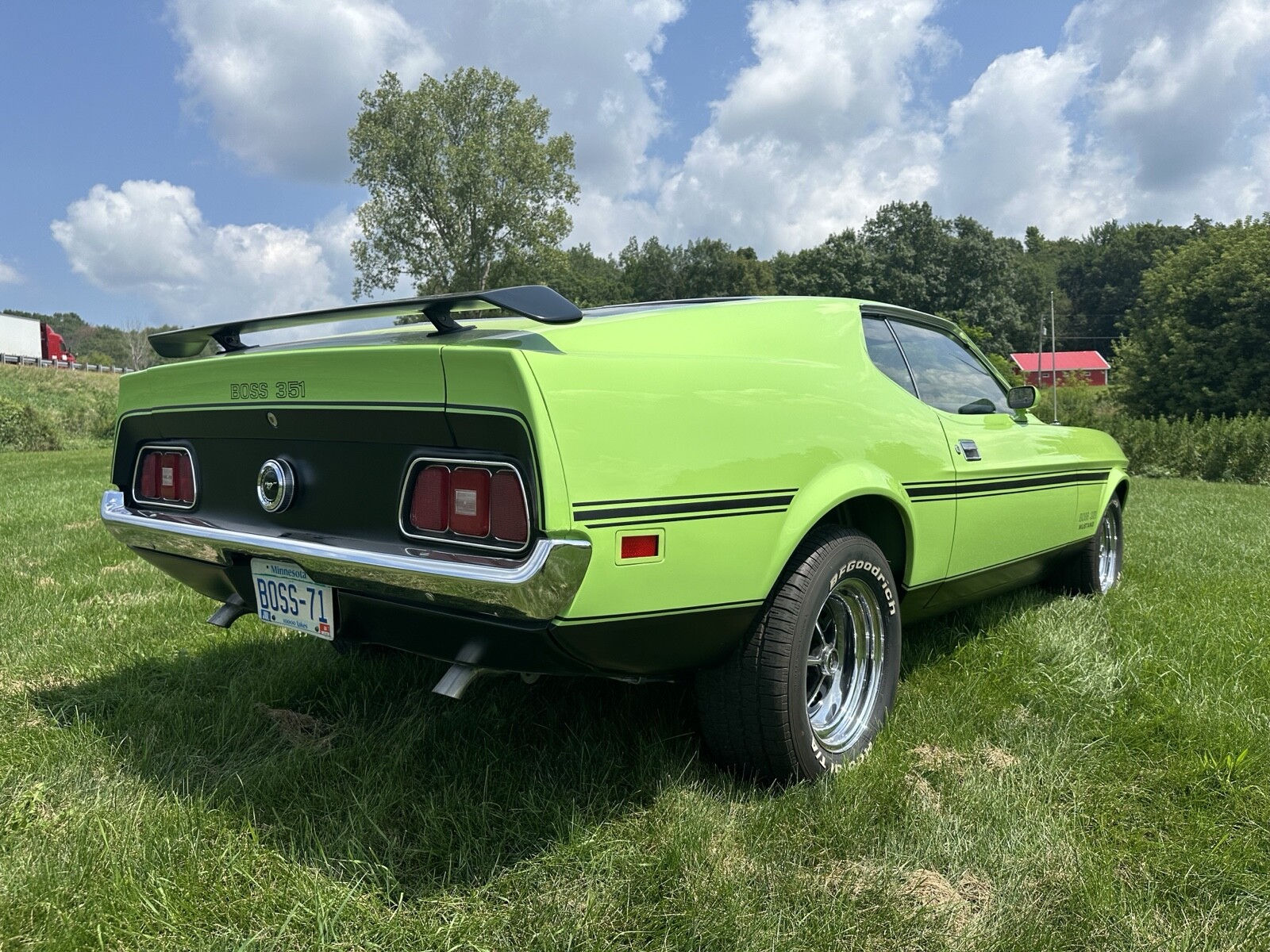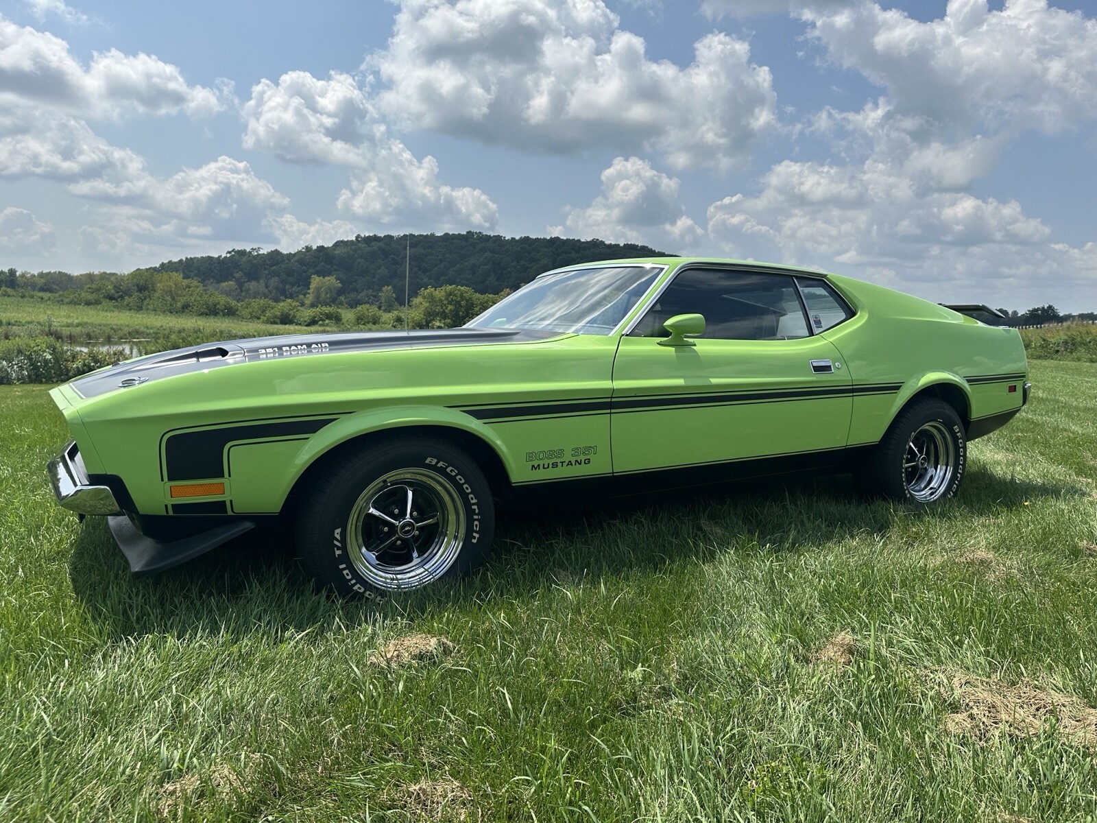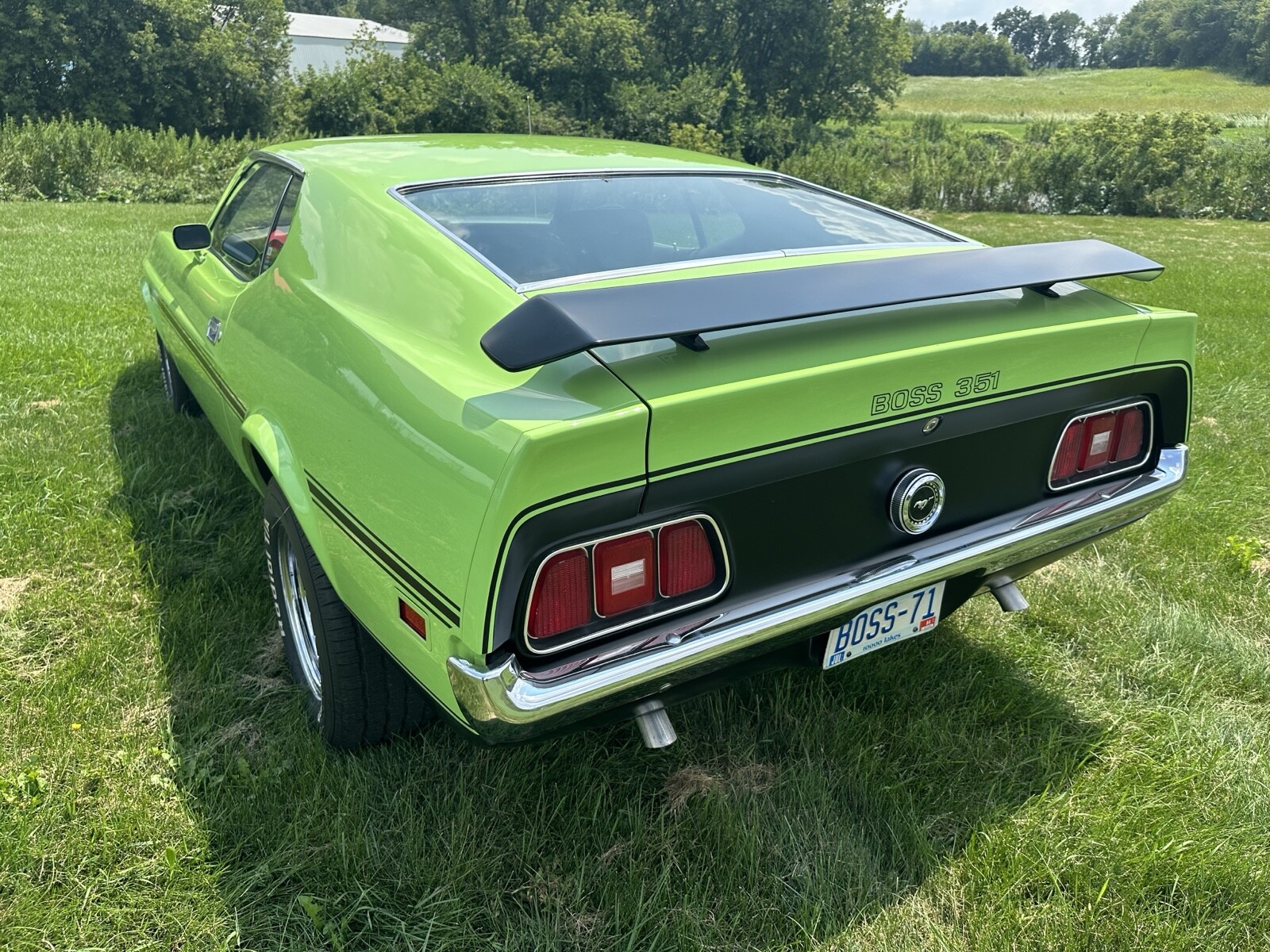 This is a no-excuse fresh rotisserie-restored Grabber Lime Boss 351. All mechanical systems gone through including motor, suspension, steering, fuel, clutch, rear end, brakes, ignition, U joints, and 31 spline axles w/ new bearings and seals. Complete restoration. Professional, no-expense spared paint job. Motor has been rebuilt per factory specifications. Runs and drives flawlessly. This true Boss engine has the very rare D1ZX-9425-DA intake manifold which will accept the Holley square-bore carburetor. Comes with folder of original paperwork. Fly in and drive it home! Be the first owner to take possession of this car after a complete rotisserie restoration. Only 1806 Boss 351s were produced and they came in a variety of colors, but the rarest two production colors are Grabber Lime and Medium Yellow-gold. Each only had 67 painted in that color. Call Bob @ 608-575-9051Seller's Notes