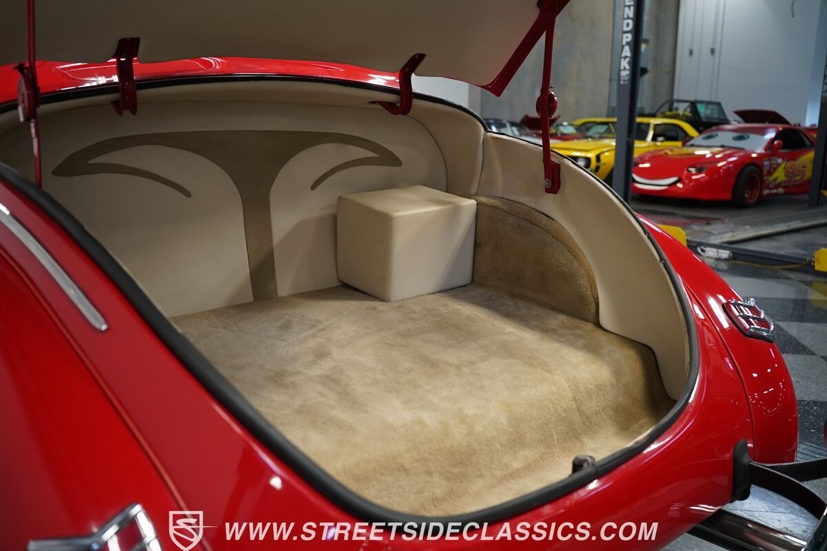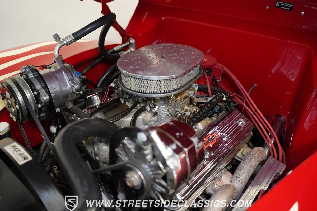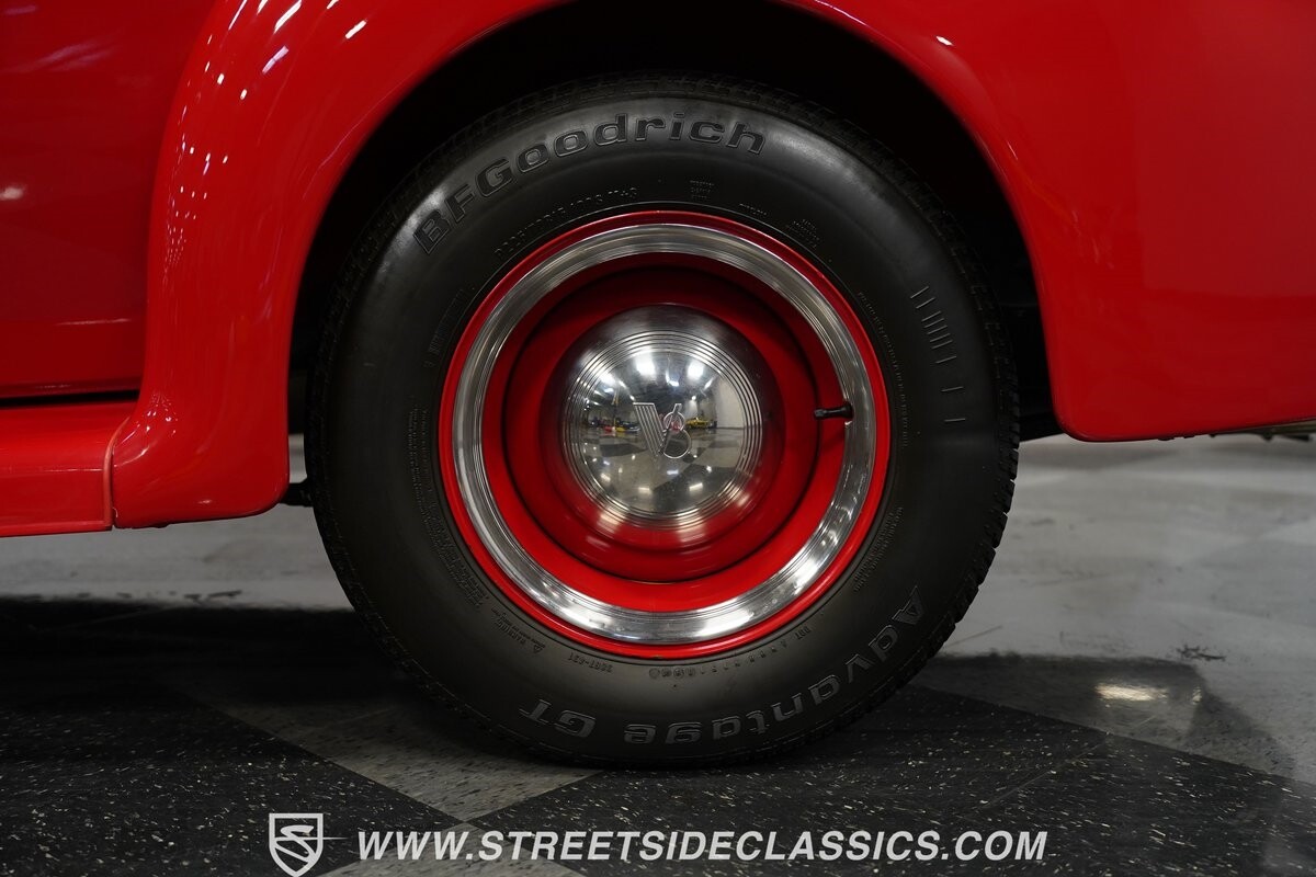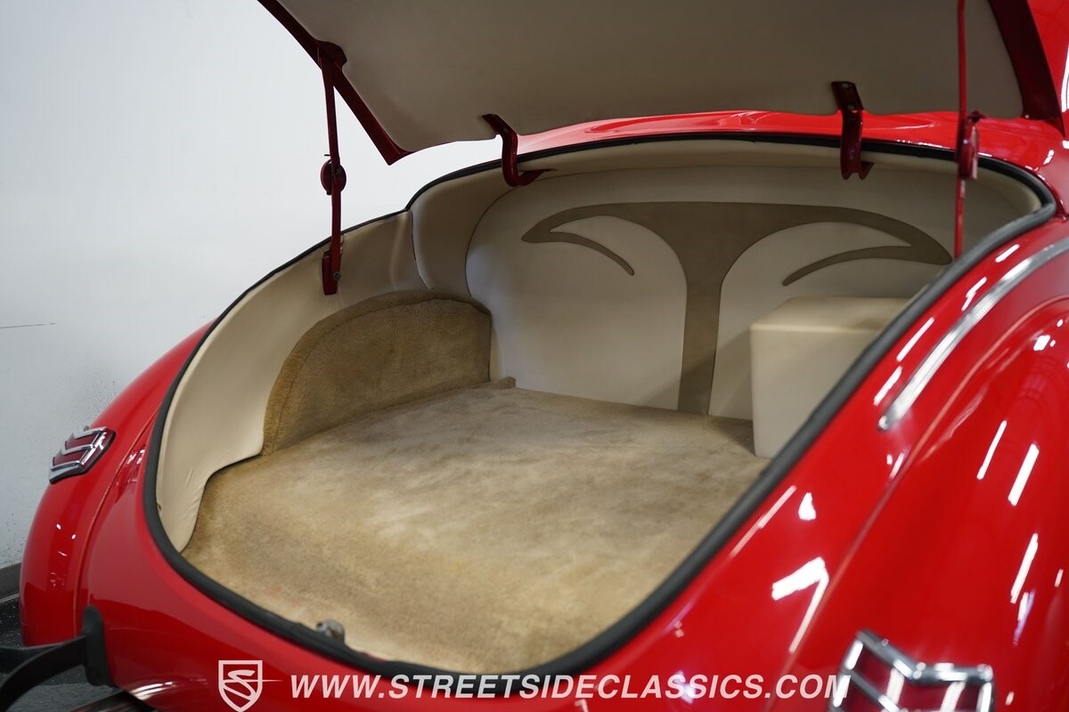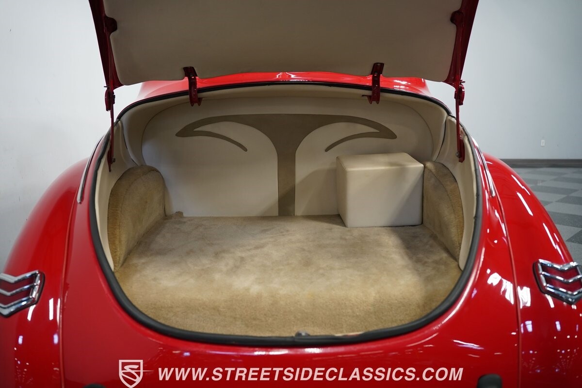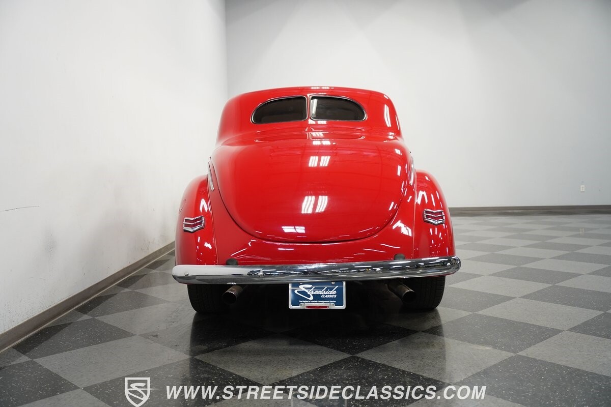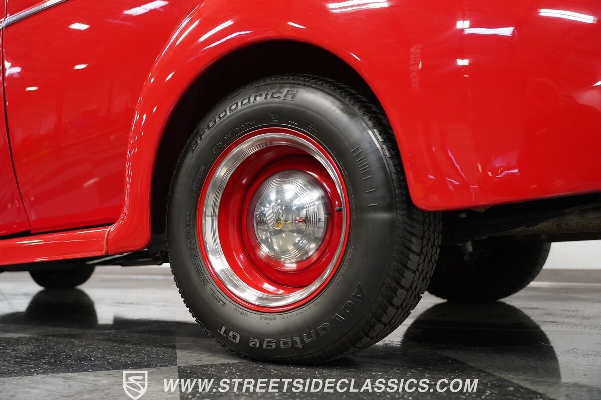 This 1940 Ford Coupe Streetrod is a blast from the past with a whole lot of attitude. That red paint gleams, with white flames dancing across the hood for an extra shot of excitement. It rolls on 15-inch red steel wheels with gleaming chrome caps, wrapped in classic 195/60R15 tires up front and wider 225/70R15s in the rear. This is an all-steel beauty, with smooth lines from the fenders all the way down the running boards. Chrome bumpers, dual mirrors, and those snazzy tri-bar headlights add just the right amount of shine. With power rack and pinion steering and a V-butt windshield, it's got classic hot rod looks with a touch of modern handling.