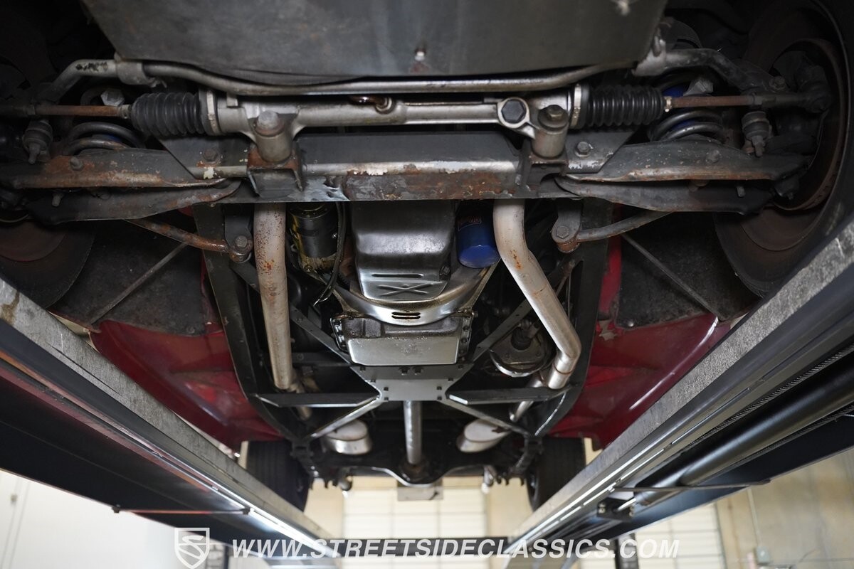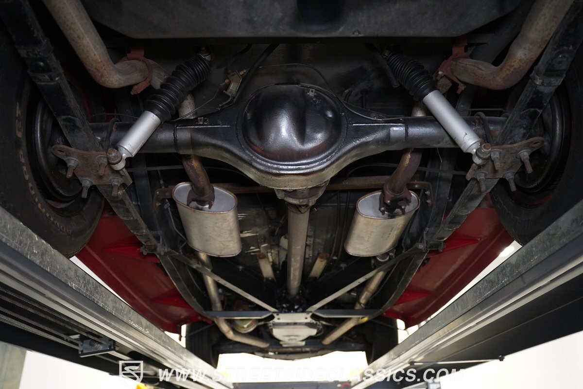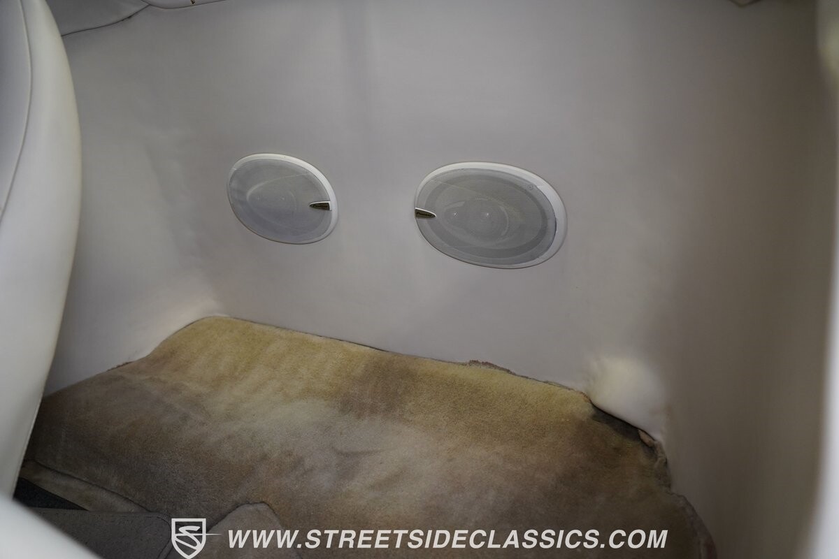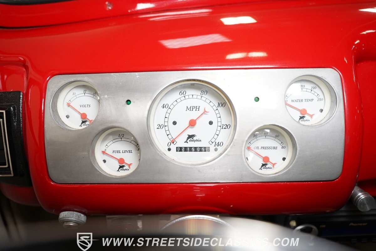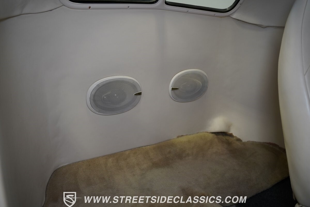 Slide inside the cabin and the custom touches just keep on coming. The interior's all dressed up in tan, with vinyl bucket seats boasting suede inserts for a touch of luxury. Matching tan door panels keep things cohesive, while power windows add a bit of modern convenience. The chrome tilt steering column shines, topped with a Billet Specialties custom leather wheel that begs to be gripped. Keep an eye on things with those classic Dolphin gauges, and crank up your favorite tunes on the Pioneer radio with CD player. Air conditioning keeps you cool, while that custom headliner adds a final touch of style.