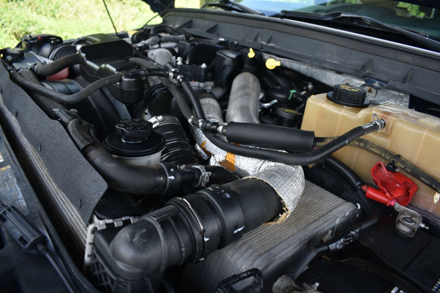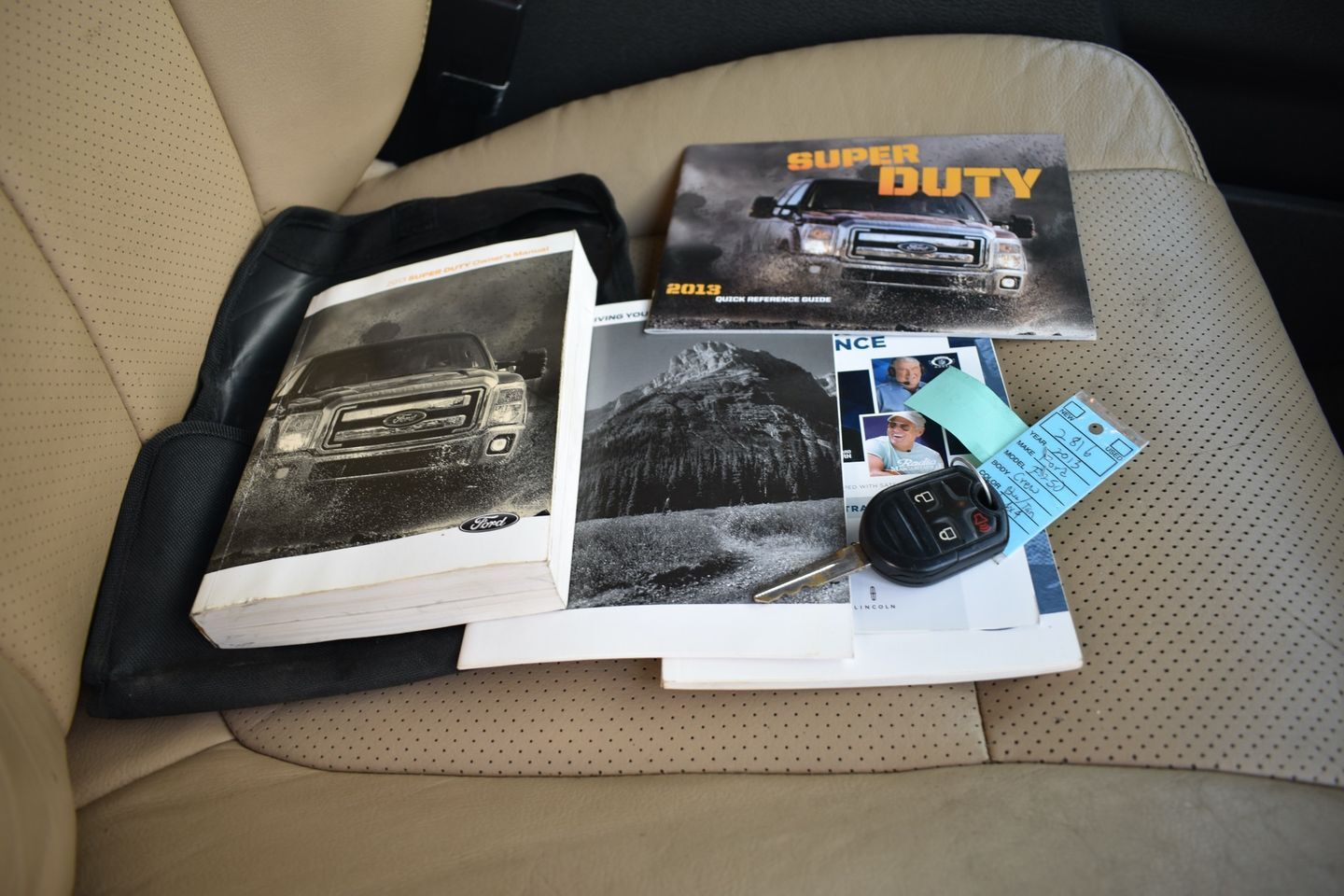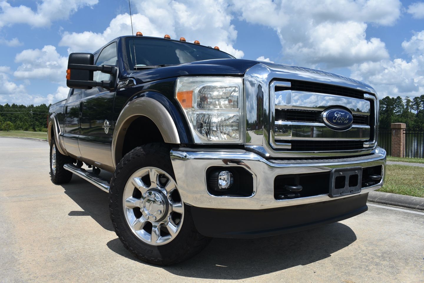 You are looking at a 2013 Ford F-250 Crew Cab Lariat 4X4 . It is powered with a 6.7L Powerstroke Diesel V-8 and automatic transmission. It is equipped with tilt, cruise, power windows, power locks, power mirrors, am/fm/cd player, spray in bed liner, and receiver hitch. Also included are the owner's manuals and one keyless remote.