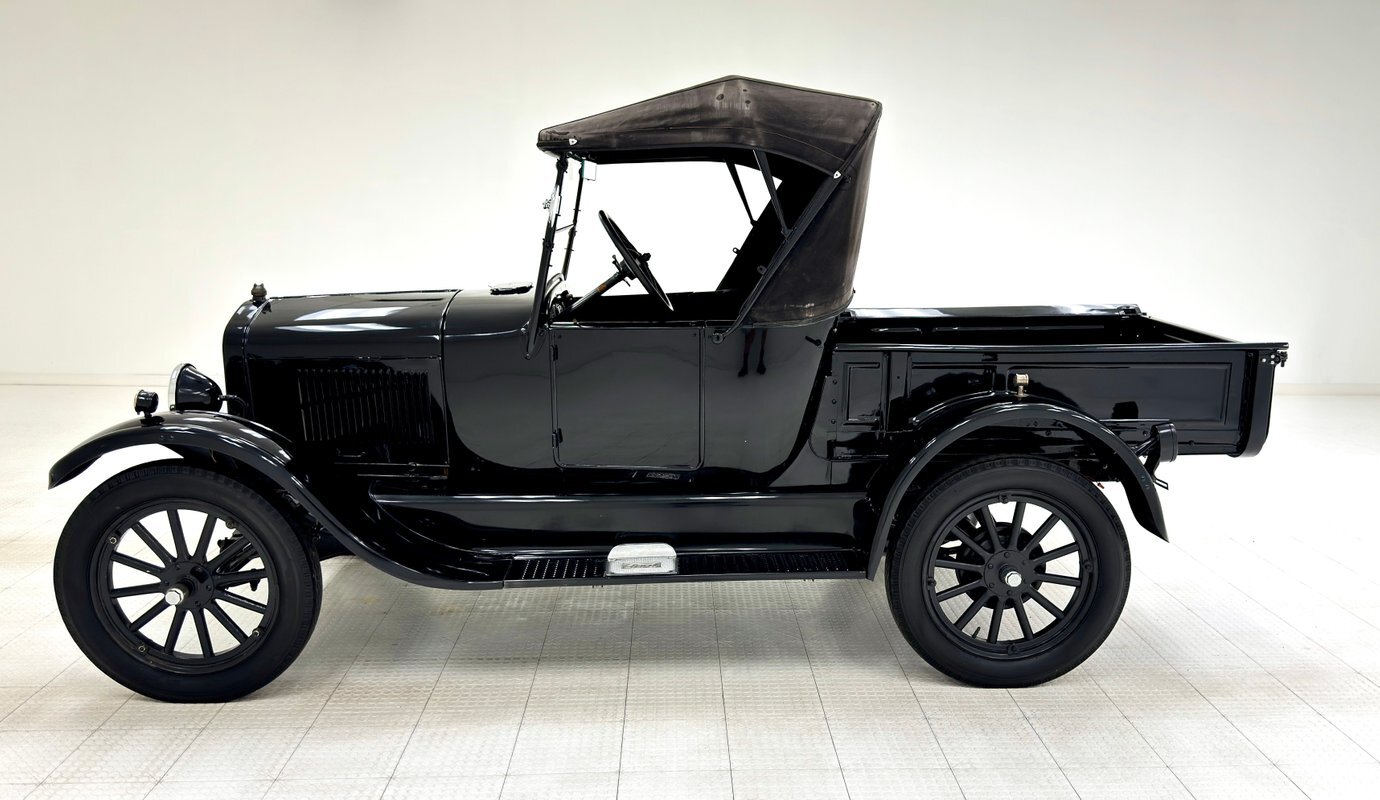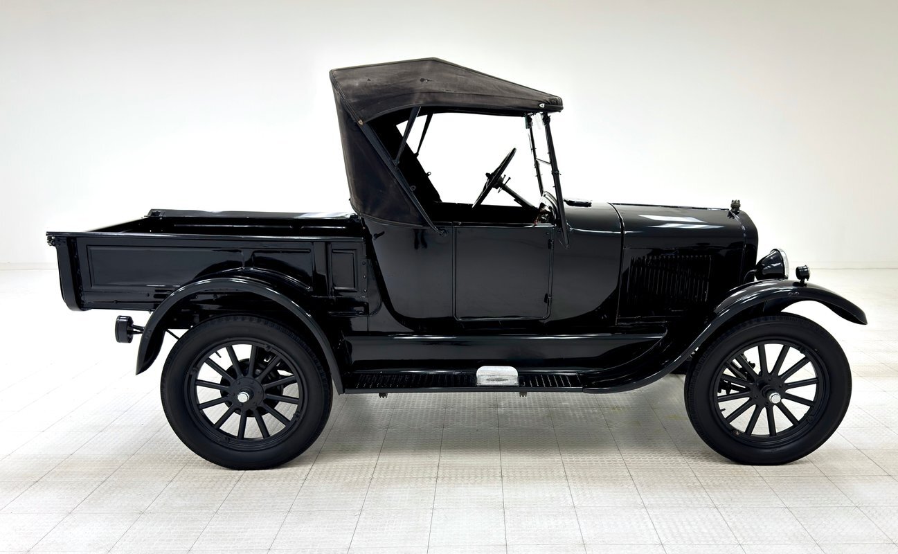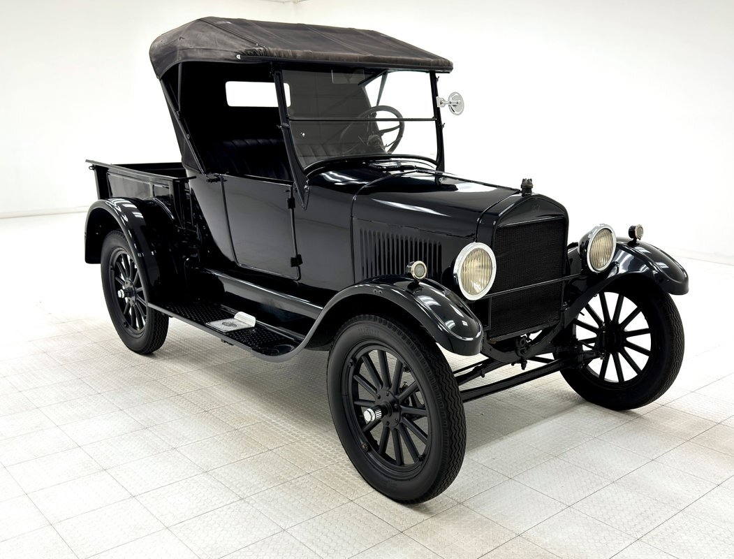 For consignment, a 1926 Ford Model T Roadster pickup truck in glossy black paint and sporting its numbers matching engine.