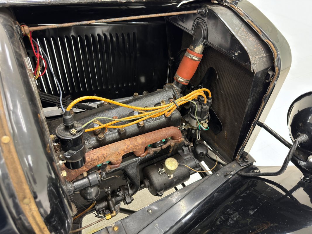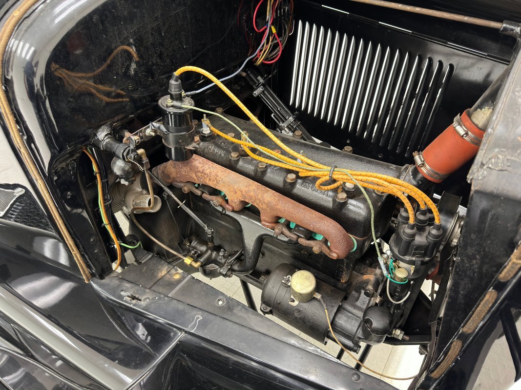 Under the engine cover, a very clean and numbers matching 177ci L-head inline 4 cylinder engine with a 1-barrel carburetor. Rated at 20 horsepower, it is set into motion with a 2-speed planetary transmission which transfers power to the back wheels and 3.63 gears. Mechanical drum brakes are found on the rear wheels.
