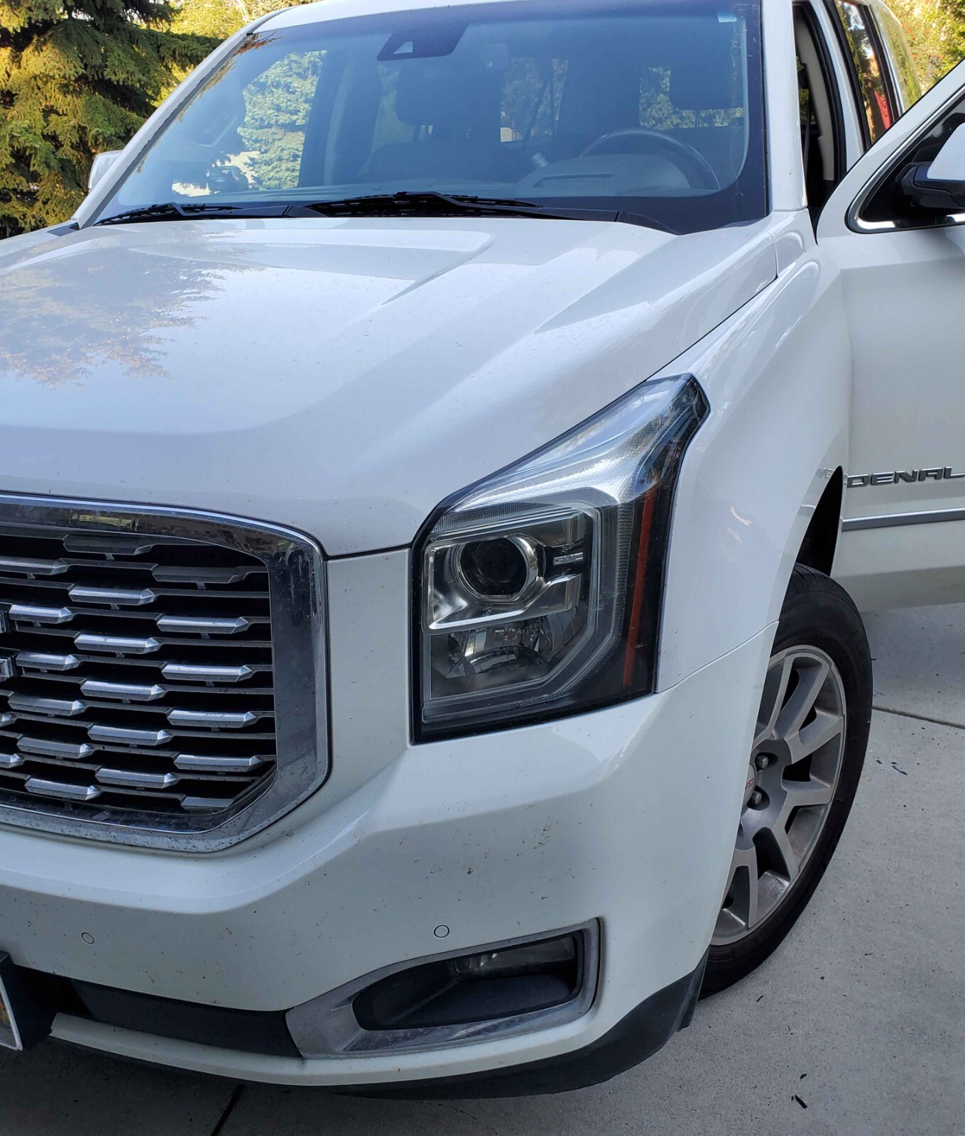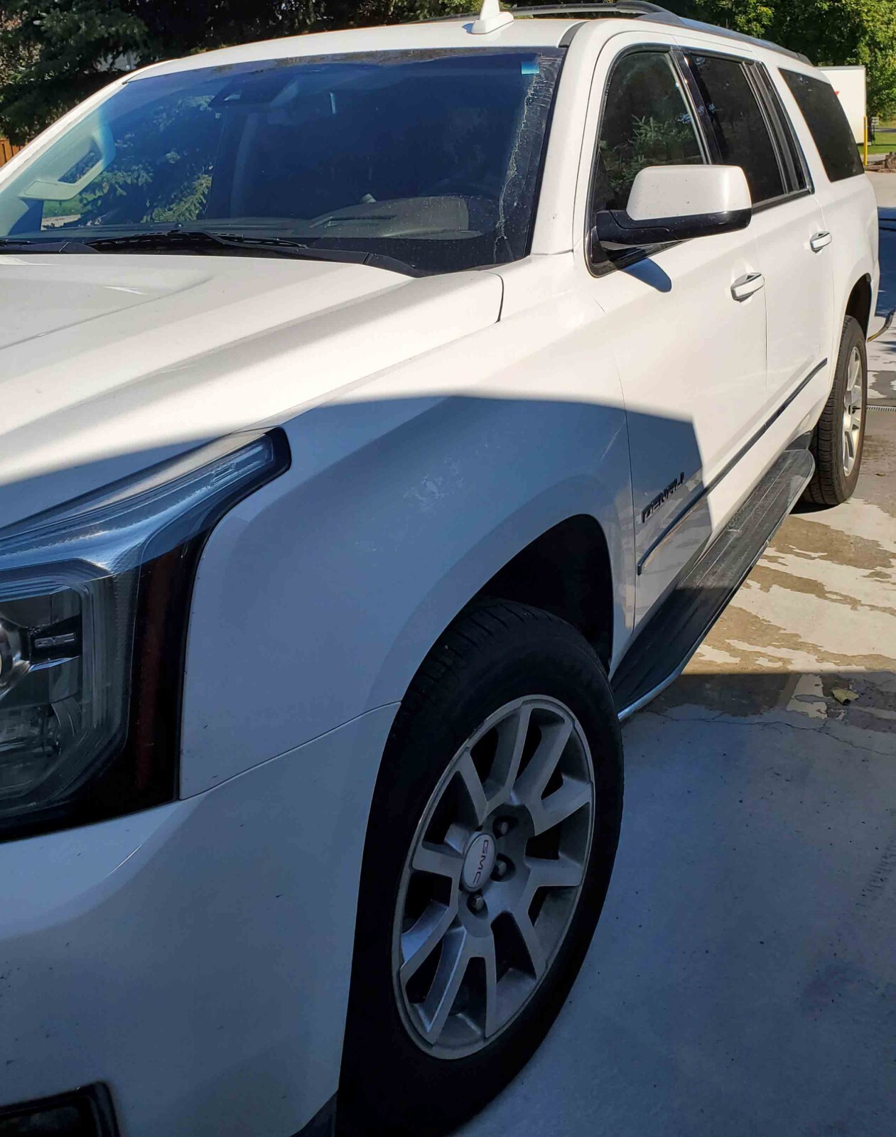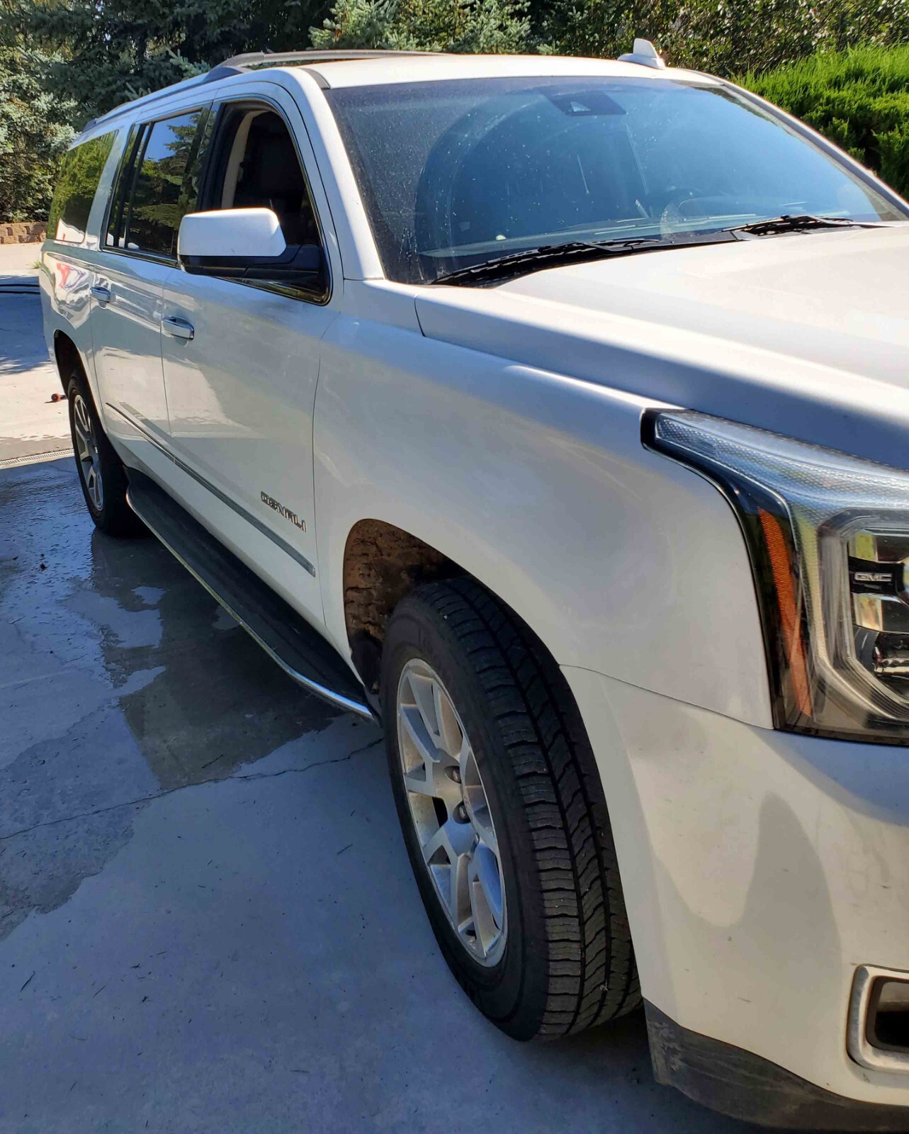Yukon XL Denali, Heads-up display, foot operated tailgate, second-row captain's chairs, power-operated second and third row seats, backup camera, remote start, three key fobs, blind spot monitor, plus all of the usual options; Nearly-new tires, full spare. Custom roof bars. Clean CARFAX one tiny dent in front right corner of hood