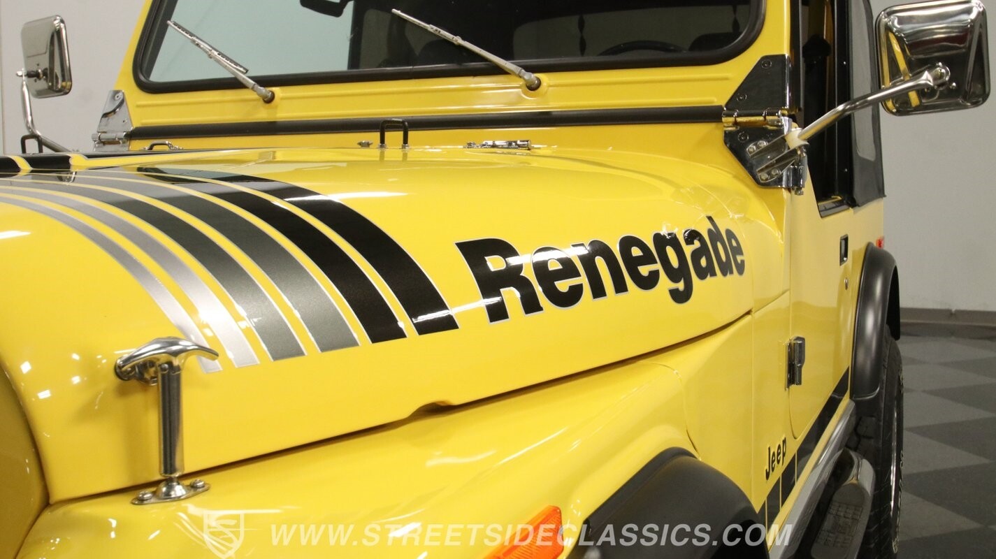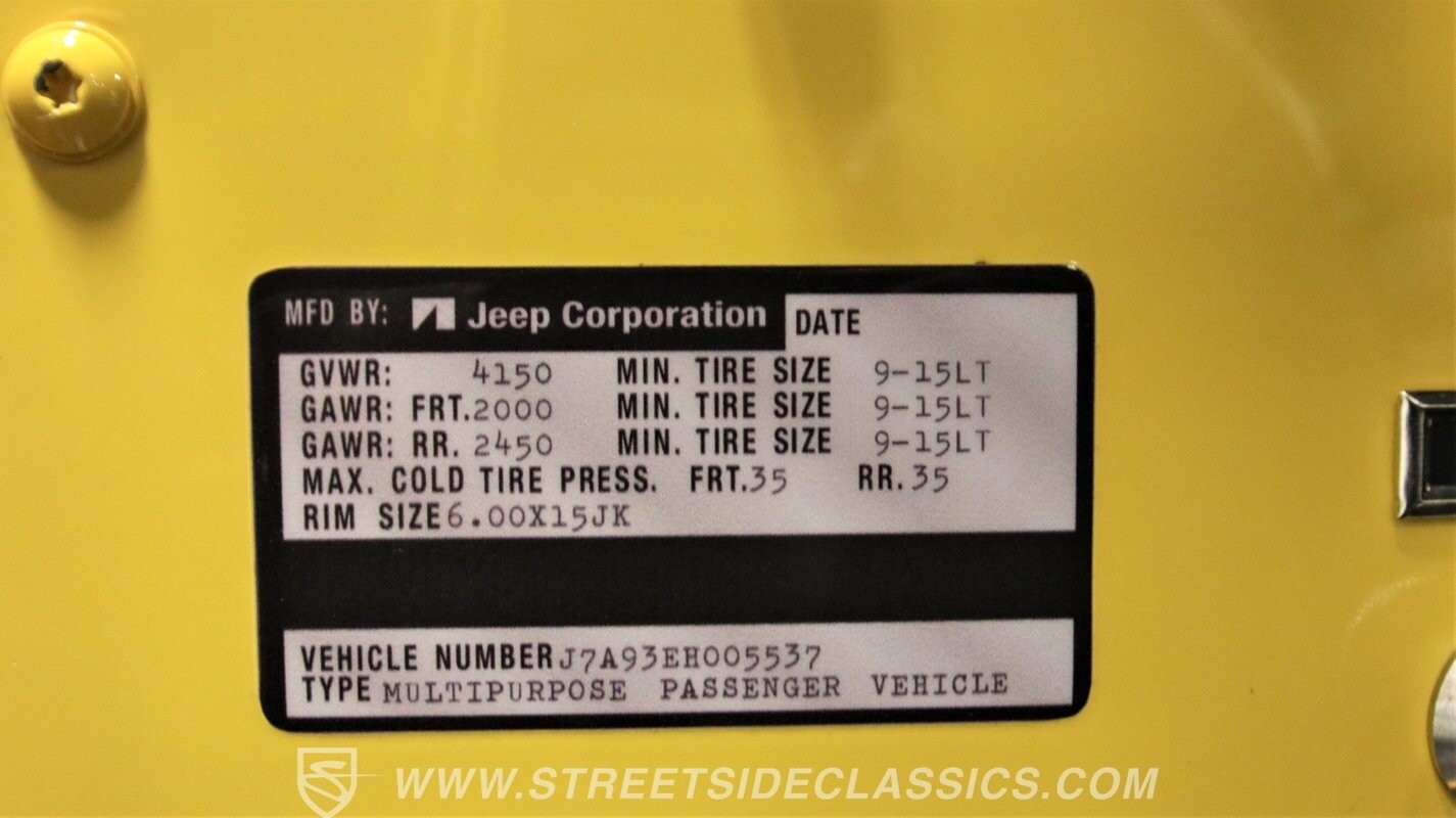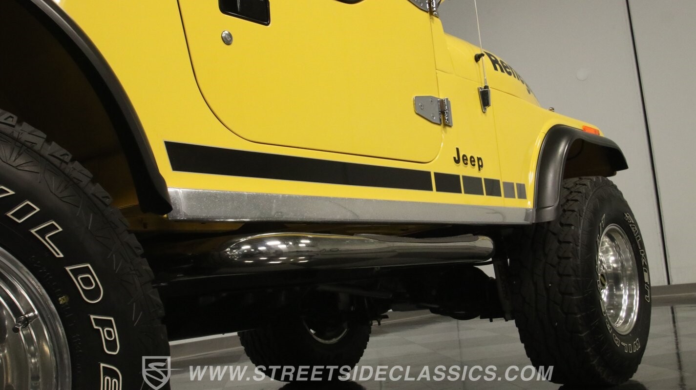 The bold yellow is a great way to grab attention. It's a later investment in a professional application that retains a good luster and plenty of shine. It makes for a bold way to show off a well-respected CJ. And this quality feeling is reinforced by detail like the nice body panels and thoughtfully putting on the Renegade decal kit before the final clearcoat was applied. Plus, there's a well-done brightwork package, including the mesh grille, headlight bezels, and shining side-mirror-hinge package. The best shine comes from components that add to the Jeep's prowess, like the upgraded tubular front and rear bumpers, tubular side steps, and 15-inch bullet hole style wheels that allow from some wide modern rubber. You have the other beefy upgrades done in contrasting black, which include the Renegade fender flares and the swing-away carrier for the full-size spare. Both the full soft top and bikini top coordinate with the black accents on the boy, and we really like the half-doors borrowed from the latter YJ Wrangler. It all makes for a stylish CJ that also has the right attitude for off-road work.