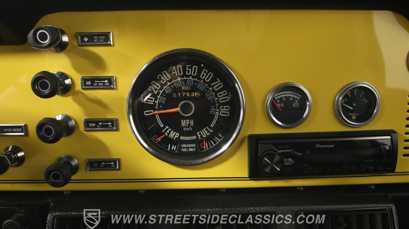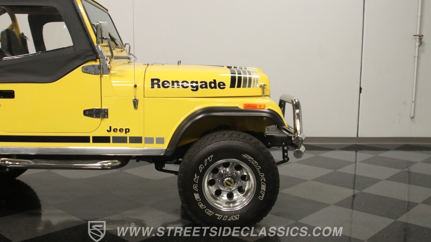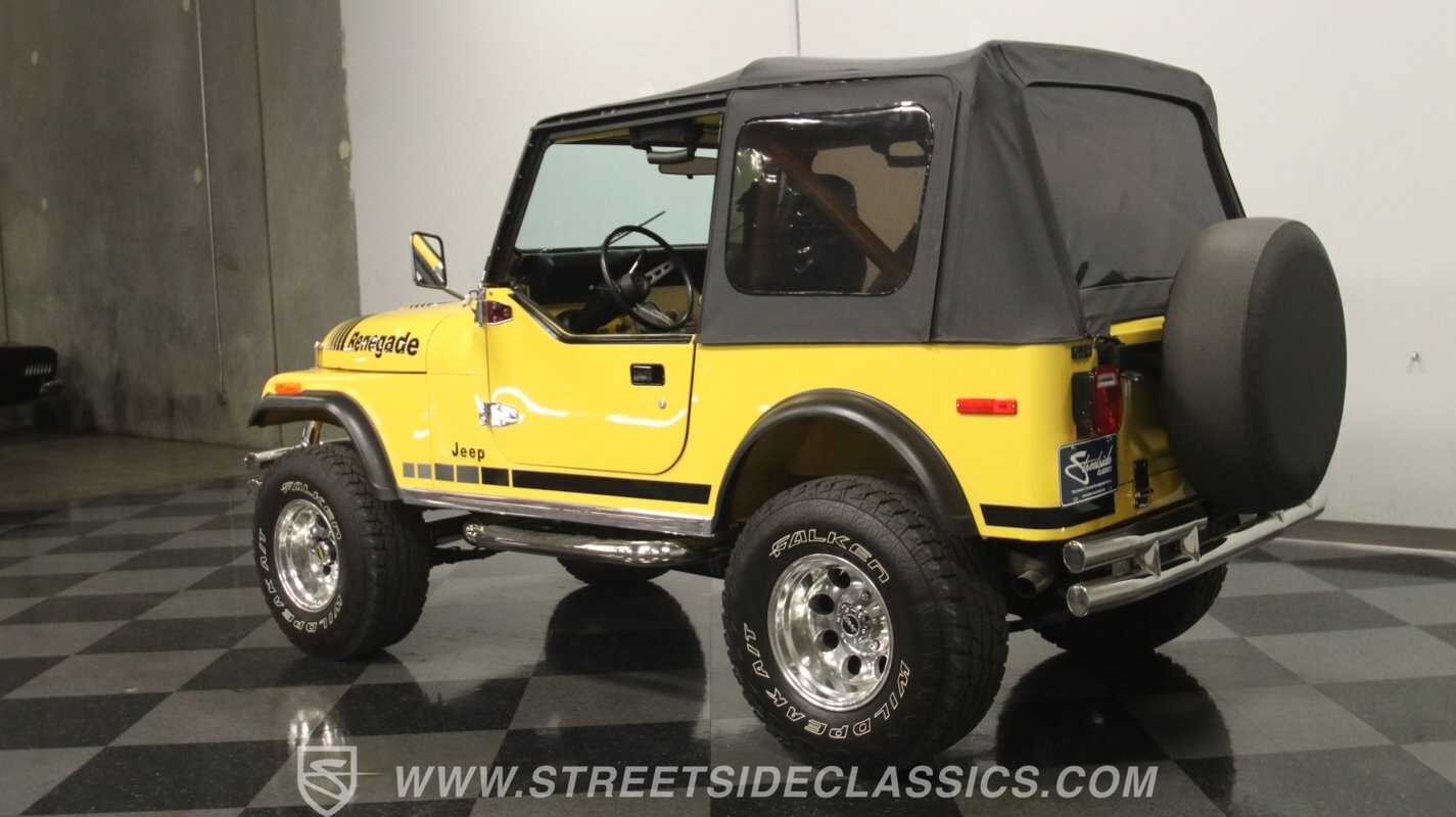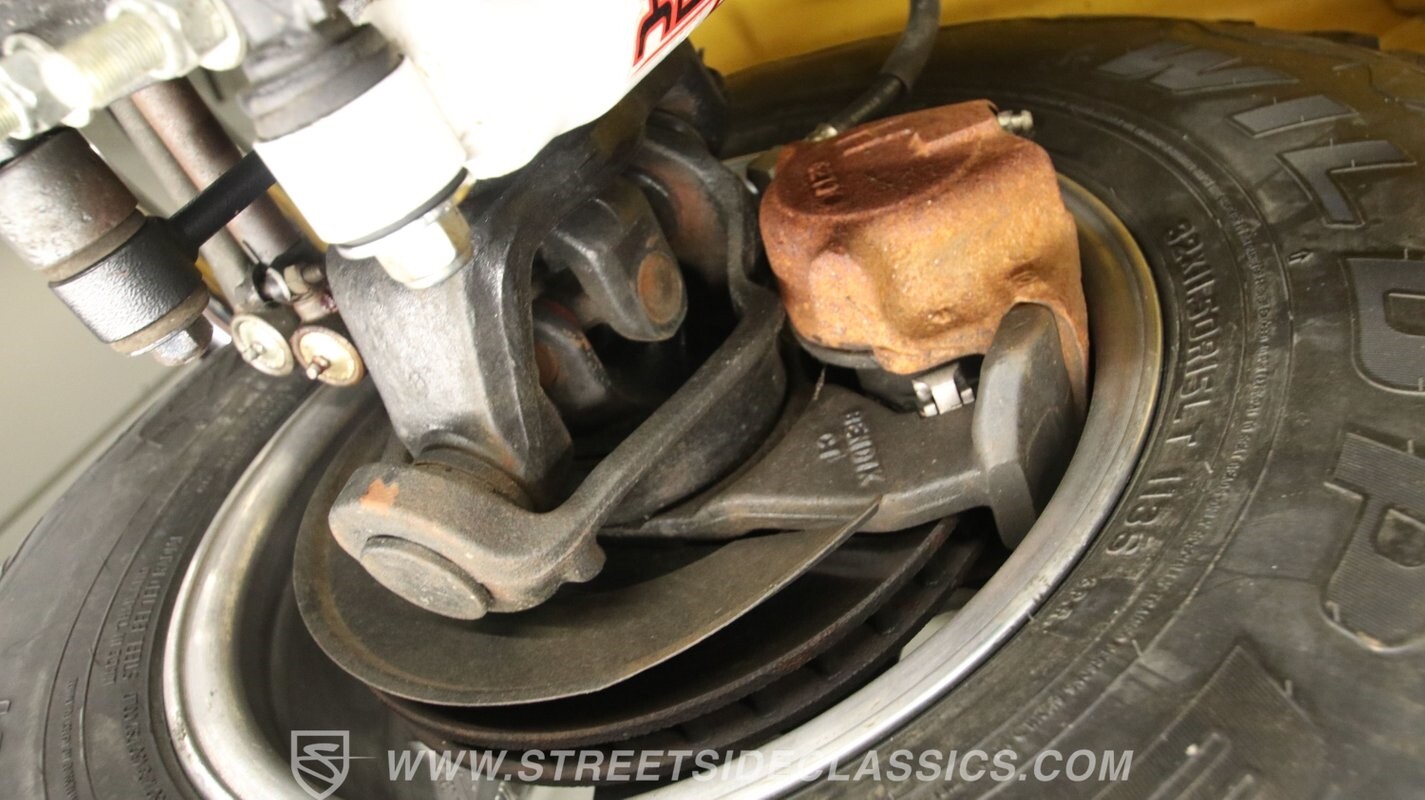 The bold yellow is a great way to grab attention. It's a later investment in a professional application that retains a good luster and plenty of shine. It makes for a bold way to show off a well-respected CJ. And this quality feeling is reinforced by detail like the nice body panels and thoughtfully putting on the Renegade decal kit before the final clearcoat was applied. Plus, there's a well-done brightwork package, including the mesh grille, headlight bezels, and shining side-mirror-hinge package. The best shine comes from components that add to the Jeep's prowess, like the upgraded tubular front and rear bumpers, tubular side steps, and 15-inch bullet hole style wheels that allow from some wide modern rubber. You have the other beefy upgrades done in contrasting black, which include the Renegade fender flares and the swing-away carrier for the full-size spare. Both the full soft top and bikini top coordinate with the black accents on the boy, and we really like the half-doors borrowed from the latter YJ Wrangler. It all makes for a stylish CJ that also has the right attitude for off-road work.