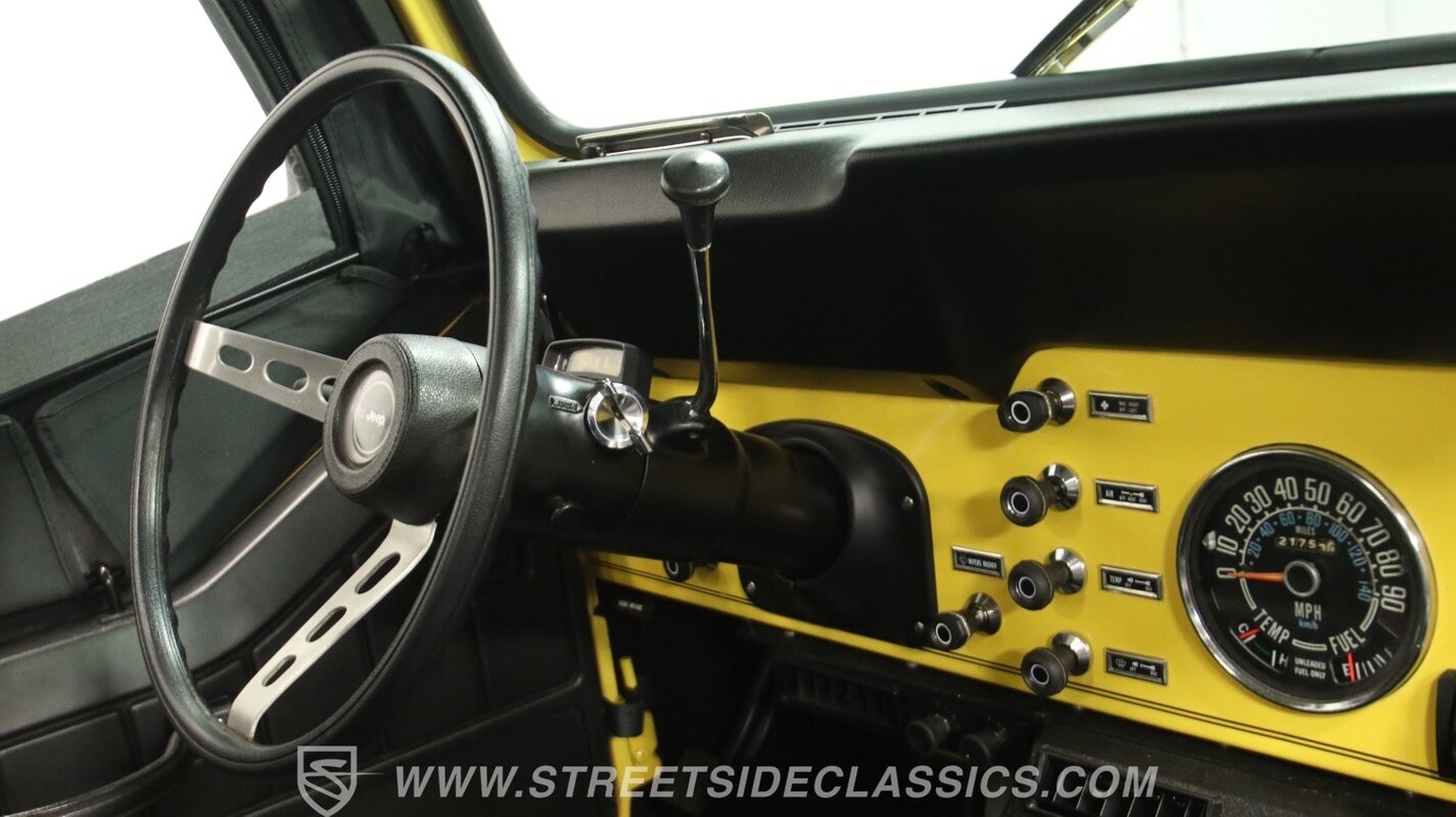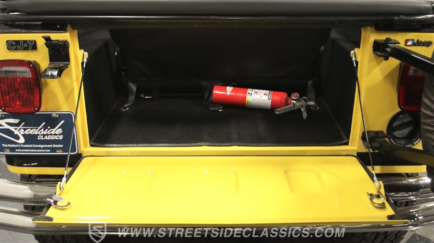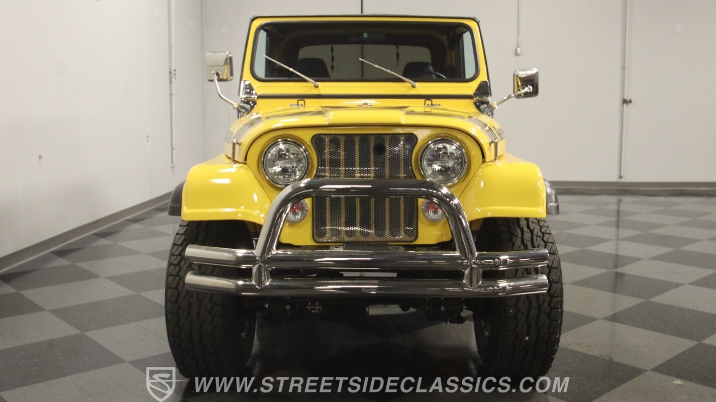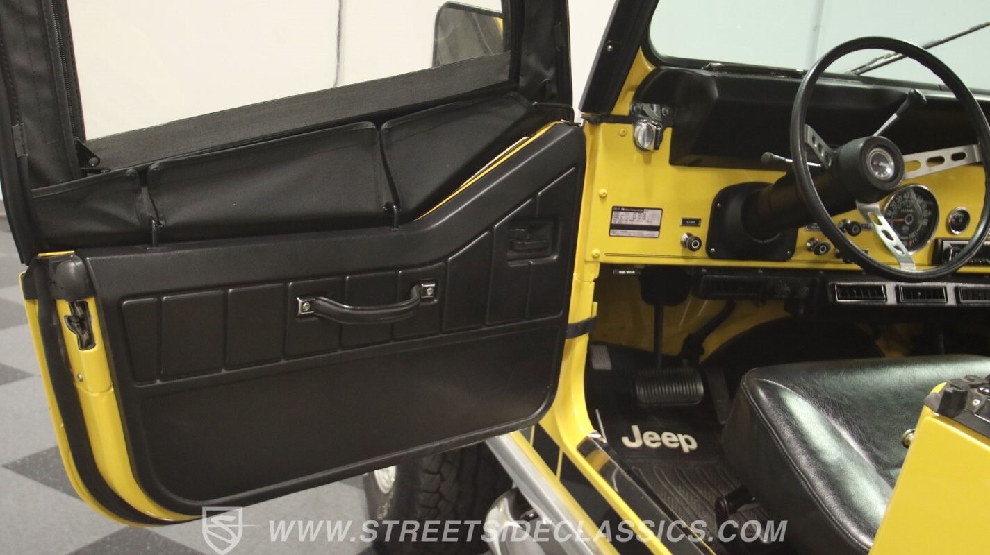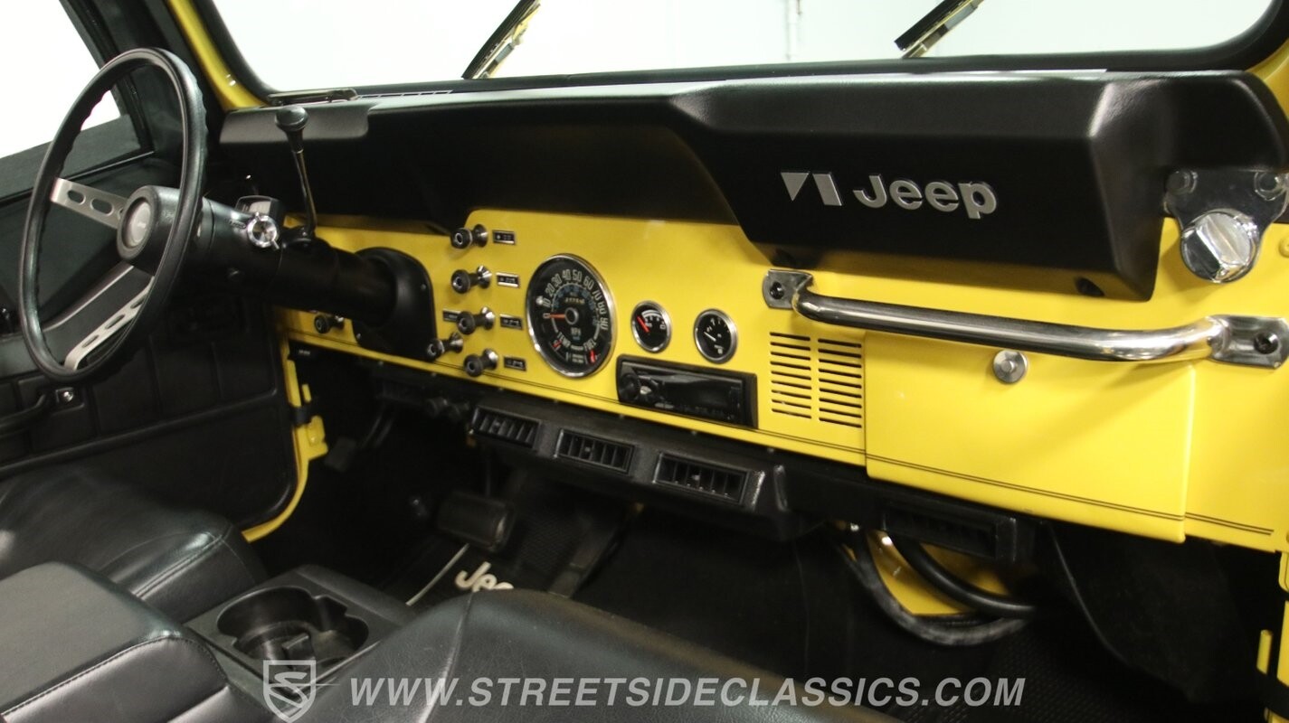 This 1977 Jeep CJ7 has attractive colors, rugged equipment, and plenty of additions in both style and substance. After all the bright paint, A/C interior, automatic transmission, and V8 power are all part of a great package that keeps this classic 4x4 a solid cruiser, too.