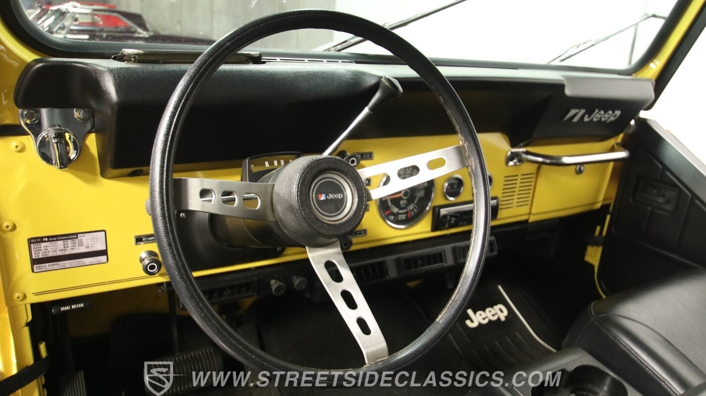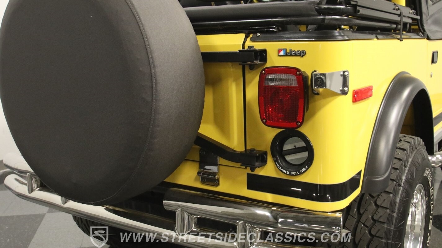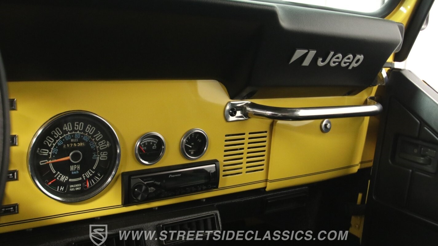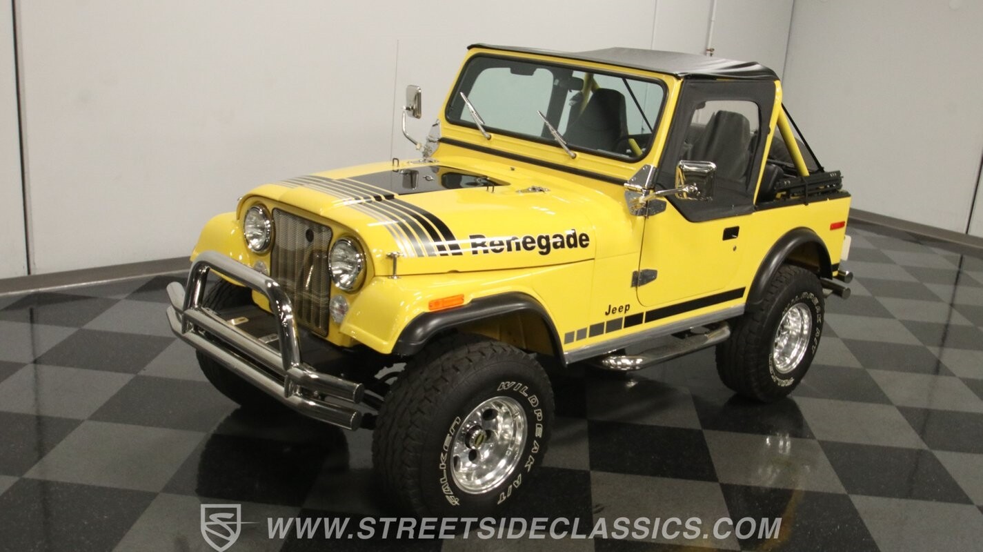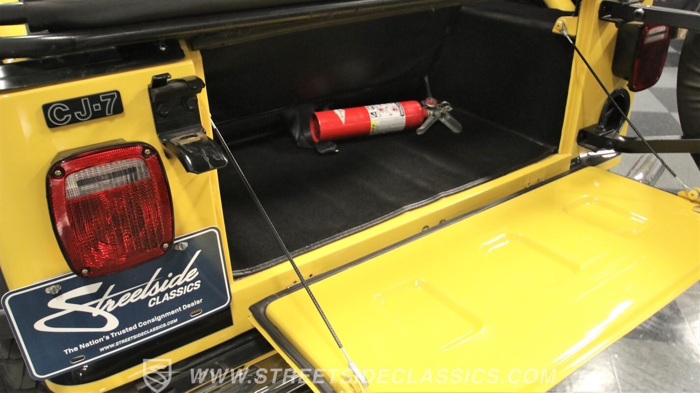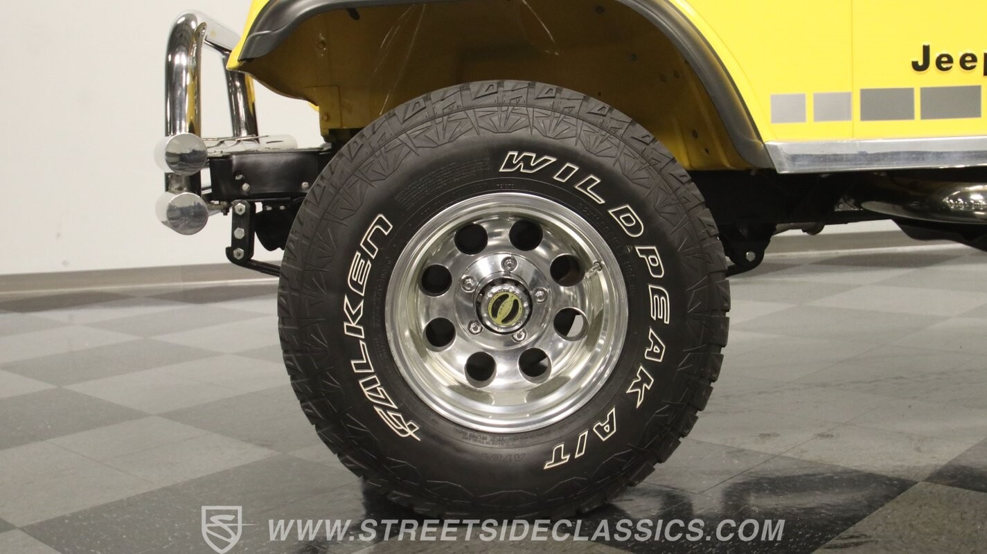 This 1977 Jeep CJ7 has attractive colors, rugged equipment, and plenty of additions in both style and substance. After all the bright paint, A/C interior, automatic transmission, and V8 power are all part of a great package that keeps this classic 4x4 a solid cruiser, too.