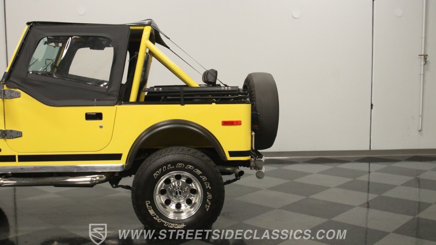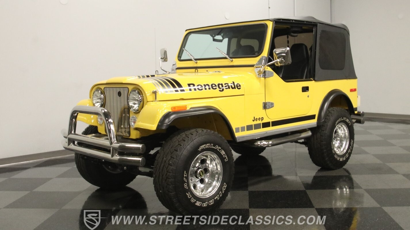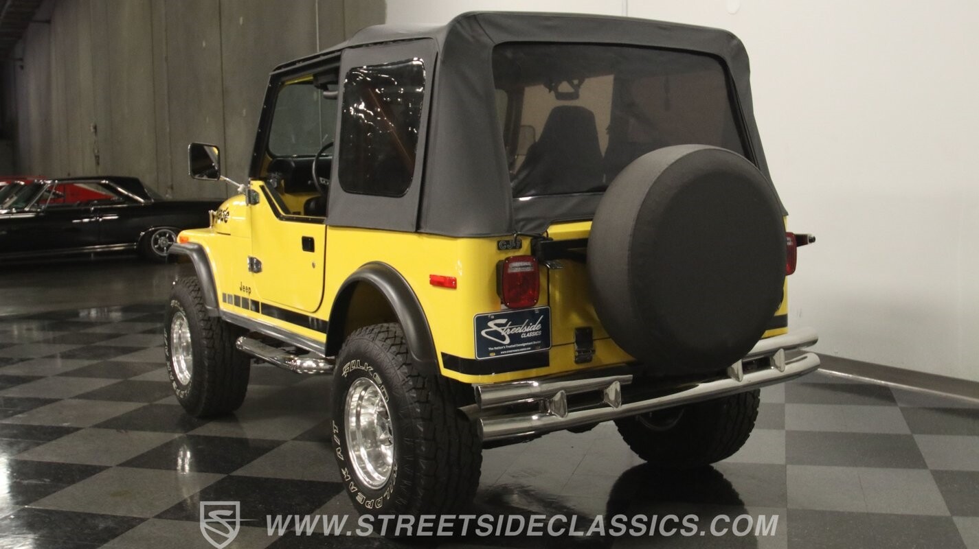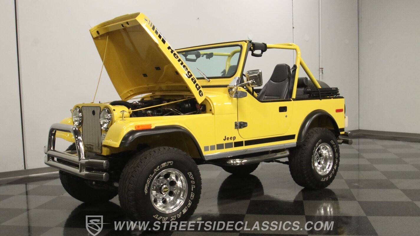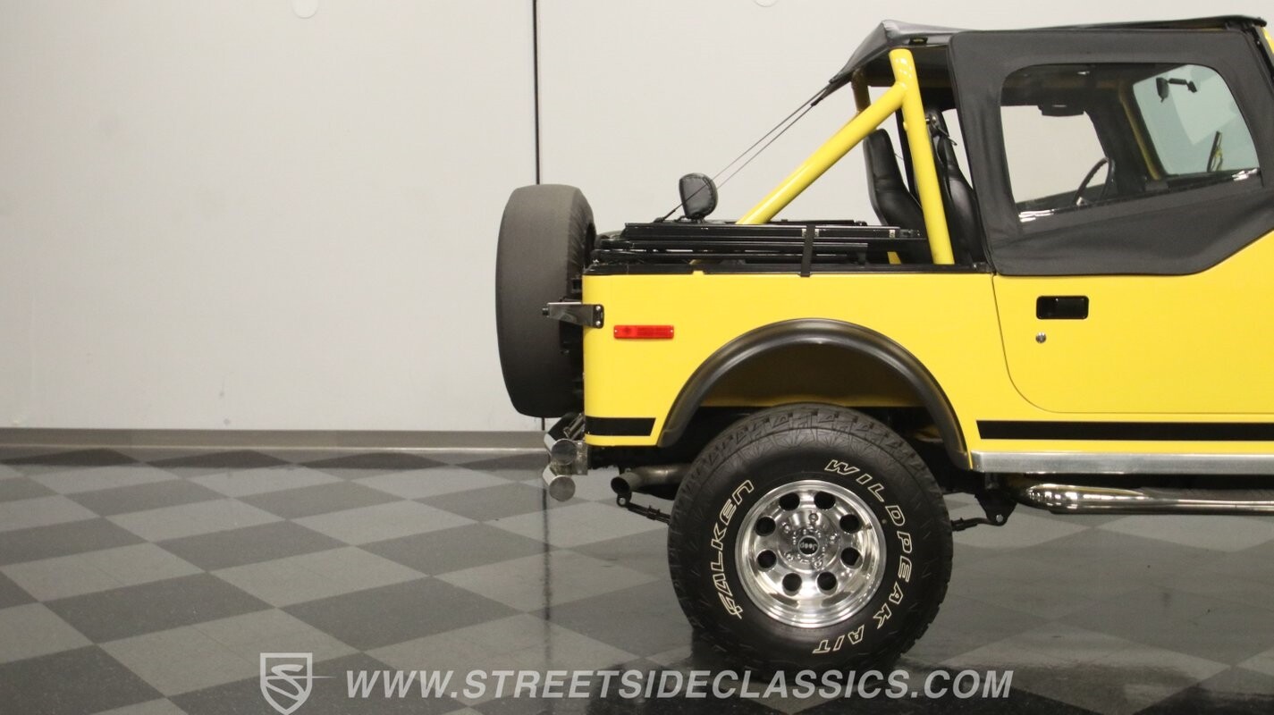 This 1977 Jeep CJ7 has attractive colors, rugged equipment, and plenty of additions in both style and substance. After all the bright paint, A/C interior, automatic transmission, and V8 power are all part of a great package that keeps this classic 4x4 a solid cruiser, too.