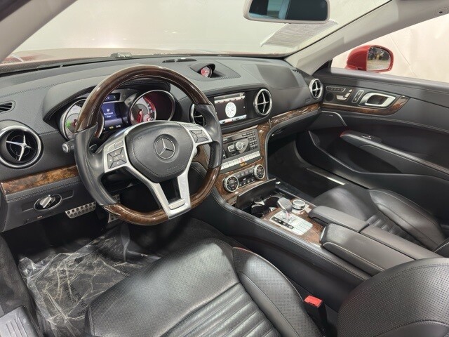 * The sophisticated body structure of the 2014 SL-Class is instantly recognizable yet startlingly fresh. From the upright grille with its central Star, the powerful contours of the long hood sweep past the cockpit into an aggressively contoured tail. A power retractable hardtop folds into the trunk and is triggered by a single button on the console. Occupants enjoy an expansive view of the sky through a heat-reflecting transparent panel. Various alloy wheels are available, allowing you to customize your SL-Class. LED daytime running lamps and taillamps also come with the SL-Class. Lavished in soft, smooth Exclusive leather, the cabin keeps its two occupants feeling coddled, connected and captivated. The driver-seat features 12-way power adjustable seats with memory and lumbar support. Furthermore, the seat heating function will take the chill out of even the coldest day. Separate left and right temperature controls allow the driver and passenger to enjoy personalized comfort. The SL-Class features various engines, available at different packages, to suit your needs. All trims feature paddle shifters, allowing you to manually upshift and downshift the automatic transmission. A fuel-saving new ECO Start/Stop system automatically shuts off the engine at stoplights and other idle situations. Standard Torque Vectoring Brake technology provides additional control and precision in turns, via targeted rear-wheel braking. A series of safety features is available with the SL-Class. A suite of standard air bags offers advanced protection. Driver and passenger knee air bags supplement the dual-stage front air bags. The NECK PRO head restraints protect you in the event of a rear impact exceeding a preset threshold. Finally, Bi-Xenon headlamps help deliver greater visibility than halogen headlamps because their brighter, whiter light is much closer to natural daylight. Source: The Manufacturer Summary
