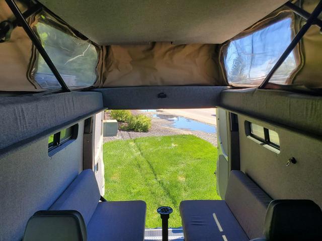Ready to roll out for summer travel and more! Custom floor allows seating for up to 8 total and can sleep 4 adults!
