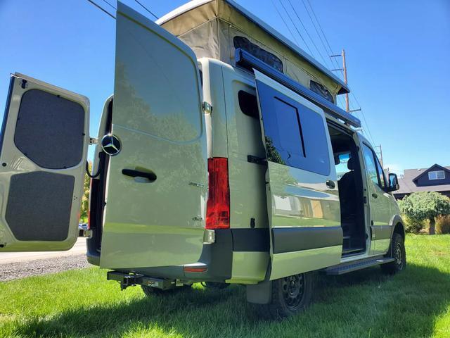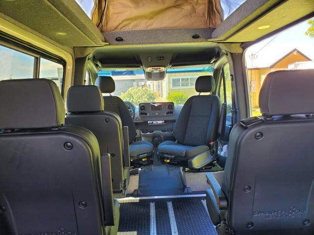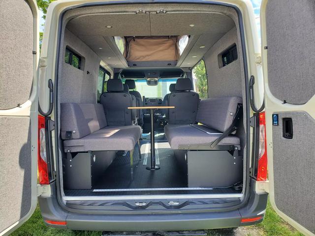 Our Dreambuilder package built with our custom upfit company, Launch Vans, has transformed this 2022 Mercedes Benz 4x4 Sprinter with a Sportsmobile Pop-Top! This interior design and layout brings so much flexibility based on your traveling needs. It may also become your daily driver. Nimble and stealth! Easy to navigate tight spaces and parking let alone winding roads and hillsides wherever you may roam. You may have family and friends catching a ride to a sporting event or heading to a concert Downtown and you would all like to ride together with a designated driver. This footprint is amazing and accommodates versatility. It will transform your travel life!