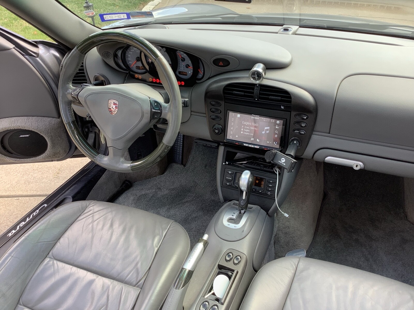 The transmission is a tiptronic, From the pictures, you can see some of the modifications, and upgrades I’ve done. The most important is, you’ll see on door silence, is the IMS bearing modification from LN engineering, installed by Sim’s Porsche in Bedford, Tx., which includes an oil filter, and dedicated oil line to the IMS bearing. , a Pioneer double-din AVH-4500NEX DVD RDs AV receiver with an Alpine S-A32F, 80 W RMSx4 channel power amplifier that works well with the fiber optic Bose speekers(factory), and usb cable installed to connect to Iphone( Waze,Pandora, GPS, etc., installed Debo LED taillights and 3rd brake light, The pax side window regulator has been replaced, the A/C baffles (2 pair), have been repaired as old factory foam was -gone, see pics, now work right, drivers seat carrier and seat cushion have been replaced, new KSport Pro adjustable coil over shocks have been fitted about a year ago, as have Michelin Pilot Spoer 4S tires, K&N air filter, PORSCHE and Carrera chrome emblems added to rear deck, see pic, grill in front cleaned of debris and mesh grill added to keep that out, day/night rear view mirror added, there’s a removable hardtop with hoist included with the car. See pic. When I bought the car, a new top was previously installed, and being my first Porsche, didn’t realize the interior headliner wasn’t installed, so, that was my next part to be done. Lloyd floor mats plush installed. I have always used Amsoil European oil. Always garage kept. If you would like to know more information, please don’t hesitate to ask me. Thanks for looking.Seller's Notes
