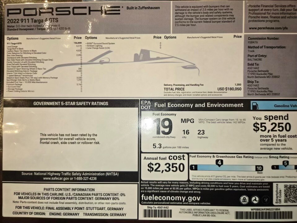 State or local taxes, title, license fee, processing fees, registration fee, dealer documentary fee, finance charges, emission testing fees, and compliance fees are additional to the advertised price.