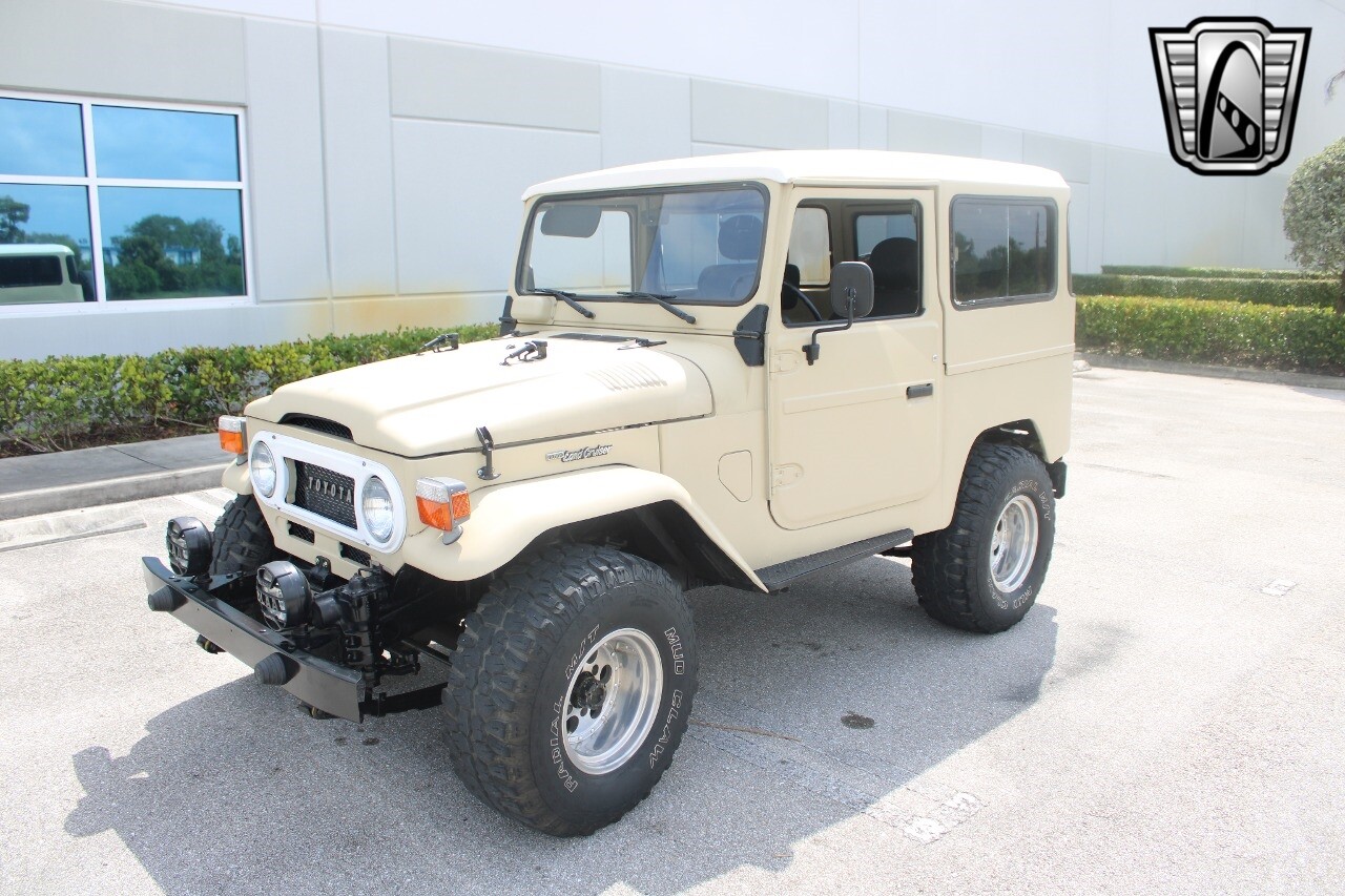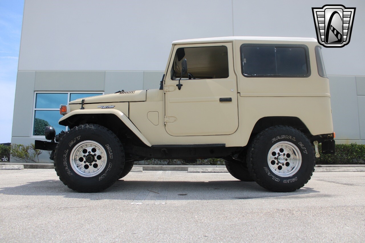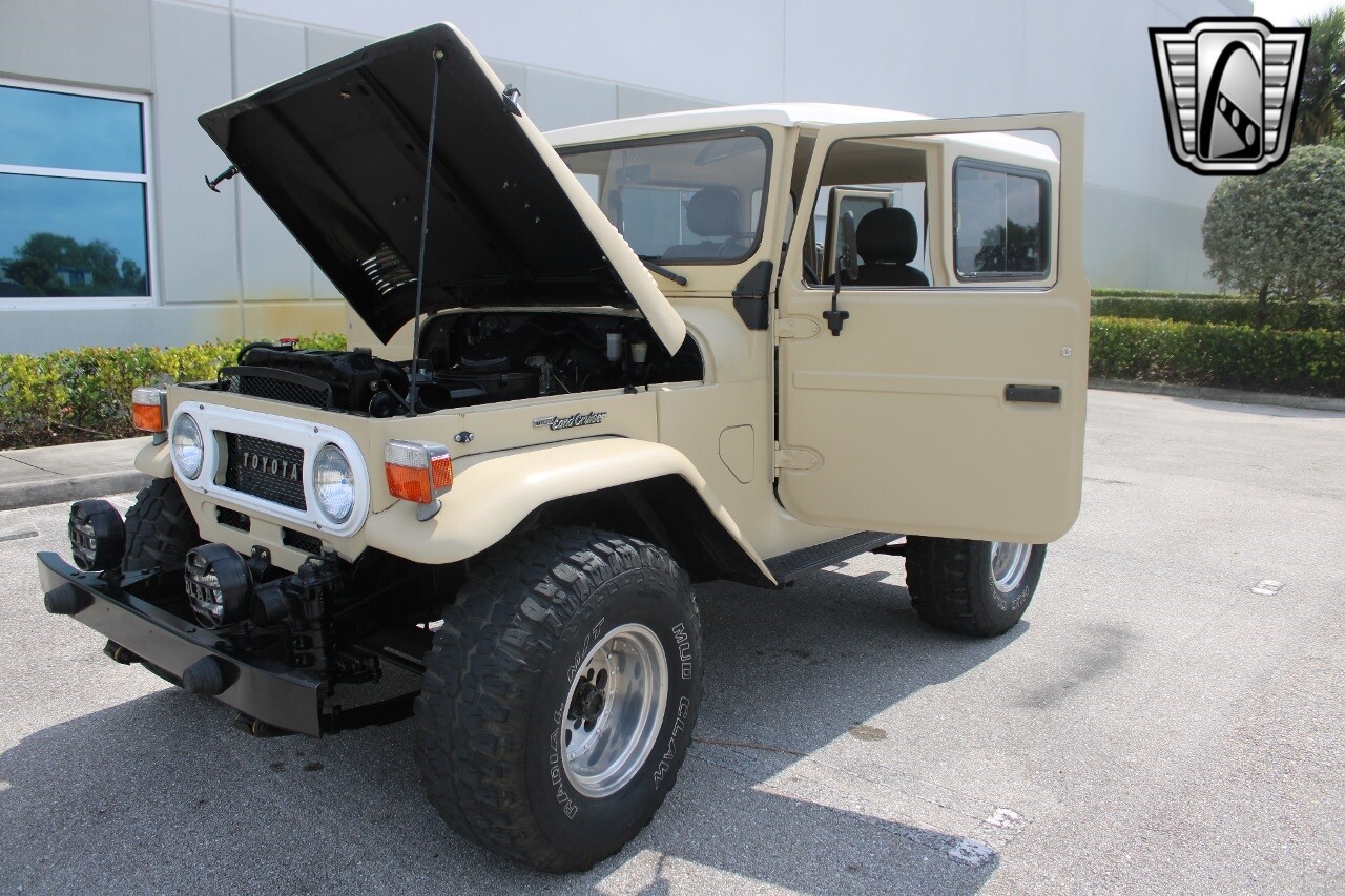 Step into the world of classic motoring with this 1971 Toyota FJ43, a timeless icon of automotive design. This vehicle is presented in a sophisticated beige exterior color, a hue that exudes a sense of vintage charm and elegance. The black interior provides a striking contrast, creating a visually appealing aesthetic that is sure to turn heads wherever you go.