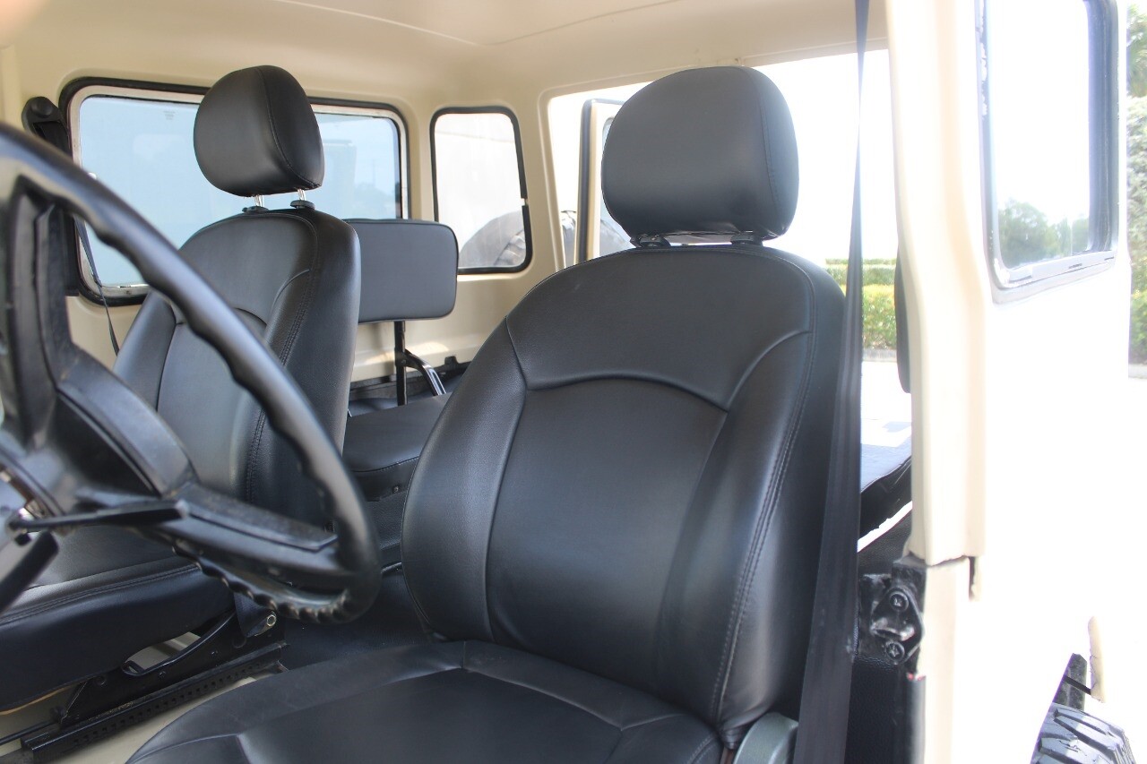 Inside, the vehicle features a vinyl interior, a durable and easy-to-clean material that adds to the practicality of this classic. Seatbelts are also included, a standard safety feature that provides peace of mind.