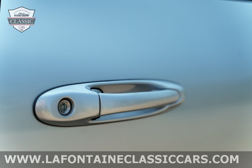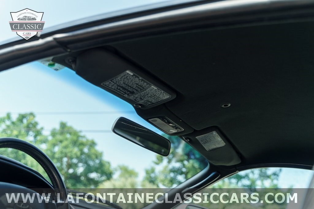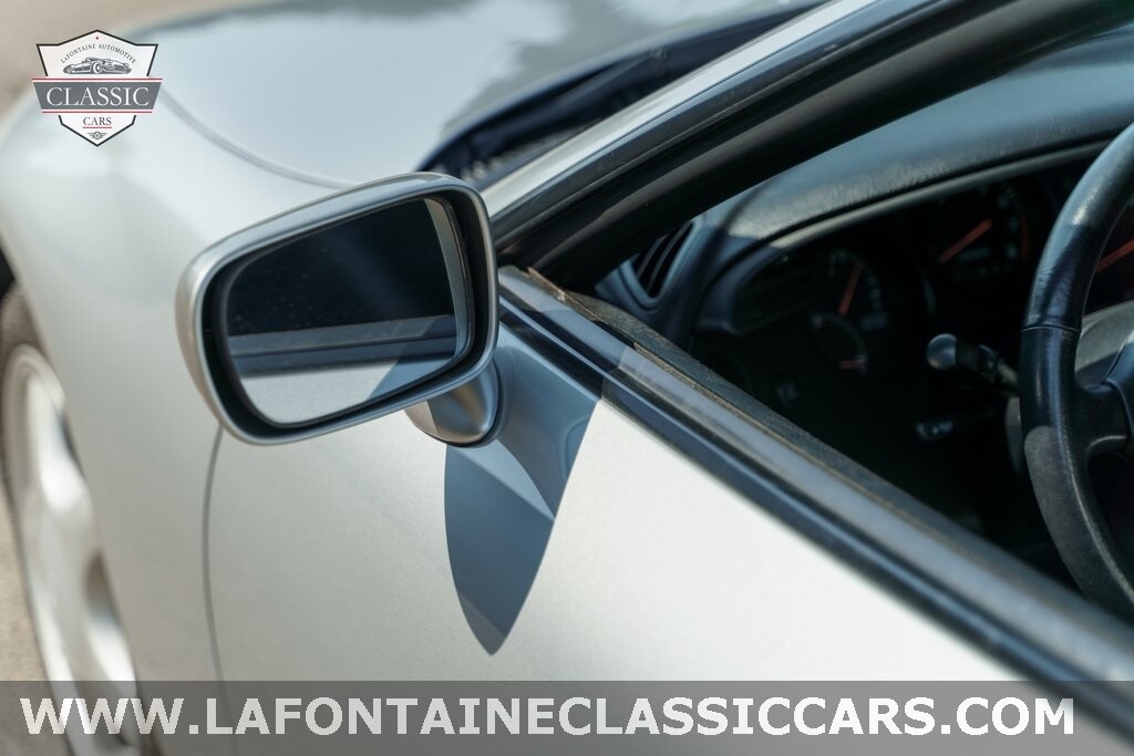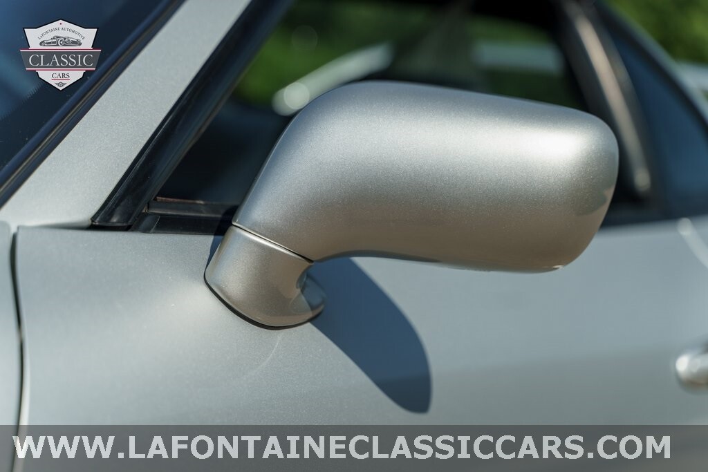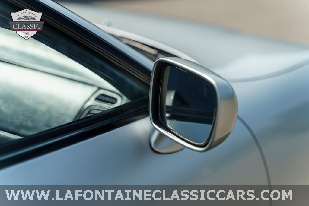The exterior is finished in Alpine Silver Metallic and features a removable targa roof, a rear wing, a front spoiler, fog lights, and heated side mirrors.