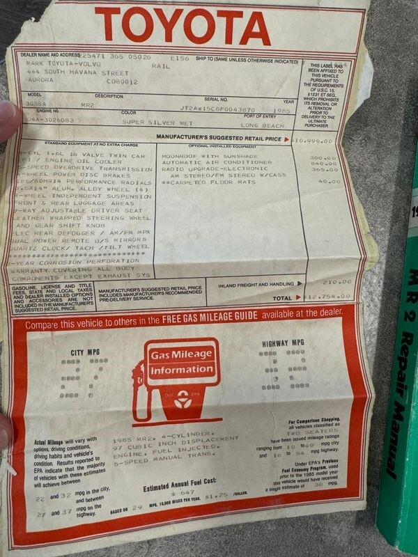 - 80,036 original mileage 1985 Toyota MR2