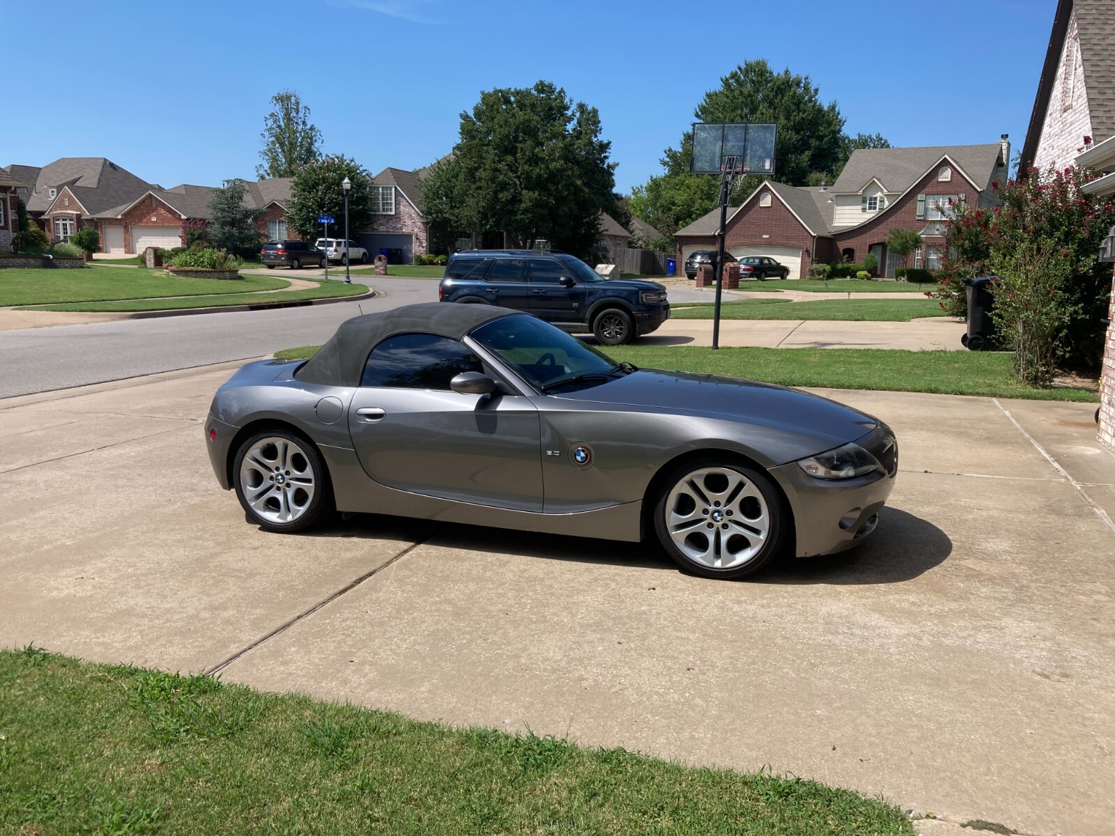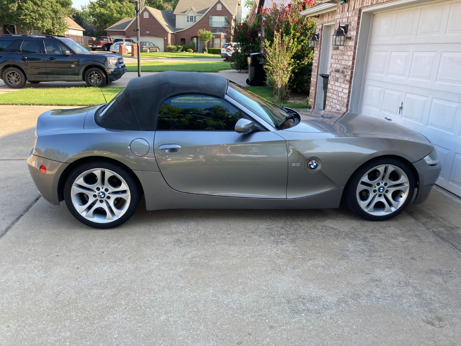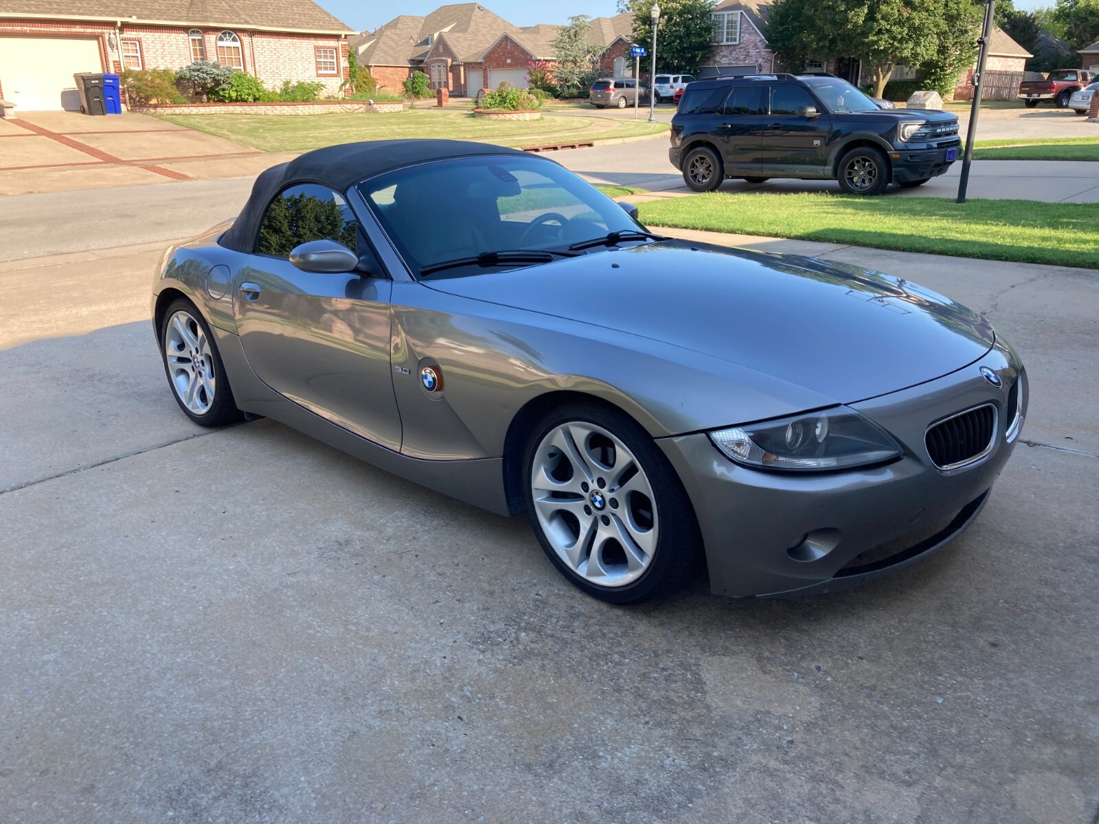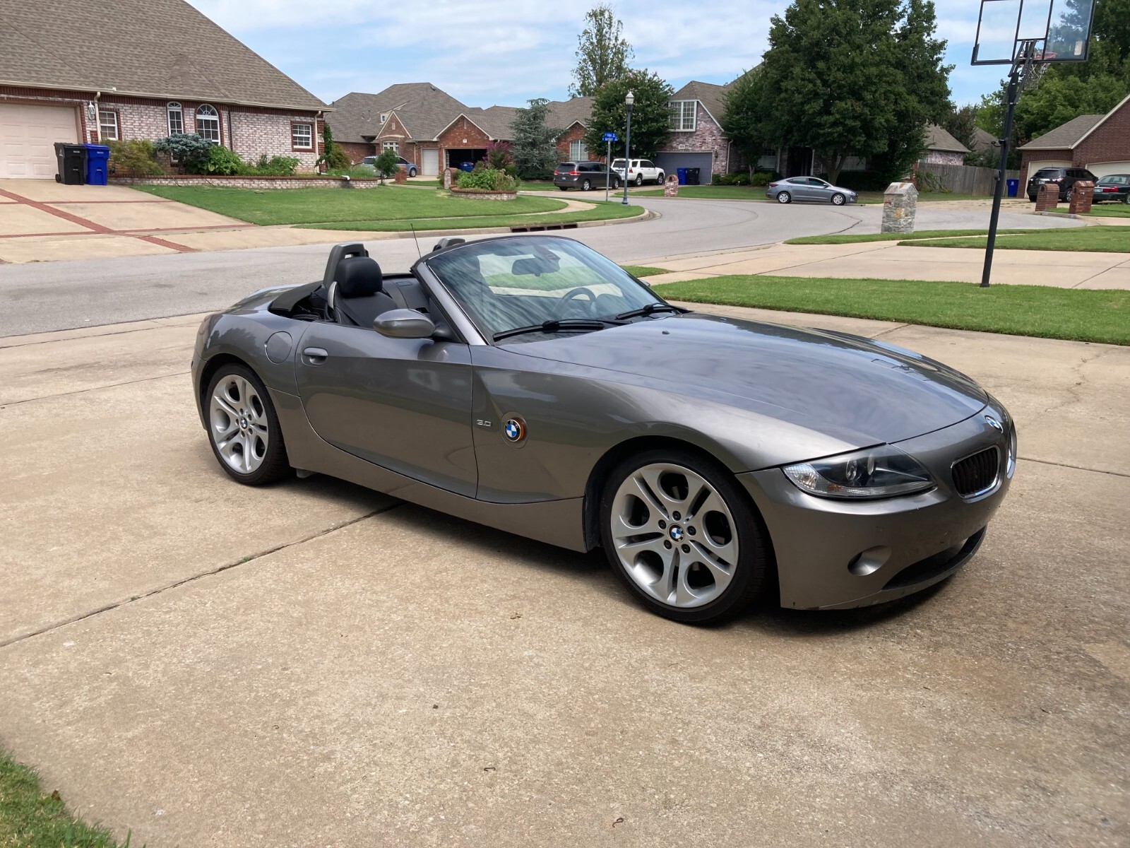 2003 BMW Z4 3.0i Roadster. Gray with Black soft top, 87,693 original miles. Accident free - Clean Oklahoma title in hand. Power windows, locks tilt cruise. AM/FM/CD player. Cold AC. Fresh tune up - 4 new Michelin Pilot Sport 4S All Season tires, new brakes, struts, belts, hoses, spark plugs, MAF sensor. Have all receipts. Good overall condition and everything works as it should. The passenger seatbelt light will not turn off and I can't locate the cause. There are some scratches on passenger side door that have been touched up. Runs strong and drives nice. Let go of the wheel and brake hard it continues in a straight line. It's not perfect but a good clean DEPENDABLE driver. Feel free to call or text with questions. Leave message as I will not answer unfamiliar numbers. I will call you back right away. 918-281-9125 in Broken Arrow, Oklahoma
