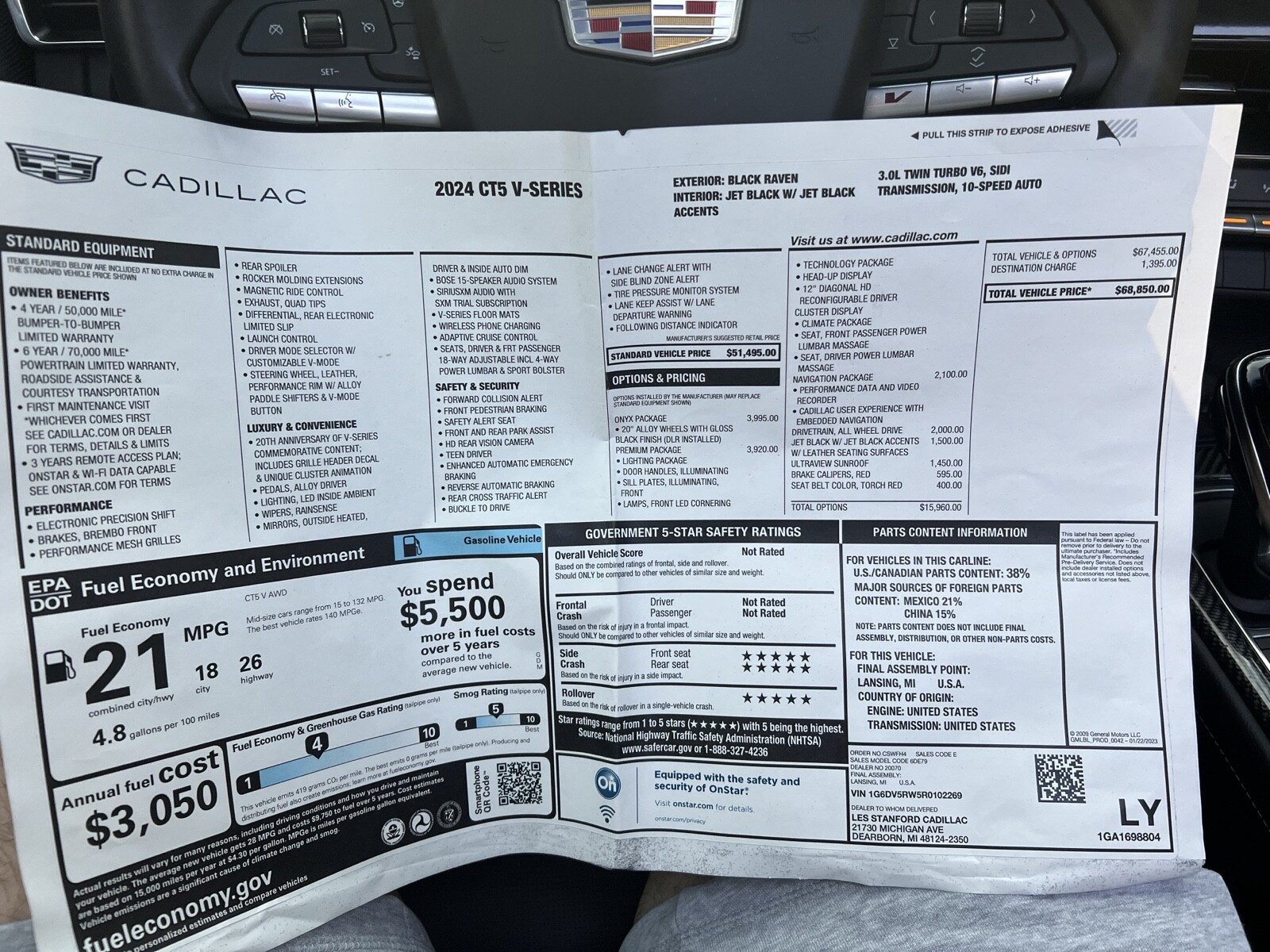 2024 Cadillac Ct5V fully loaded! Clear car fax, one owner and no accidents. Still comes with the factory warranty!