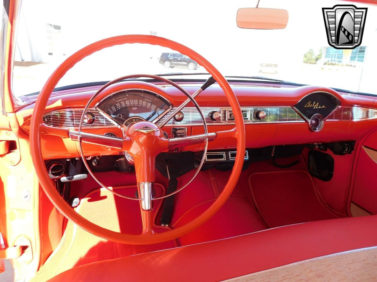 Experience the beauty and power of a classic with this stunning 1956 Chevrolet Bel Air. Dressed in a striking Matador Red (697) exterior, this vintage beauty is sure to turn heads wherever you go. The two-tone Adobe Beige accent adds a touch of sophistication, making this classic car a true standout on the road.