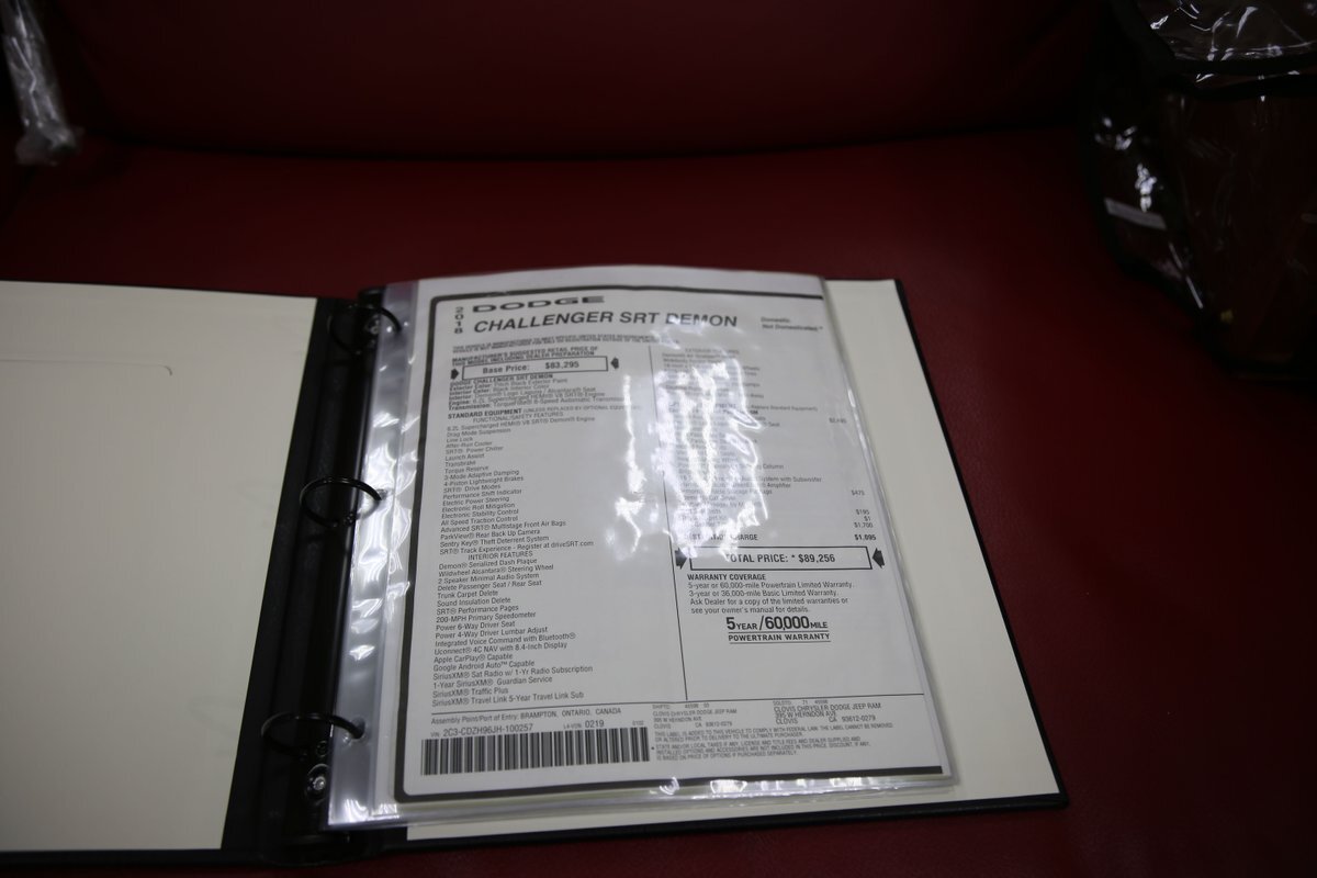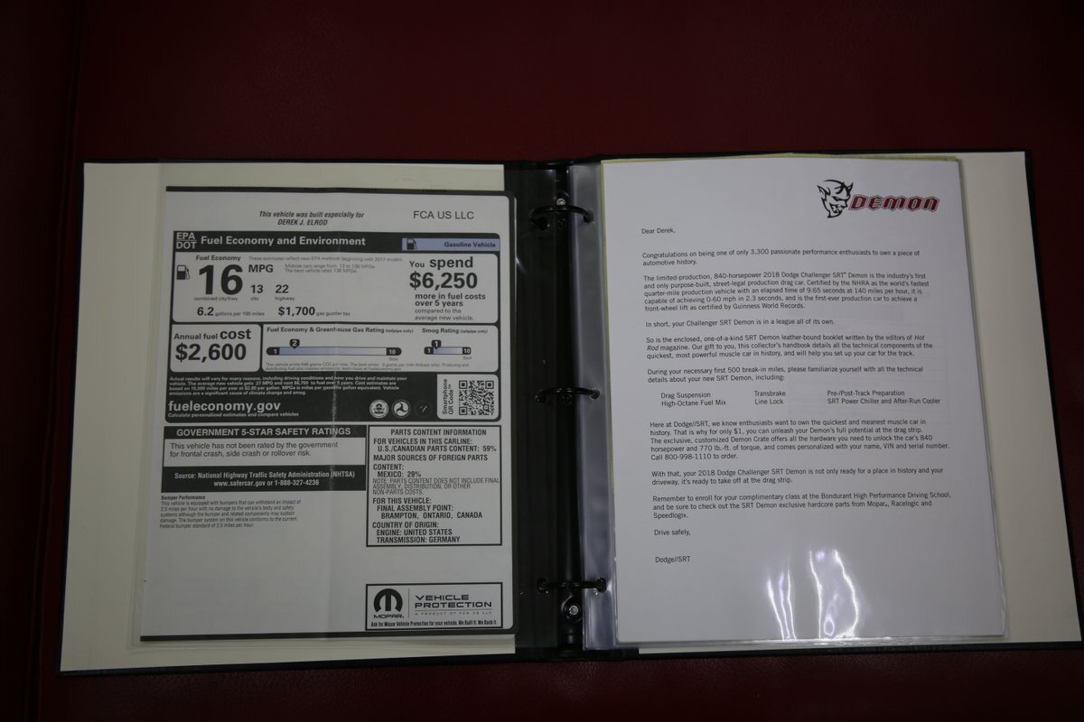 Collector grade Demons are becoming difficult to find especially True One Owner cars! Complete with an Un-Opened Demon Crate, both Car Covers, Battery Tender, Original Window Sticker and the VIN Specific Leather Performance Binder.
