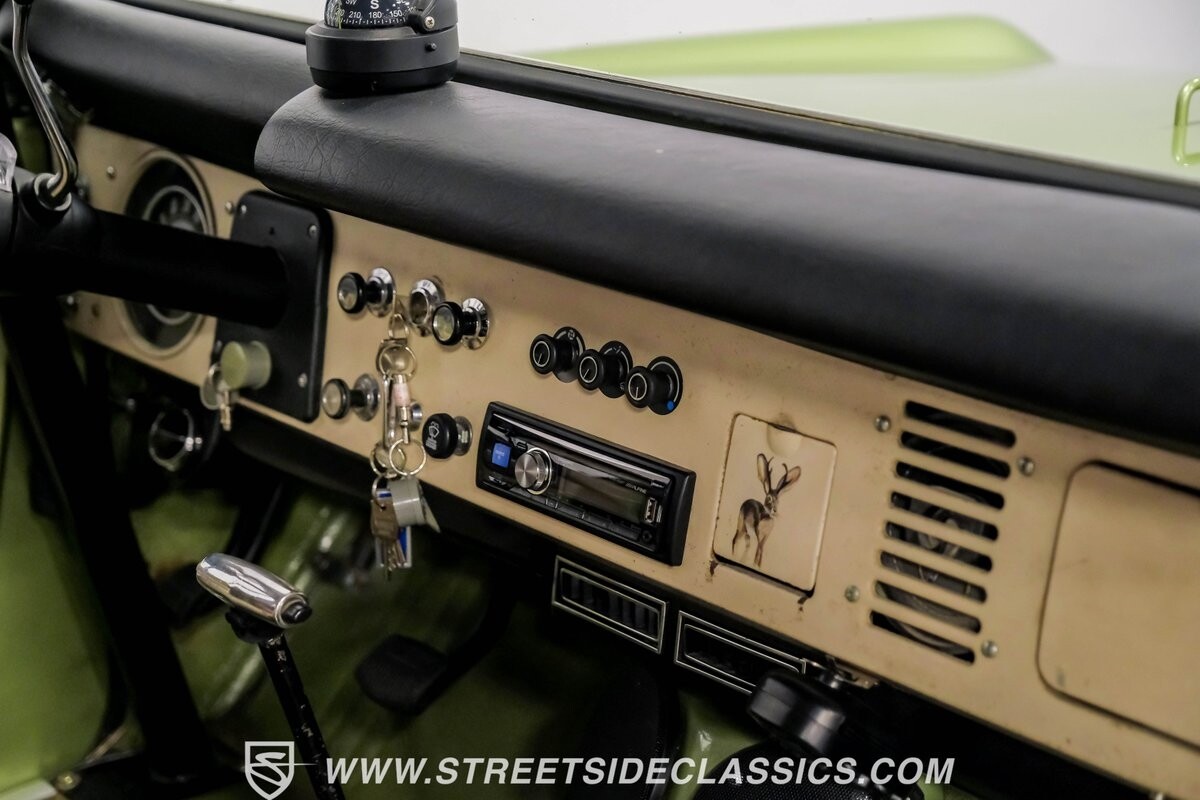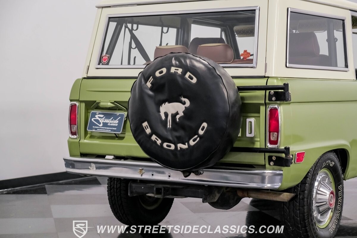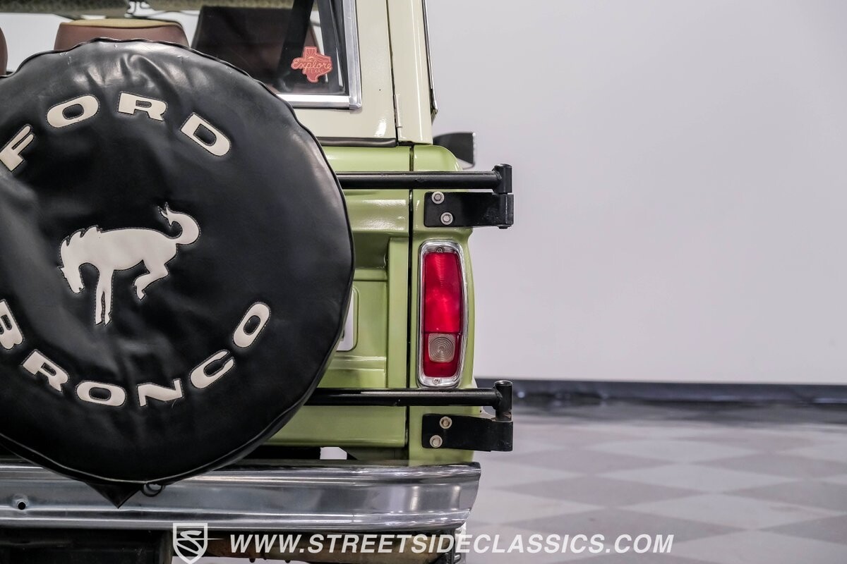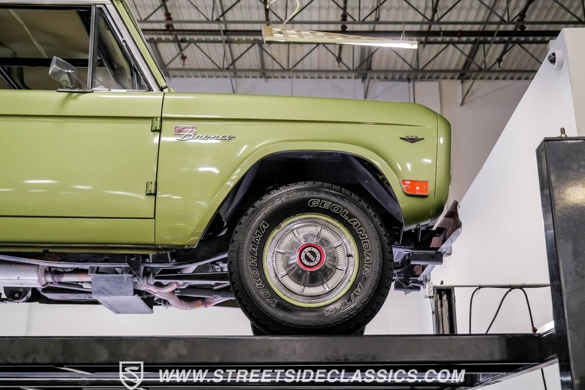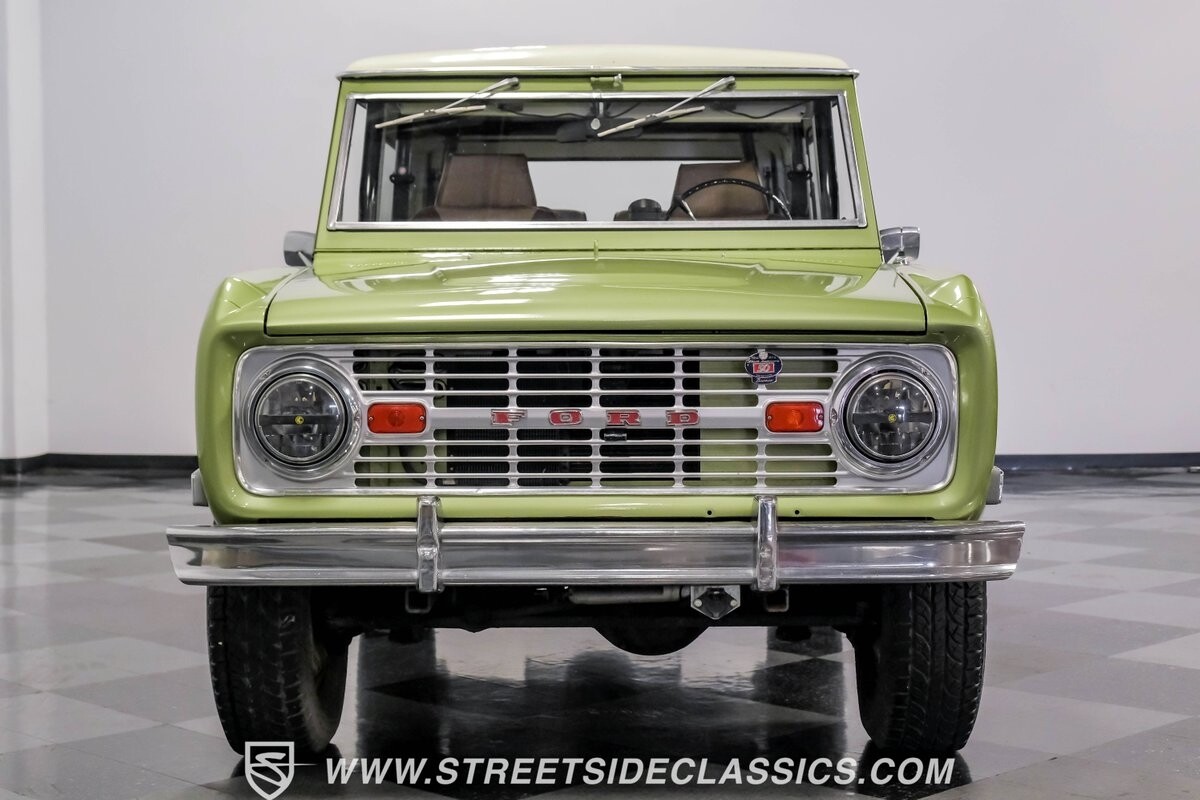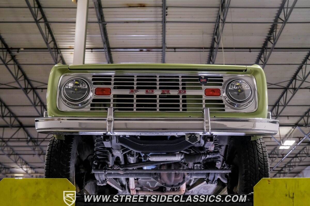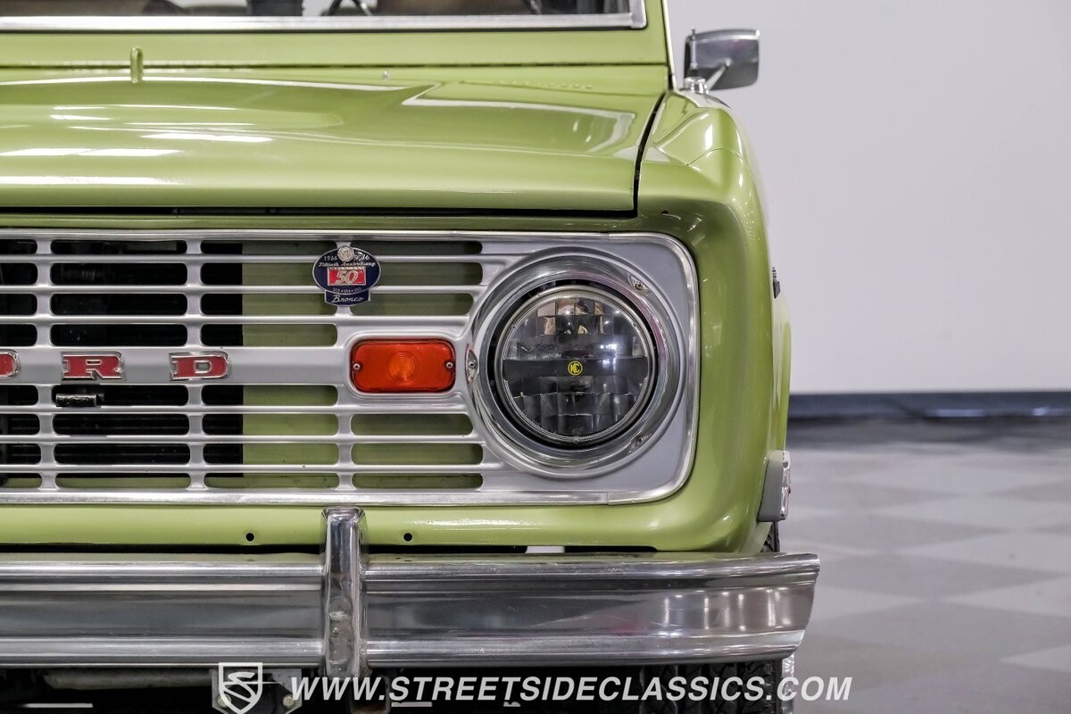 More popular than ever, the Ford Bronco is an American 4x4 icon. This handsome 1968 Bronco Sport has had its body stripped and refinished in a very appealing shade of Lime Gold Metallic, with a removable hardtop painted in white. Exterior details include uncut fenders, stock hubcaps, KC "HiLiTES" LED headlights, LED taillights, dual side mirrors, a receiver hitch and a 50th anniversary grille emblem. The spare is covered with a Bronco logoed cover and affixed to a swing-away rear tire carrier, allowing more interior space. The 15" steel wheels are painted to match the body and wear stock polished covers and 235/75 Yokohama Geolandar A/T-S tires adding to the original classic look of this early Bronco retains.