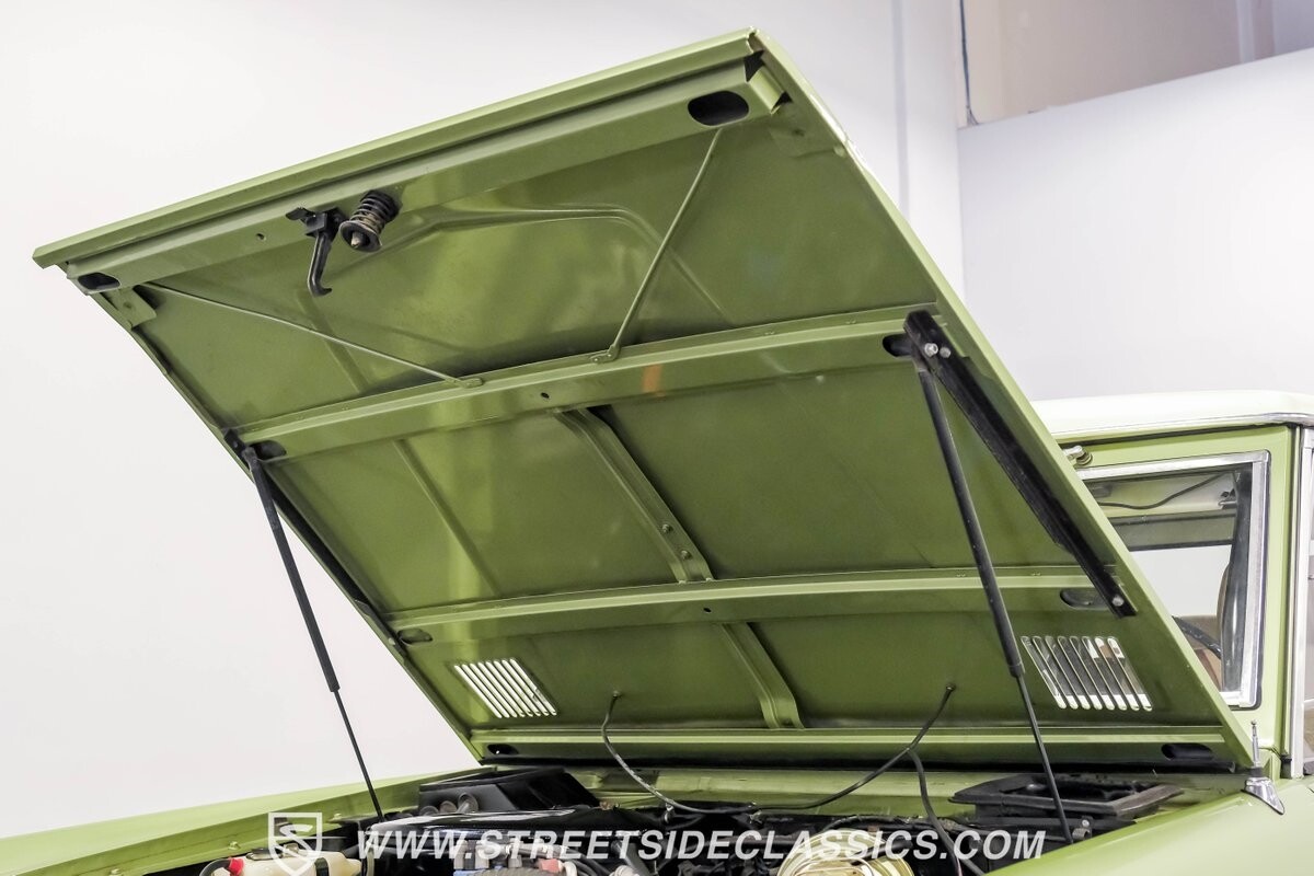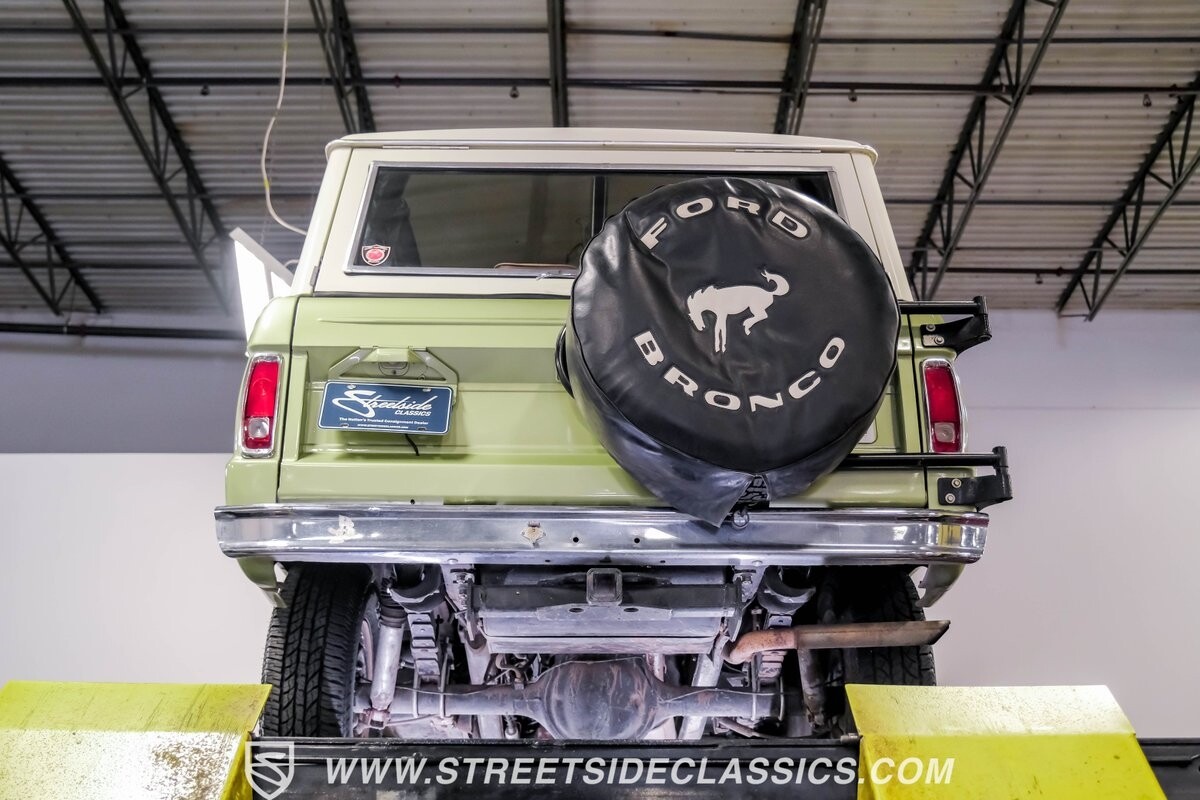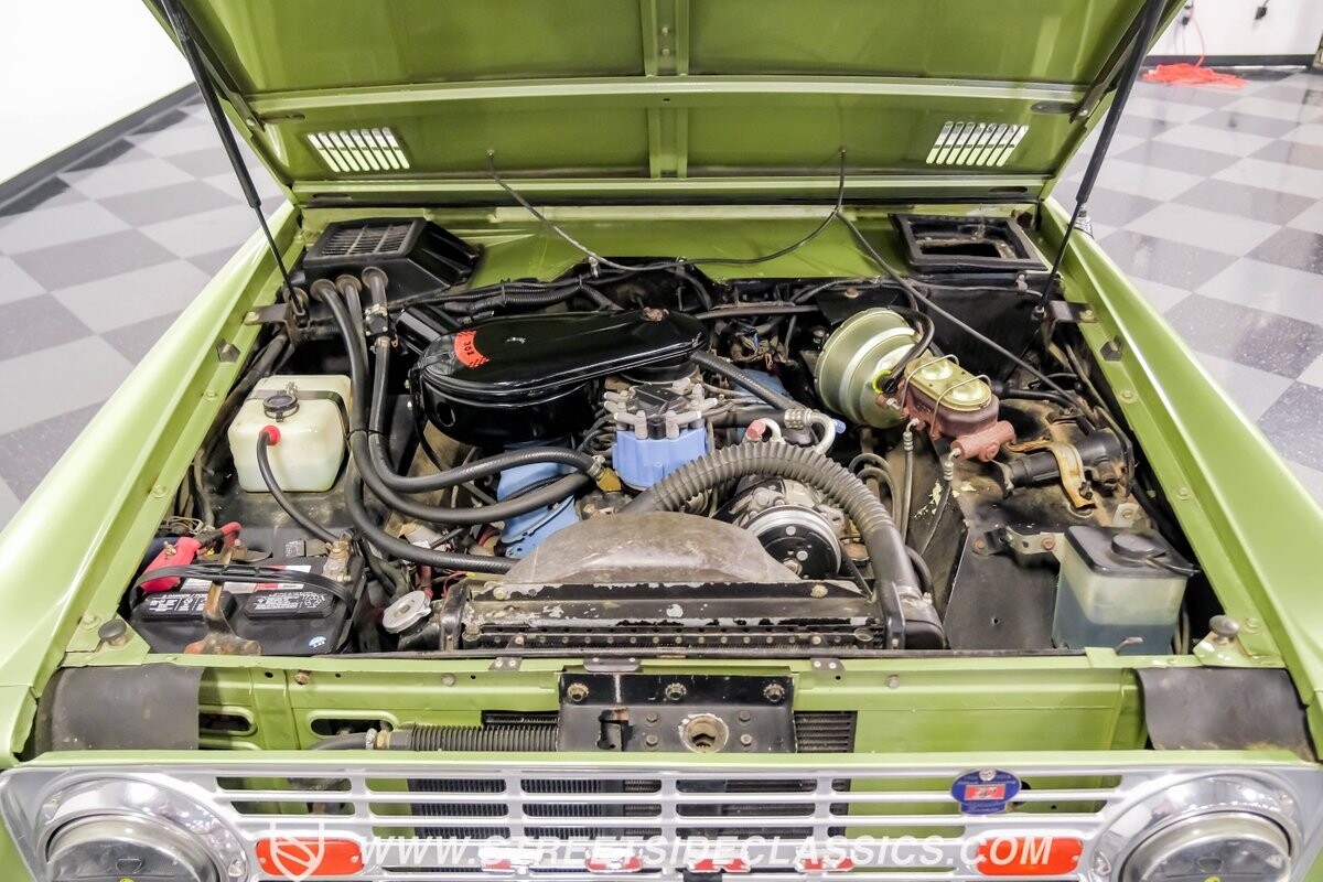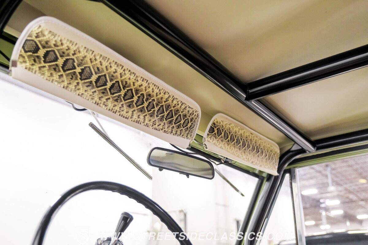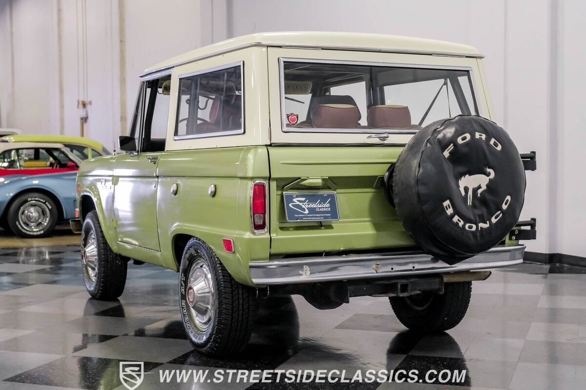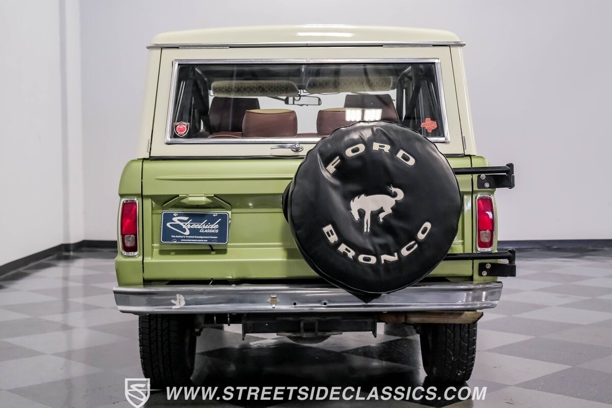 More popular than ever, the Ford Bronco is an American 4x4 icon. This handsome 1968 Bronco Sport has had its body stripped and refinished in a very appealing shade of Lime Gold Metallic, with a removable hardtop painted in white. Exterior details include uncut fenders, stock hubcaps, KC "HiLiTES" LED headlights, LED taillights, dual side mirrors, a receiver hitch and a 50th anniversary grille emblem. The spare is covered with a Bronco logoed cover and affixed to a swing-away rear tire carrier, allowing more interior space. The 15" steel wheels are painted to match the body and wear stock polished covers and 235/75 Yokohama Geolandar A/T-S tires adding to the original classic look of this early Bronco retains.