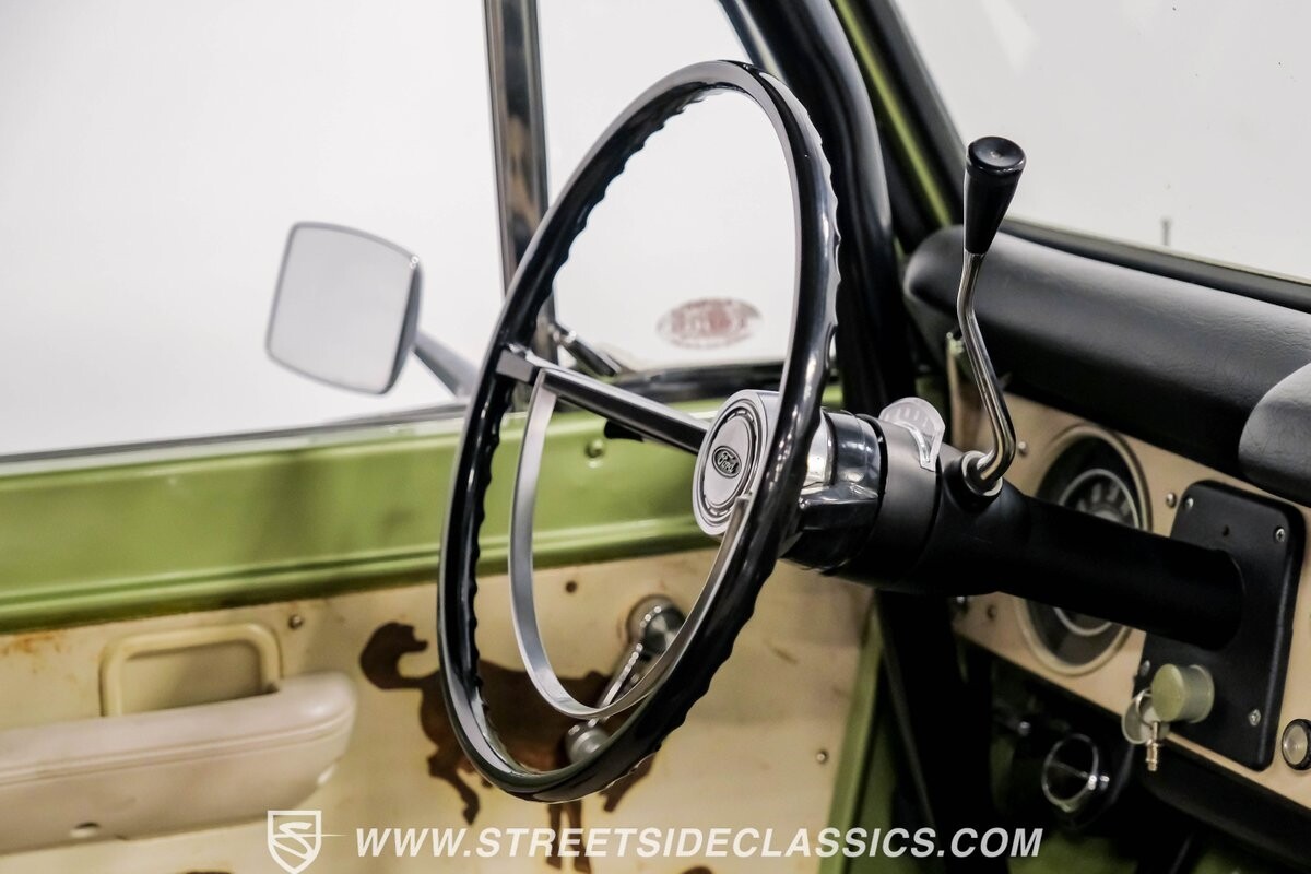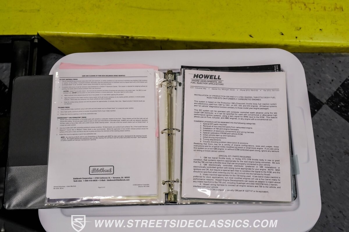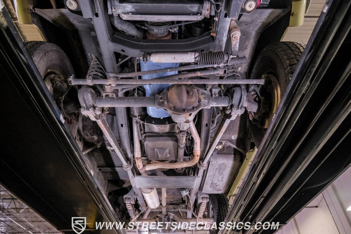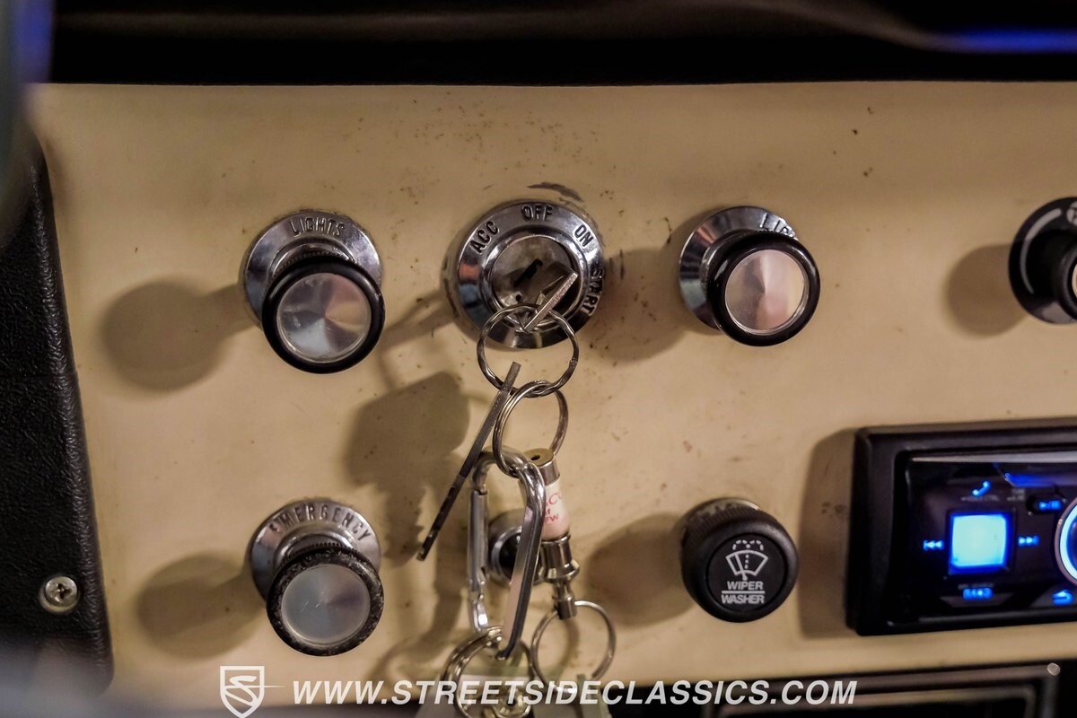 Power and performance is provided by a rebuilt 302 cubic inch V8 mated to a three-speed automatic transmission with less than 2000 miles on the rebuilt engine. Additional equipment includes a dual-range transfer case, a Howell electronic fuel injection system, an Edelbrock intake manifold, power steering and power-assisted front disc brakes.