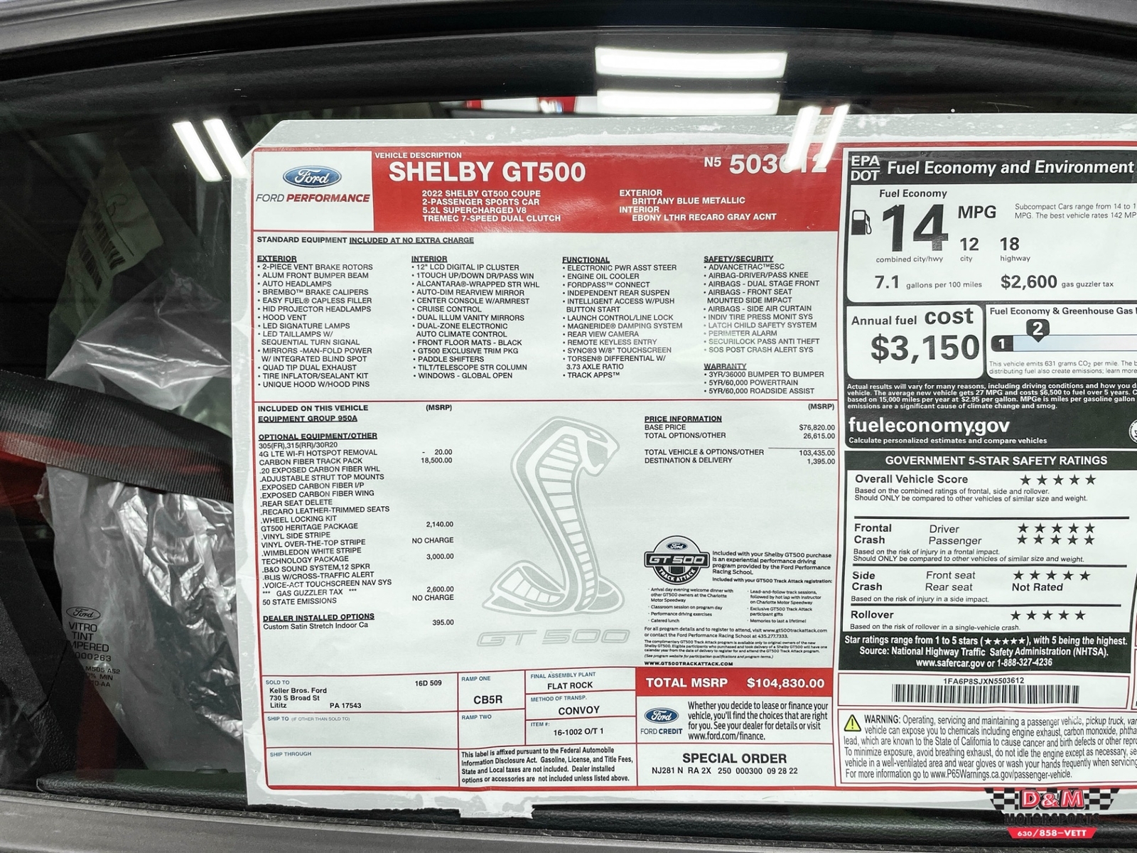 I had been wanting a Shelby gt500 since they started coming back out. it took me many years to save the money needed to buy this car. I always wanted the grabber blue with white stripes. When I found the one D&M had for sale I knew I wanted the car because it was 2010 grabber blue with red stripe ( never seen the combo before ) I always said I would never buy a car sight unseen but everything just felt right. They were great, helpful and most of all not pushy. I took a big risk in buying this car because if any issues It would take me a long time to save again. Worry no more, car arrived and is unbelievable. It was as advertised if not better. Still has new car smell and it has 9,300 miles. I can’t be happier that I made this decision. Also of note had minor setback with missing wheel lock key and notified D&M to see if they had it. They never found it but offered to pay for replacement. Being that's the only misstep I think they came through with flying colors (grabber blue of course) did a little research and did find out this color combo is low production and was also the color combo picked by no other then Mr. Carroll Shelby himself. Thanks D&M