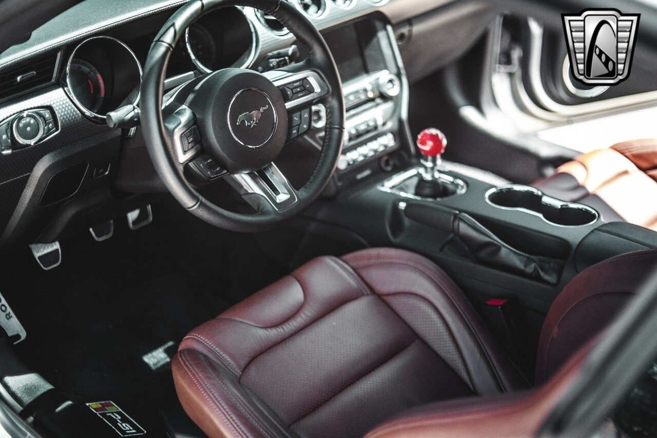 Gateway classic cars of Nashville is pleased to digitally present to you this incredible 2017 Ford Mustang Roush P-51. Reputed to be 1 of only 51 ever made, this is one special, rare, and FAST car! Now if you are a Mustang fan and let's face it, who isn't? then you know the name Jack Roush. It has been said that the P-51 is the culmination of Jack Roush's personal passion for both the aviation and performance cars. Roush performance started with a 2017 Mustang and added approximately, $42,000.00 to the price with performance upgrades. The P-51 Mustang is said to be pushing 727 Horsepower via the 5.0 Coyote that is equipped with the Roush 2.3L TVS supercharger. The list of goodies goes on and on most are performance directed and others like the bomber jacket styled leather interior are for comfort. [ omitted ]. The blending of aviation and cars has been happening for years, the 1959 Cadillac featured twin rocket taillights. The Ford Galaxie had rounded rocket taillights, but nothing comes close to flying like this P-51 mustang. Also, just like it's namesake, when you push the start button, it makes the grandest noise! Options for this Ford Mustang Roush P-51 include: Air conditioning, Cruise control, GPS, Power brakes, steering, windows, locks, mirrors, Anti-lock brakes, Tilt steering wheel, Traction control and you will need it! Leather interior and the ability to say that you have one of only 51 ever made. [ omitted ].