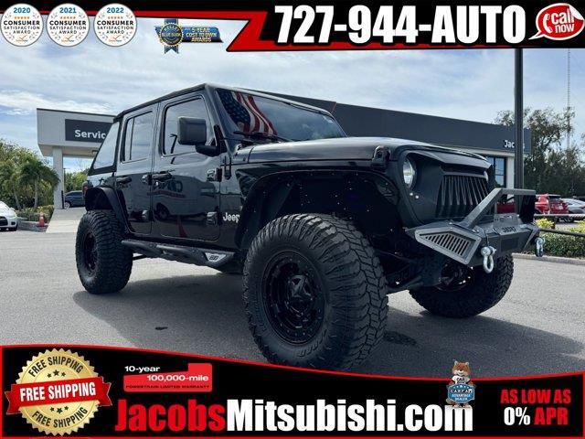 Check out this Black Clearcoat Jeep Wrangler Unlimited Sport No Accidents! One Owner! Comfort Cloth upholstery is comfortable in all seasons. 6-way driver seat - It doesn't matter how long your drive is; if you aren't comfortable while you're behind the wheel, every trip feels like a chore. With a 6-way driver seat, finding the perfect position is easy, so you can sit back, (or up, or a little forward), relax and enjoy the journey. Front passenger seat with 4-way directional controlsTechnology and Telematics Wireless connectivity - Strike the cord. Wireless technology makes it easy to place calls without having to fumble with your phone. It integrates your device with the system inside your vehicle for hands-free access. Keep connected and keep your hands on the wheel with wireless connectivity. 3 USB ports - No adaptor needed! You need a charge. You want to hear your music. But your adapter is lost and all you have is a USB cord. That's A-Okay - with 3 USB ports, you can connect and power up anywhere you go. No Accidents! One Owner! Jacobs Mitsubishi 727-228-7657 6901 US HIGHWAY 19 New Port Richey FL 34652New Port Richey FL 34652