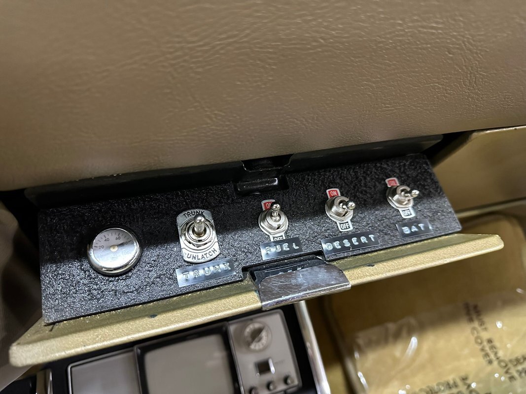 Factory options include Air conditioning, Power steering, Power Disc Brakes, Power Windows, Power Seats, Power door locks, Cruise control, Tinted Glass, Column Shift, Deluxe Seat belts (Front & Rear) and Pop up headlamps. Additionally equipped/upgraded with Electronic fuel injection, Real time engine information displays, remote door lock/unlock, remote start, 8 Track player, Sony mini TV Display and Dual batteries.