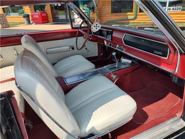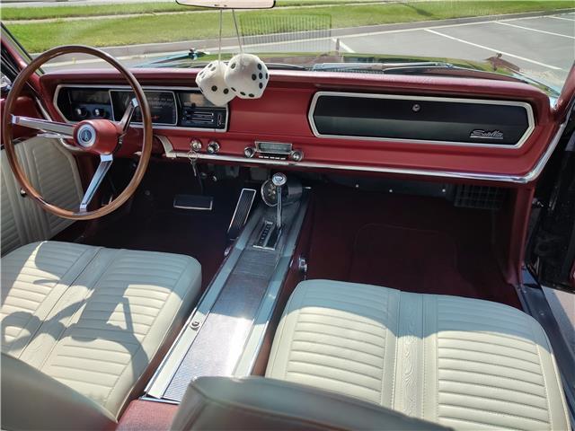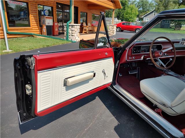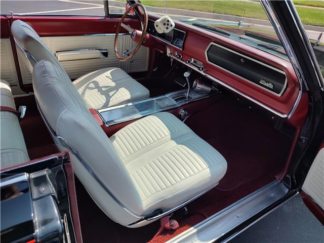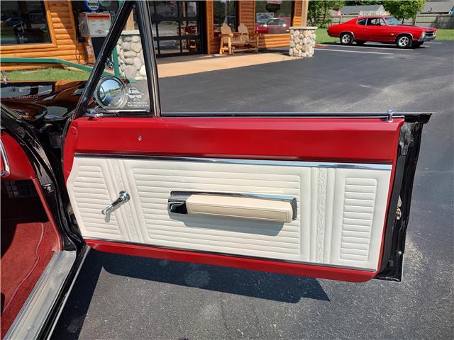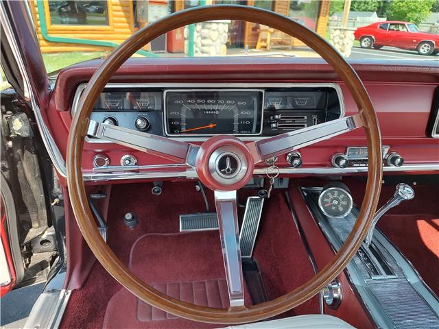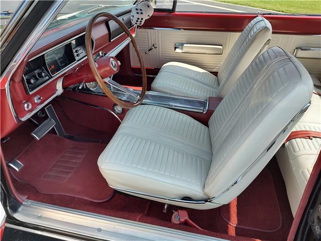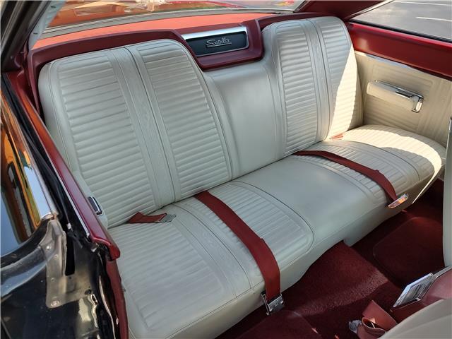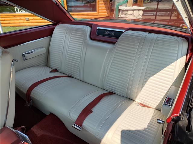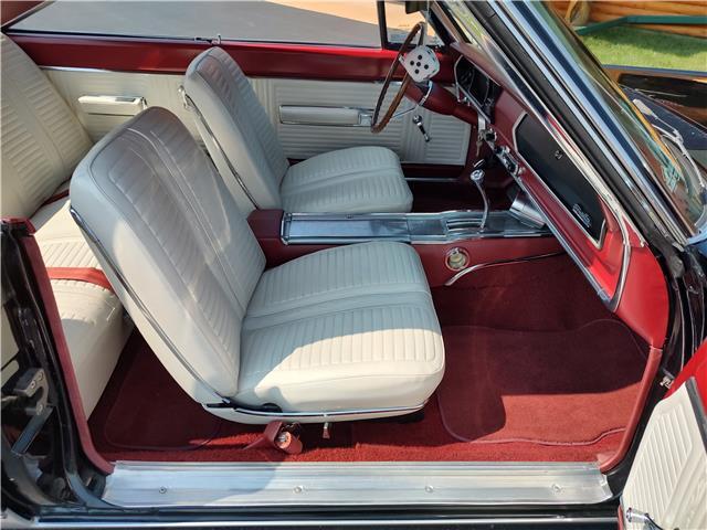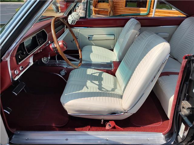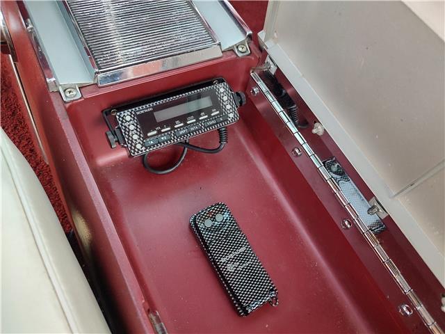 Factory Burgundy and White interior, at time of restoration dash pad was recovered, dash has been refinished, dash bezels and dash chrome is original in excellent condition, original AM radio; also has hidden stereo system with CD changer and remote nicely mounted in console, rare factory console mounted tach, original deluxe wood steering wheel in excellent condition - no cracks, at time of restoration had new Legendary Interior; new headliner and sun visors, all chrome headliner moldings are in excellent condition, new sail panels, deluxe package shelf, front & rear door panels and arm rest & bases, front and rear seats have been reupholstered, front and rear seat belts, original center console in excellent condition, new carpet and floor mats, sill plates are original in very good condition.