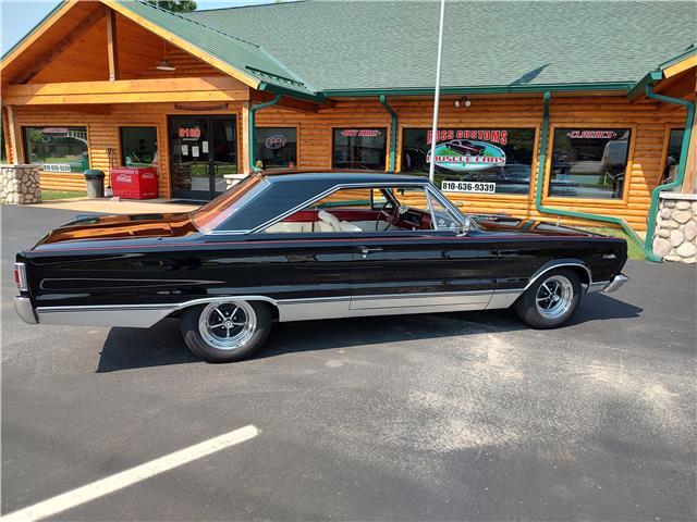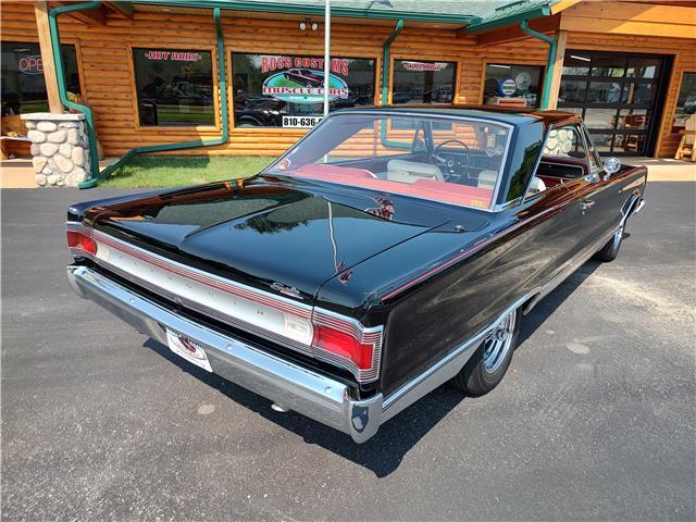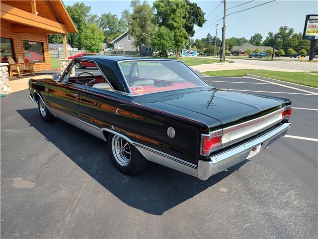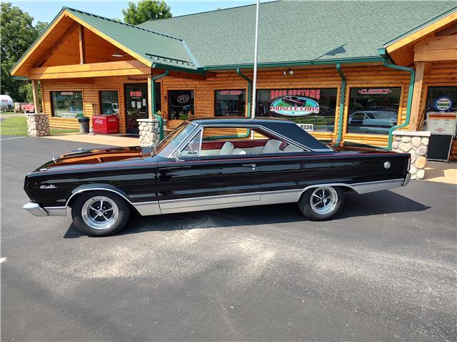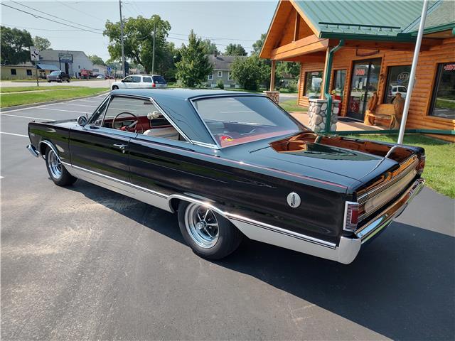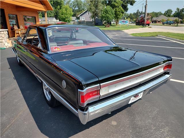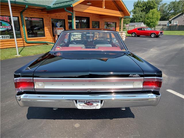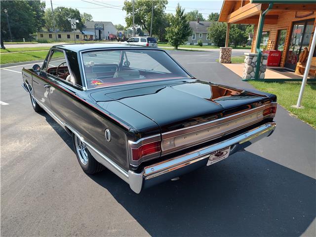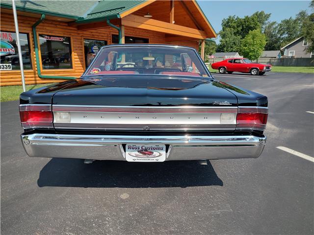 This is an "Absolutely Gorgeous" clean original panel 67 Plymouth Satellite that has had a complete rotisserie restoration, done in its original factory Black and Silver 2 tone, basecoat clearcoat, sanded and wheeled smooth, slick as glass, at time of restoration had new tinted windshield and rubber; all other glass is factory original in excellent condition, all window stainless and drip rail stainless moldings have been re-polished in excellent condition, new weather stripping and window felts, new side view mirrors; drivers side is remote, new door handles and fender blinkers, hood ornament, grill, grill molding and headlight bezels are original in excellent condition, re-chromed original front bumper, wheel well and body side moldings are original in excellent condition, rear taillight bezels, deck lid moldings and applique are original in very good condition, re-chromed original rear bumper.