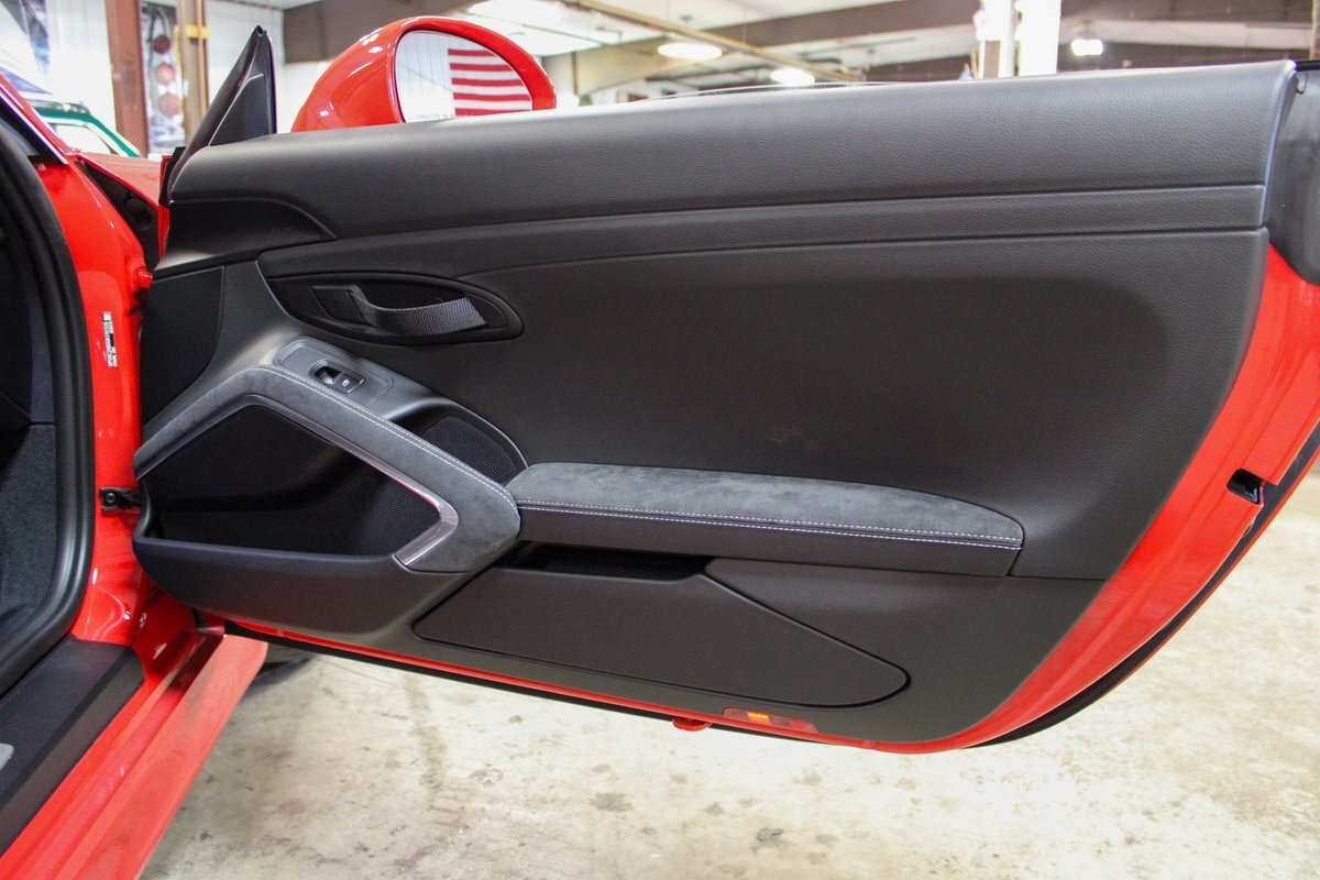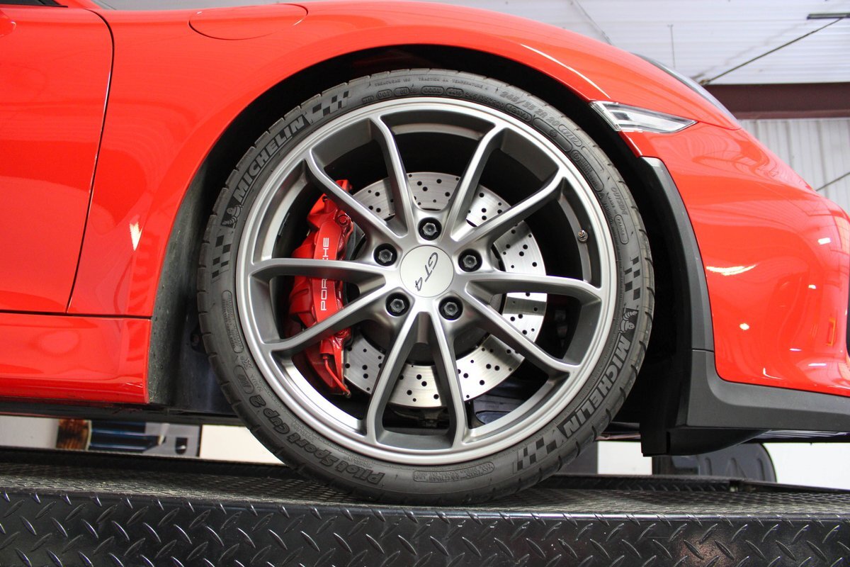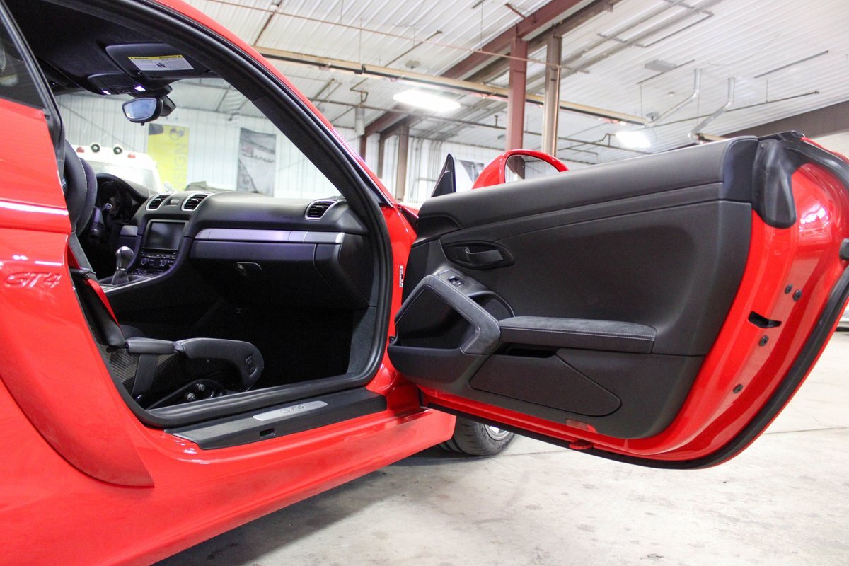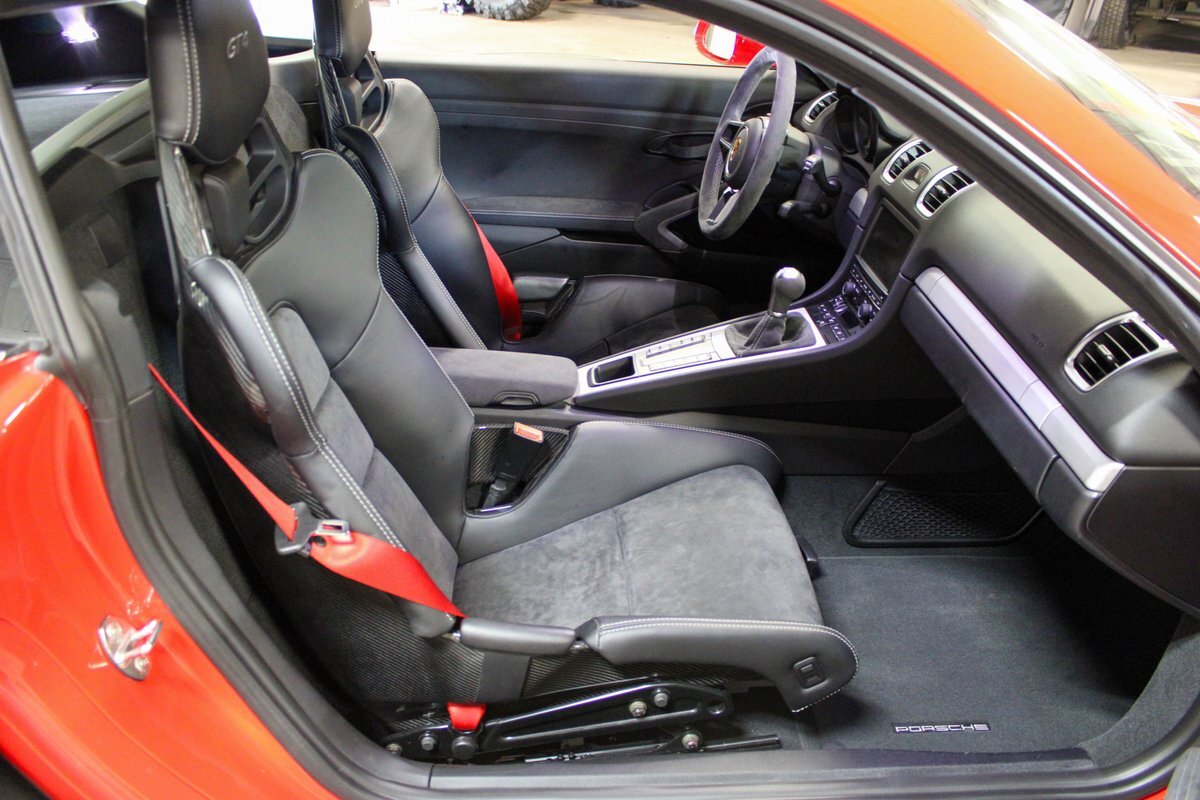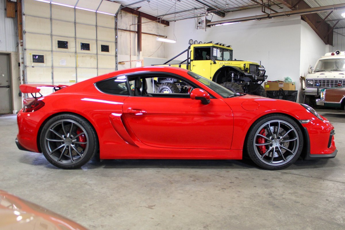 Quite arguably one of the nicest and fun cars to drive both on and off track, however This particular car has never seen a track. In fact, it barely has any miles on it and is in like new condition. The GT4 development team made a critical decision to use a 911 derived engine in a smaller, more nimble and mid engine design so that they could focus on suspension, braking, aerodynamics, which in theory makes this a better can than the 911 in my opinion. This stunning Guards red example has less than 5,000 miles on the odometer, has a manual transmission, has been serviced and is ready to be enjoyed right now. This car is definitely a face inspired car from the factory with options to boot. This car has both some nice race options as well as some nice creature comforts like a Alcantara headliner and headliner as well as a race seat both driver and passenger. The Michelin tires look new and the car has been properly serviced as well as excellent ownership from new. There are not many of these on the streets for sale and even less with under 5,000 miles. This car is priced to sell and comes with its original owners manual, factory key, recent service records and German build sheet. We welcome any questions or inspections on this vehicle. Please let us know how we can help you get in to this magnificent automobile.