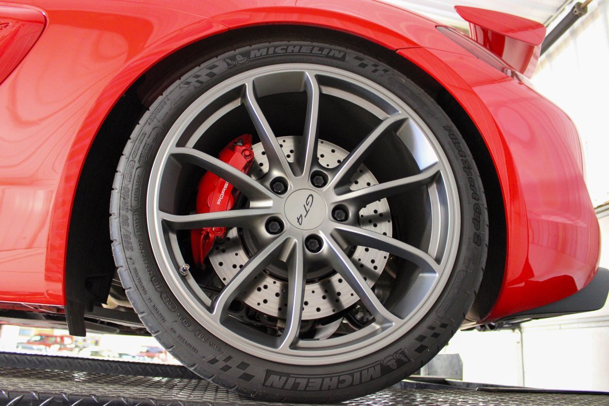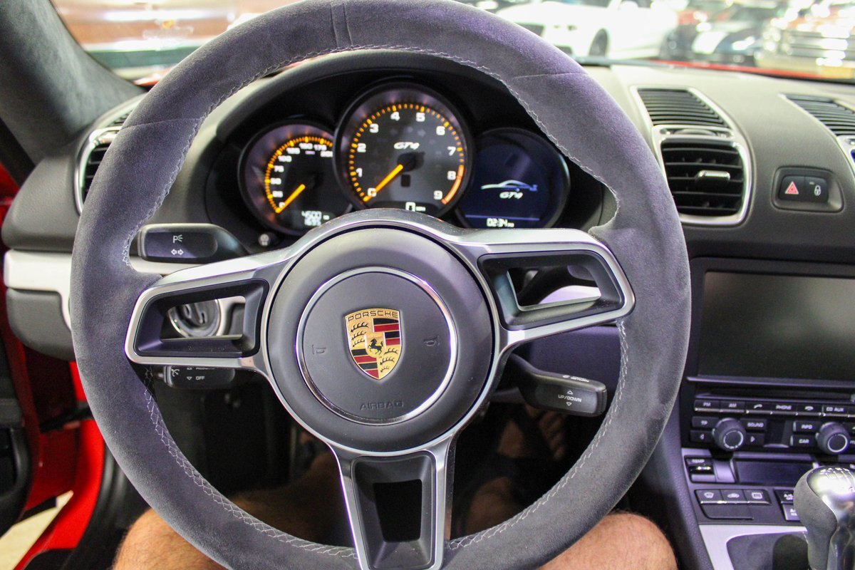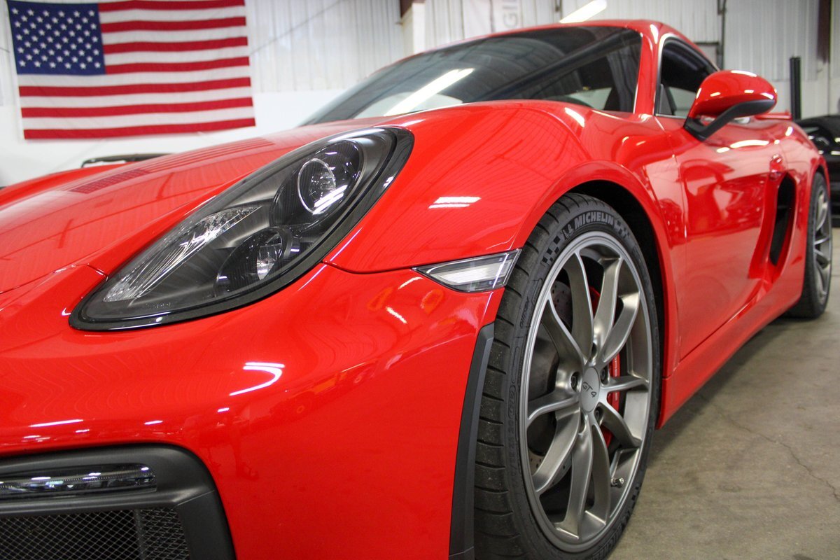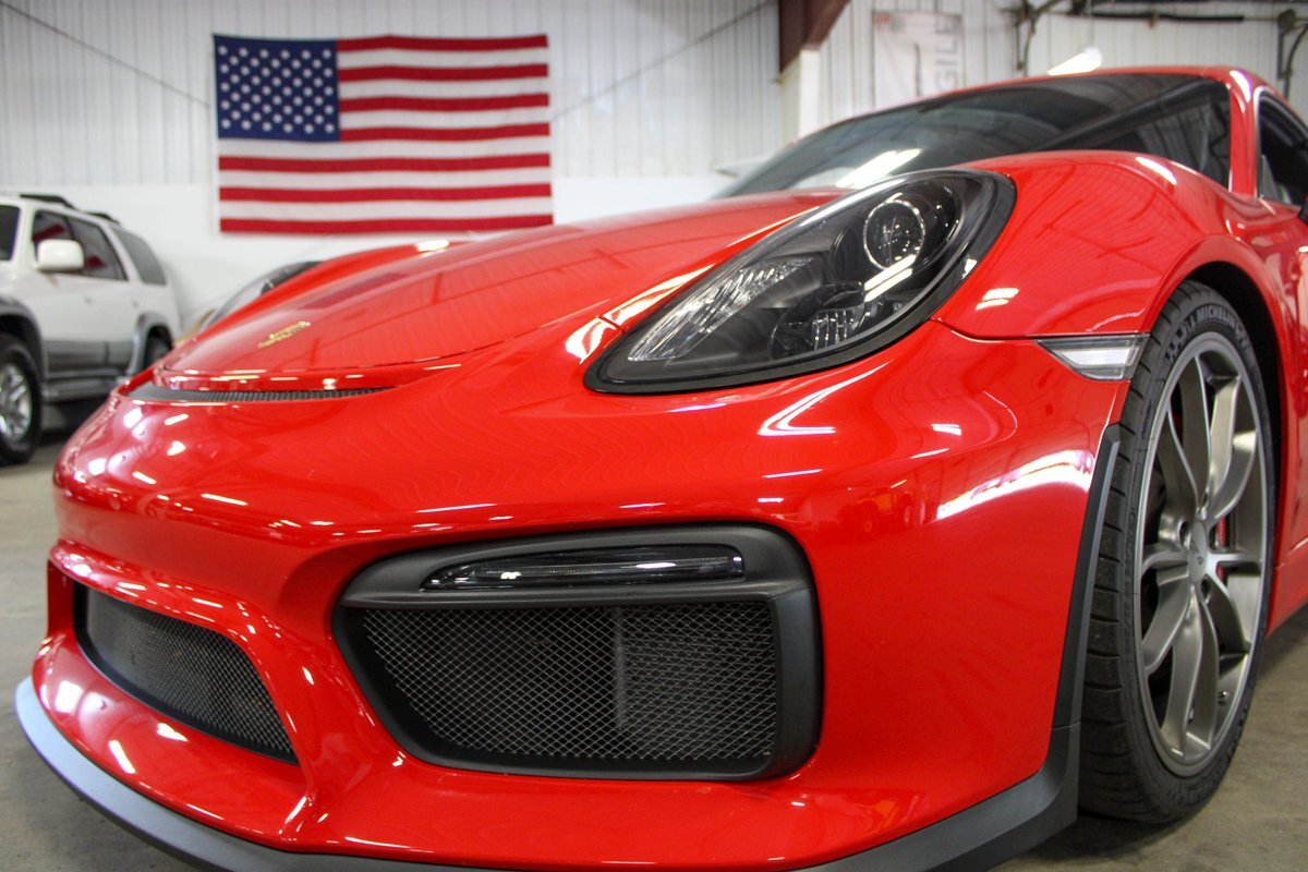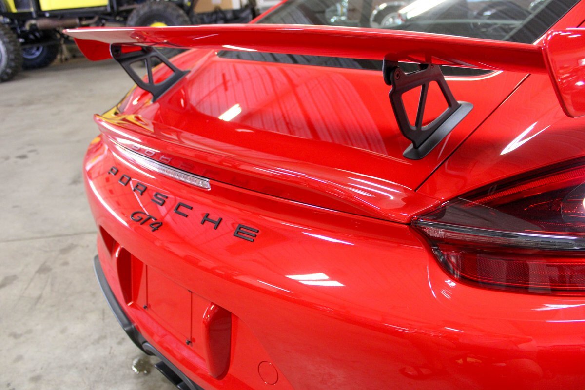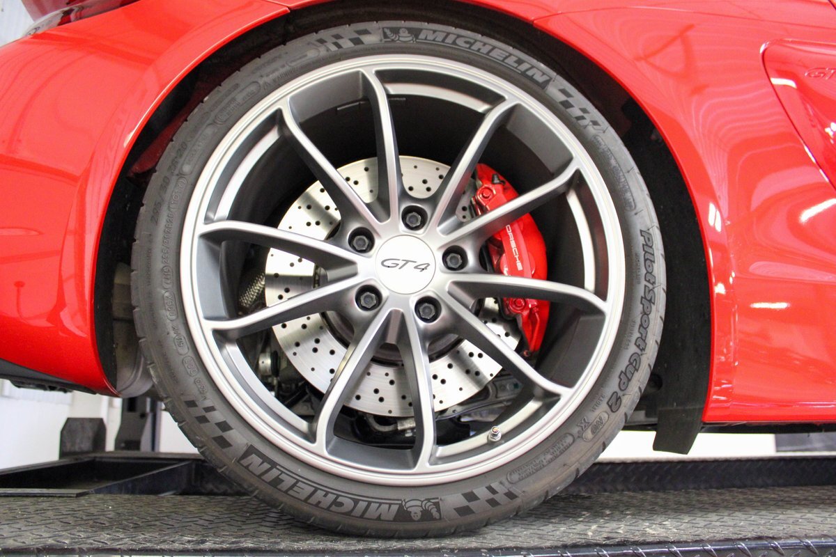 Quite arguably one of the nicest and fun cars to drive both on and off track, however This particular car has never seen a track. In fact, it barely has any miles on it and is in like new condition. The GT4 development team made a critical decision to use a 911 derived engine in a smaller, more nimble and mid engine design so that they could focus on suspension, braking, aerodynamics, which in theory makes this a better can than the 911 in my opinion. This stunning Guards red example has less than 5,000 miles on the odometer, has a manual transmission, has been serviced and is ready to be enjoyed right now. This car is definitely a face inspired car from the factory with options to boot. This car has both some nice race options as well as some nice creature comforts like a Alcantara headliner and headliner as well as a race seat both driver and passenger. The Michelin tires look new and the car has been properly serviced as well as excellent ownership from new. There are not many of these on the streets for sale and even less with under 5,000 miles. This car is priced to sell and comes with its original owners manual, factory key, recent service records and German build sheet. We welcome any questions or inspections on this vehicle. Please let us know how we can help you get in to this magnificent automobile.