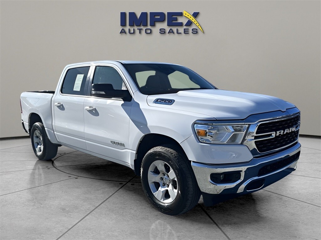 CARFAX One-Owner. This 2022 Ram 1500 Big Horn/Lone Star 4WD with 34809 miles was carefully inspected and reconditioned by our service team. Impex Auto Sales offers 7-Day/300-Mile Money-Back Guarantee, an exclusive 100+ Point Vehicle Inspection, Third-Party Price Validation, and a Vehicle History Report. Purchase your vehicle online for home delivery or pick it up at Impex Auto Sales. If you need to get rid of your current vehicle. You can trade it or we can buy it. Price excludes tax, tag, title and $799 administrative fee as regulated by N.C.G.S. 20-101.1.