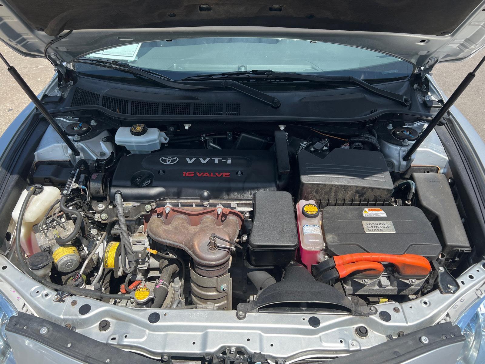 This 2008 Toyota Camry Hybrid with just 42293 miles is available now. A vehicle history report is always available. No Accidents! This vehicle is equipped with Comfort Power reclining driver seat - Lean back. Gain some space between you and the wheel with power reclining driver seat. It lets you adjust the angle of the seatback at the touch of a button for added comfort while you're driving, or for a more comfortable rest while you're pulled over. Settle in, with power reclining driver seat. Power reclining driver seat - Lean back. Gain some space between you and the wheel with power reclining driver seat. It lets you adjust the angle of the seatback at the touch of a button for added comfort while you're driving, or for a more comfortable rest while you're pulled over. Settle in, with power reclining driver seat.Convenience Cruise control with steering wheel mounted controls. Set it and forget it. Road trips used to be stressful, until cruise control set the pace. Simply set the desired speed using the steering wheel mounted controls and it will maintain that speed without driver intervention. This can help minimize driver fatigue and improve overall fuel economy. Resting your right foot is right at your fingertips thanks to cruise control with steering wheel mounted controls.Powertrain and Mechanical Variable valve timing - Change your output. There are a lot of variables in your drive, so why should your engine always operate the same? With variable valve timing, the engine is efficient at both low and high RPM's, so you get better fuel efficiency, cleaner emissions and improved performance. Variable valve timing provides a better drive, every time.Safety and Security Brake assist - Stop right there. Something jumps out into the middle of the road and you need to stop now! With brake assist, you will. It uses the speed of the brake pedal's travel to sense panic braking, then applies all available power to boost your stopping power. Brake assist can stop the accident before it is one. 2.4L DOHC VVT-i 16-valve aluminum alloy 4-cyl engine, Electronic controlled continuously variable transmission, Battery saver, Front wheel drive, Front independent MacPherson strut suspension, Rear independent dual-link suspension, Front/rear stabilizer bars, Temporary spare tire, 16" x 6.5" steel wheels w/wheel covers, Electric pwr-assist rack and pinion steering, Pwr front ventilated/rear solid disc brakes, Chrome-tipped exhaust, Auto on/off multi-reflector halogen headlamps, Acoustic noise-reducing windshield, High solar energy-absorbing (HSEA) glass, Color-keyed pwr mirrors, Washer-linked variable intermittent wipers w/mist cycle, 60/40 split fold-down rear seat w/security locks, adjustable headrests, Bi-level covered center console w/storage, Front cup holders, Fold-down rear center armrest w/dual cup holders, Tilt/telescoping steering wheel w/audio controls, Optitron instrumentation-inc: coolant temp, instant mileage, twin tripmeters, Multi-information display-inc: ECO drive level, hybrid system energy flow, outside temp display, average fuel economy, trip computer, Digital clock, Direct tire pressure monitoring system, Pwr windows w/driver auto-down, retained pwr, Cruise Control, Remote releases-inc: hood, trunk, fuel-filler door, HomeLink universal transmitter, HD electric rear window defogger w/timer, In-glass antenna, Defroster-linked dual-zone auto climate control-inc: electric compressor, Plasmacluster ionizer, rear seat vents, Fabric door trim w/integrated armrests, rear map pockets, Metallic-style interior trim w/chrome door handle accents, Overhead console w/maplights, sunglass holder, Dual visor vanity mirrors, Illuminated entry, Lockable illuminated glove box, Seatback pockets, (2) 12-volt aux pwr outlets, Trunk cargo net, Driver & front passenger advanced airbags w/occupant sensor, Front seat-mounted side airbags, Front/rear side curtain airbags, Driver knee airbag, 3-point ELR seatbelts for all seating positions-inc: front adjustable shoulder belt anchors, Child-protector rear door locks, Rear seat child restraint system (CRS) w/lower anchors & top tether brackets (LATCH), Internal trunk-release handle, Energy-absorbing collapsible steering column, Side-impact door beams