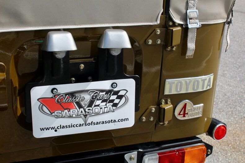 1978 Toyota Land Cruiser FJ40 As a Japanese copy of the famed WWII era jeep and with origins dating to the Korean War era, Toyota launched the FJ40 series utility vehicle in 1960. Official importation to the U.S. began in 1963, and within two years the FJ40 Land Cruiser was hands down the best-selling Toyota in America. Cosmetically, the FJ was essentially the same truck until it went out of production in 1983, barring minor trim tweaks This 1978 Toyota Land Cruiser FJ40 is finished in olive green over a gray interior and is powered by a 4.2-liter straight-six paired with a four-speed manual transmission, 4x4. Restored in 2021 EXTERIOR: aˆc Olive Green aˆc Tan Soft Top aˆc Winch INTERIOR: aˆc Gray bench seats aˆc Rear bench seats MECHANICS: aˆc 6-cyl. aˆc 4 Speed aˆc 4x4, locking front hubs UNDERCARRIAGE: aˆc 4X4 aˆc New Tires aˆc Tow hitch Call us at941-208-6886, a live person answers the phones from 9am - 9pm (EST) Financing is available on our website We can ship this vehicle world wide door to door Our indoor showroom is located at 7910 25th Court East Unit 107 Sarasota, FL 34243