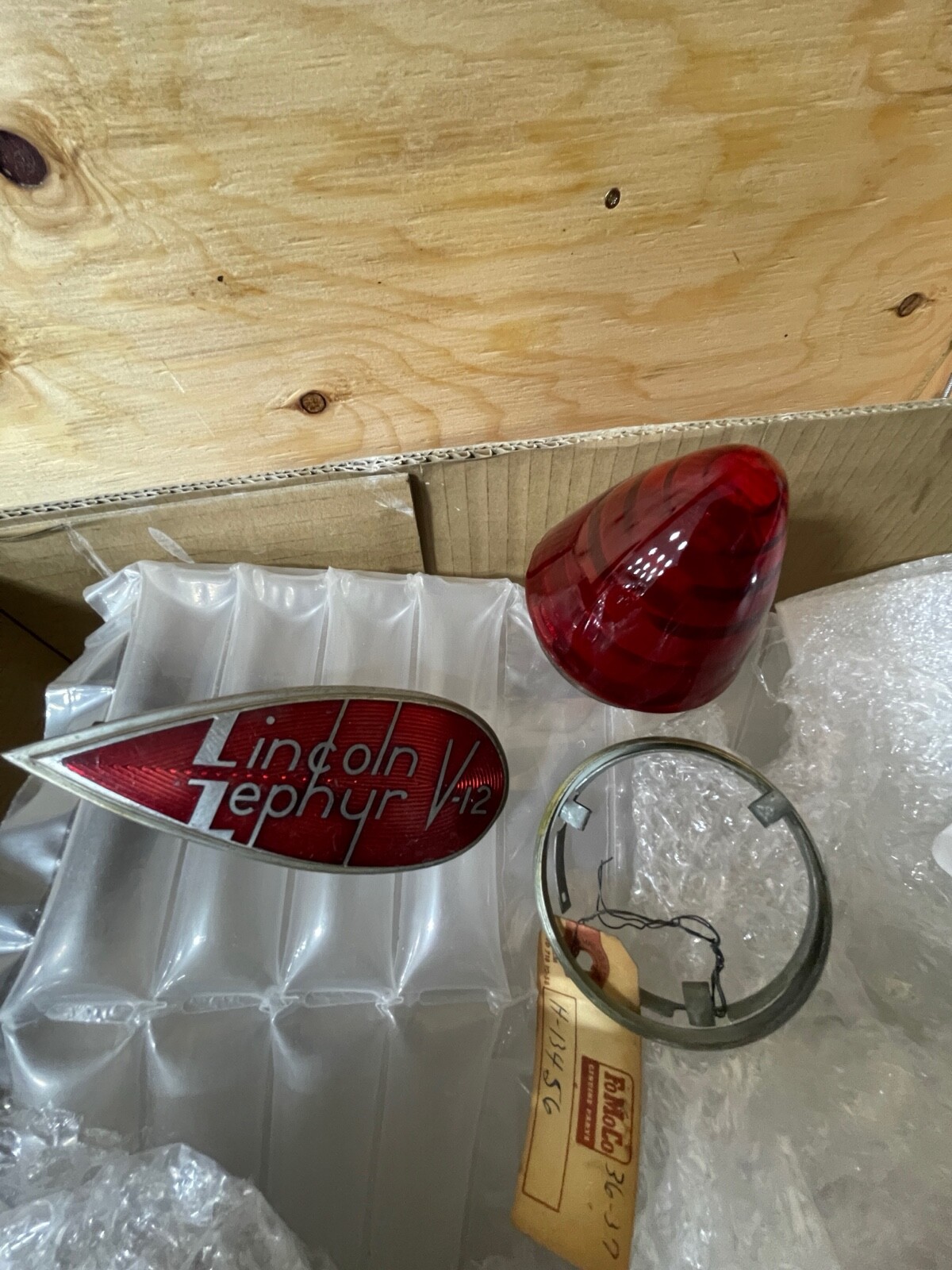 Interior has original 37' dash (have gauges) & dash waterfall, 37' Zephyr steering wheel good shape and column. Seat frames saved, all original seat padding saved in bags. Spare tire bracket intact. Interior trim moldings saved for patterns.