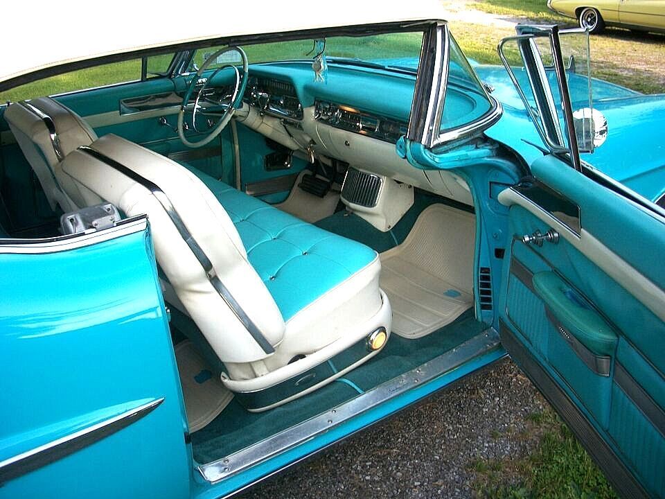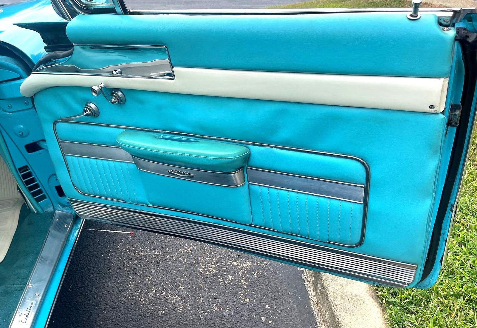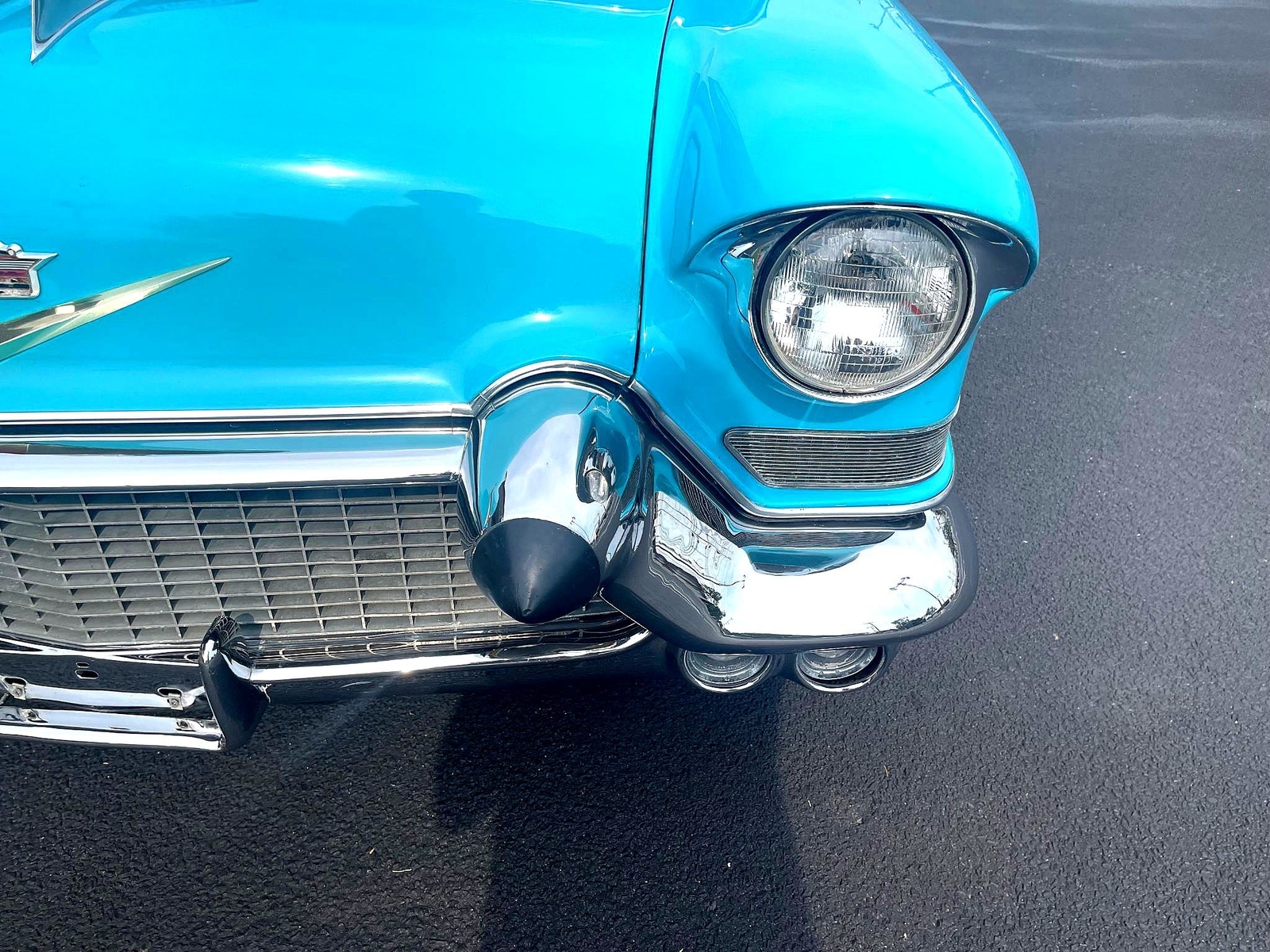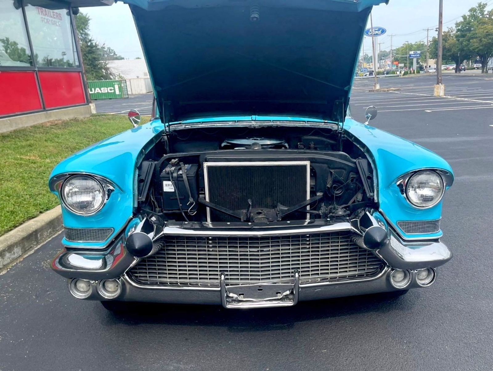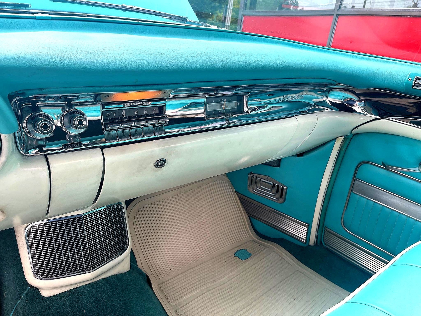 1957 Cadillac Series 62 Convertible Rare Blue with Original Blue and White Leather Interior. The Cadillac was GM's premier luxury car!! Just arrived older restoration looks fantastic in and out great leather interior looks beautiful leather dash. Runs and drives like a yacht. The 1957/58 Cadillac’s new chassis let it sit lower, the bumper guards now had rubber tips and the parkers mounted within the bumper. Tail fins, like a cut off shark fin, the tail lights round too. Models available in 1957; Series 62; 129 inch wheelbase; 2 door Hardtop, Convertible and 4 door sedan. Upmarket Coupe deVille and Sedan deVille Hardtop (scrolled 'deVille' on front fenders), Eldorado Biartitz convertible and Eldorado Seville 2 door Hardtop (different rear quarters) . Engine; 325hp 365 cu in OHV V8 (all models) except the Eldorado that was equipped with two four barrel carb's......