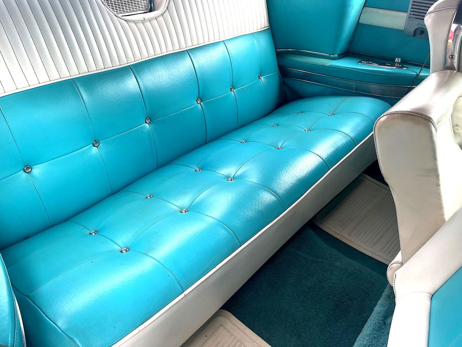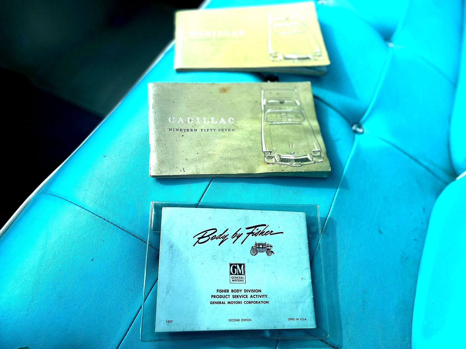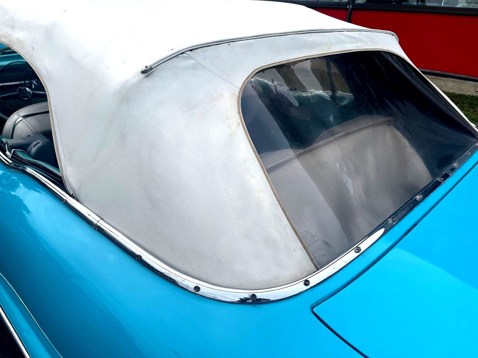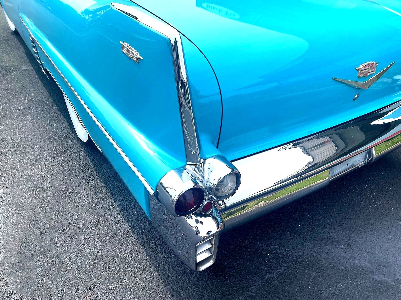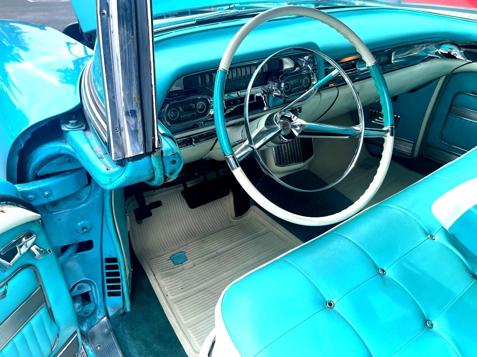 1957 Cadillac Series 62 Convertible Rare Blue with Original Blue and White Leather Interior. The Cadillac was GM's premier luxury car!! Just arrived older restoration looks fantastic in and out great leather interior looks beautiful leather dash. Runs and drives like a yacht. The 1957/58 Cadillac’s new chassis let it sit lower, the bumper guards now had rubber tips and the parkers mounted within the bumper. Tail fins, like a cut off shark fin, the tail lights round too. Models available in 1957; Series 62; 129 inch wheelbase; 2 door Hardtop, Convertible and 4 door sedan. Upmarket Coupe deVille and Sedan deVille Hardtop (scrolled 'deVille' on front fenders), Eldorado Biartitz convertible and Eldorado Seville 2 door Hardtop (different rear quarters) . Engine; 325hp 365 cu in OHV V8 (all models) except the Eldorado that was equipped with two four barrel carb's......