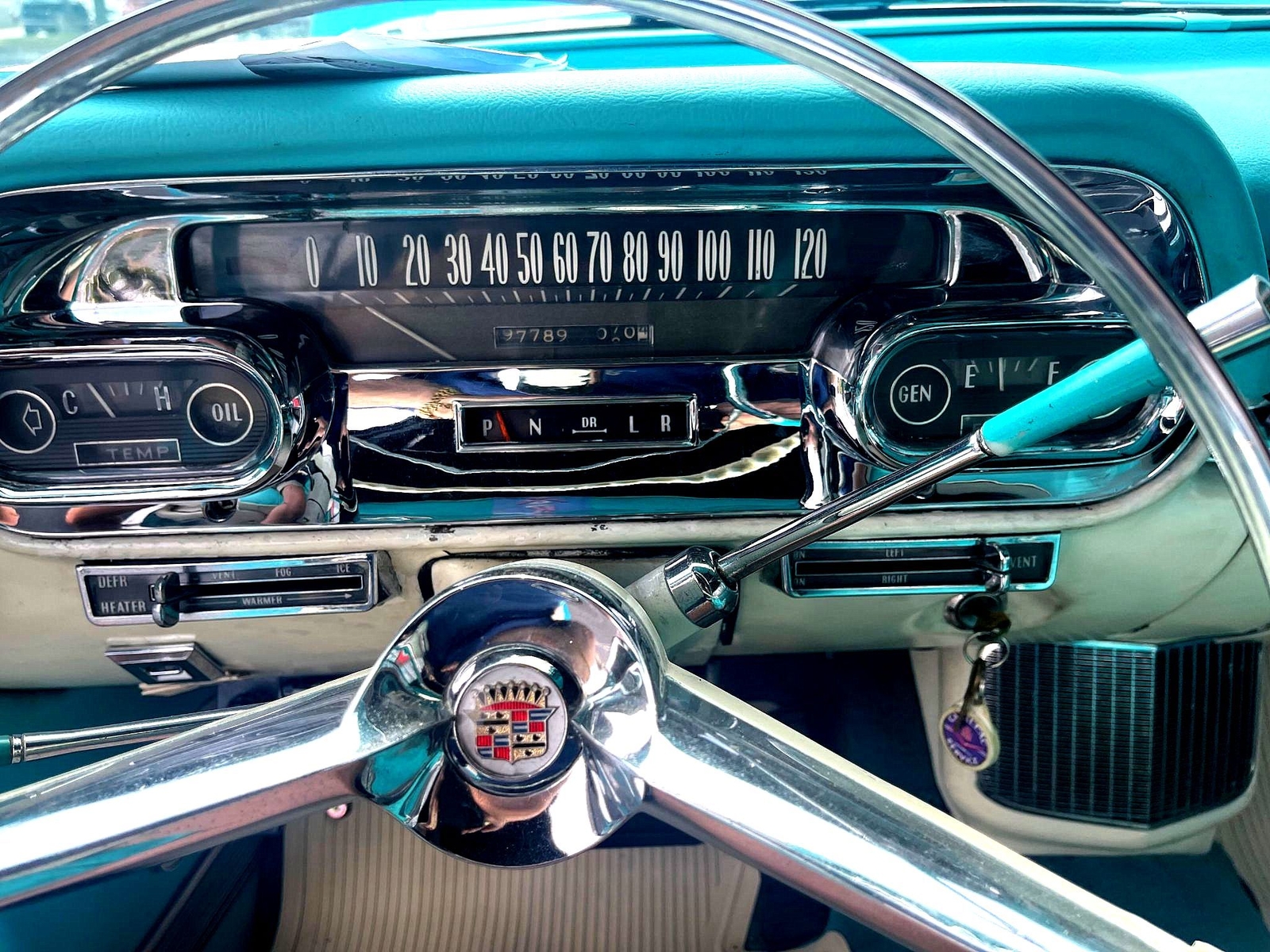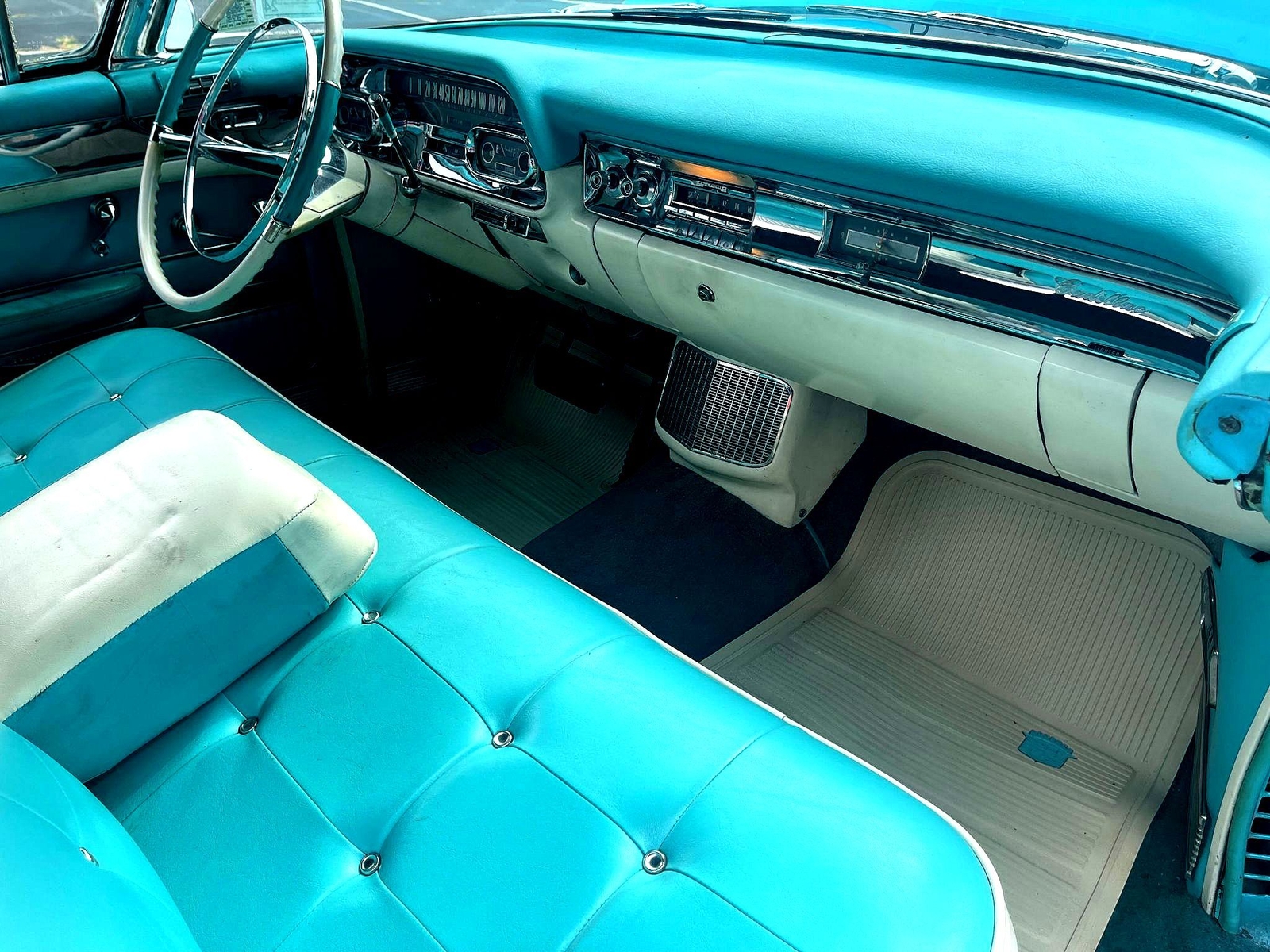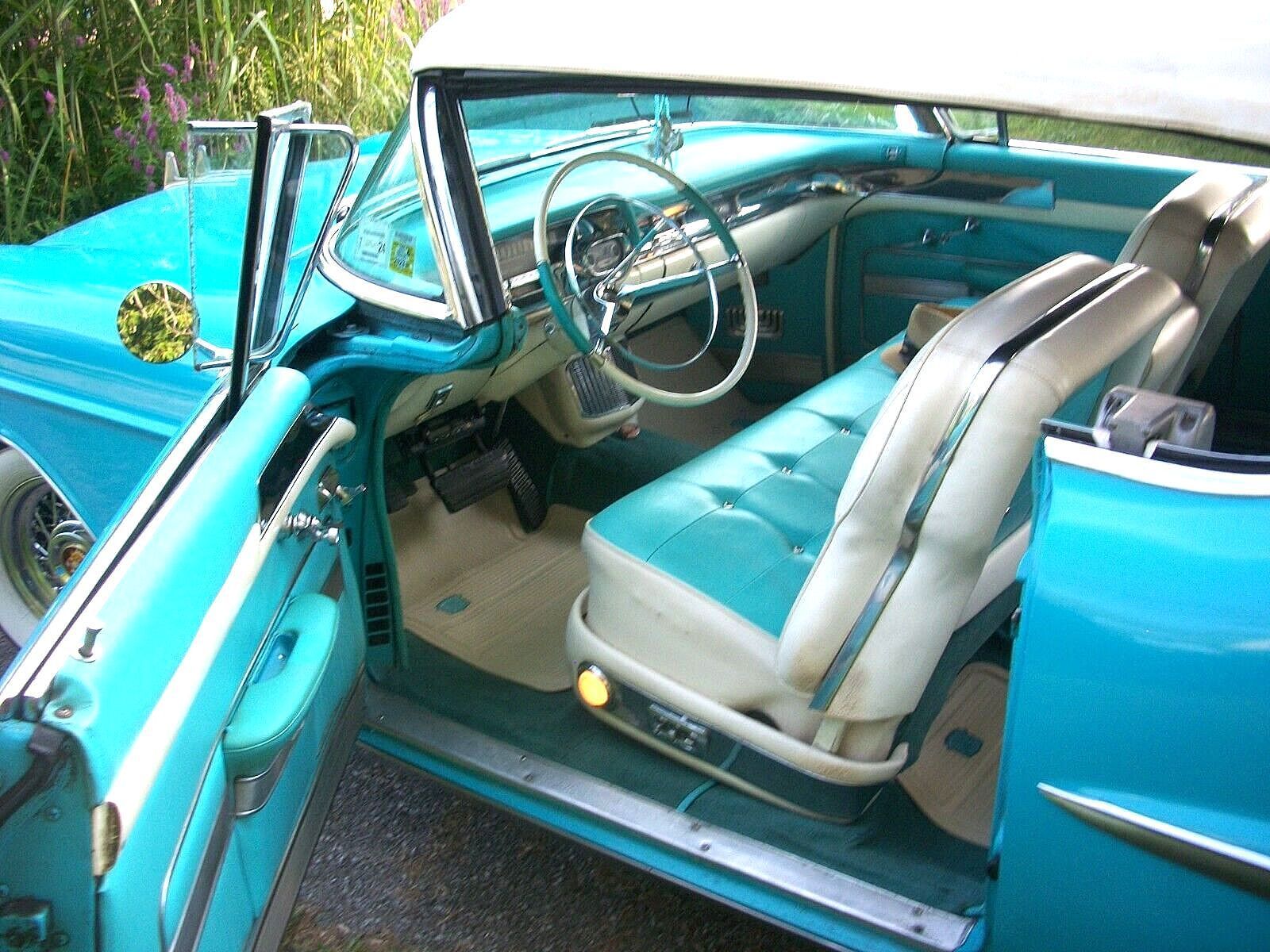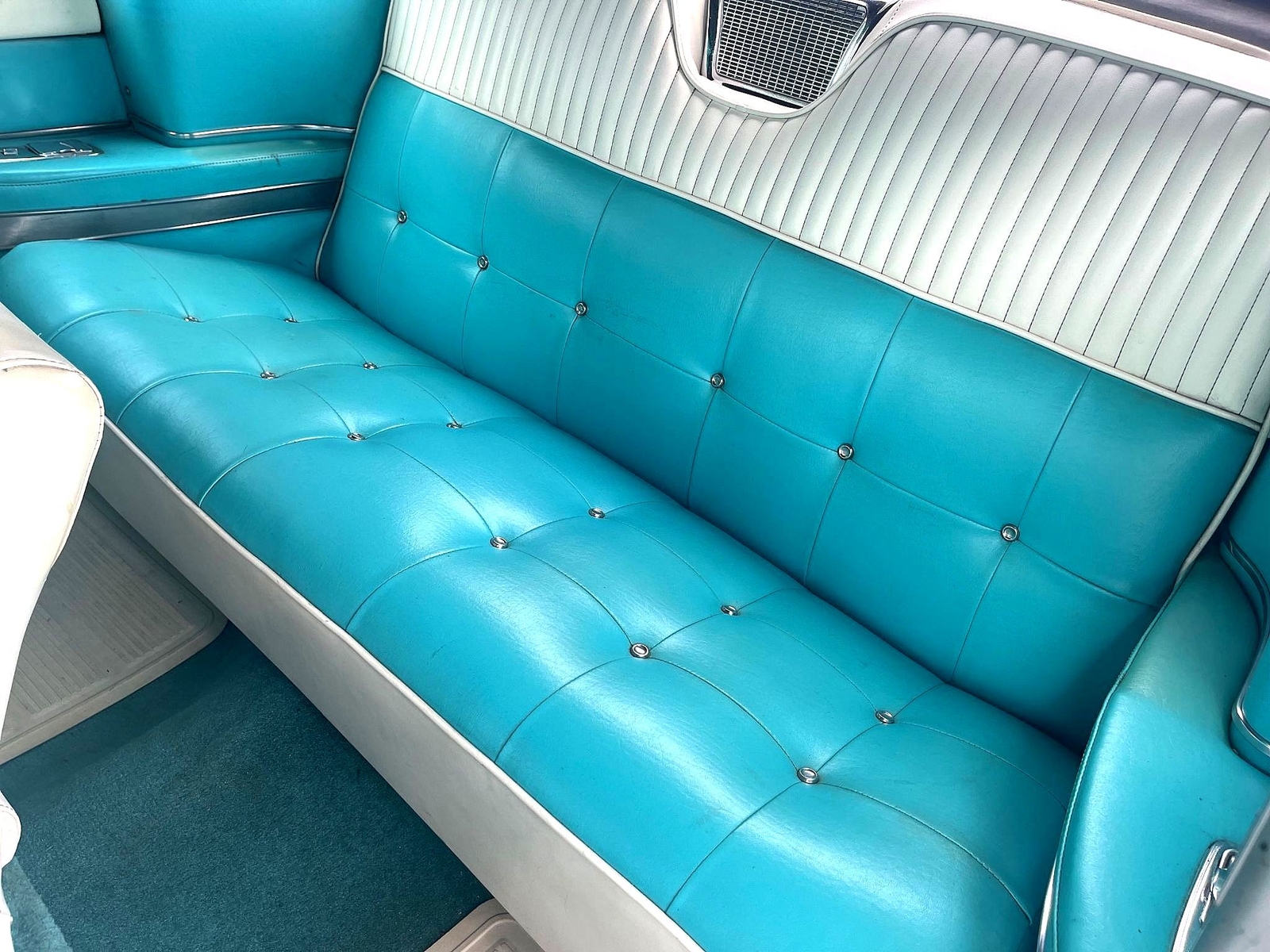 1957 Cadillac Series 62 Convertible Rare Blue with Original Blue and White Leather Interior. The Cadillac was GM's premier luxury car!! Just arrived older restoration looks fantastic in and out great leather interior looks beautiful leather dash. Runs and drives like a yacht. The 1957/58 Cadillac’s new chassis let it sit lower, the bumper guards now had rubber tips and the parkers mounted within the bumper. Tail fins, like a cut off shark fin, the tail lights round too. Models available in 1957; Series 62; 129 inch wheelbase; 2 door Hardtop, Convertible and 4 door sedan. Upmarket Coupe deVille and Sedan deVille Hardtop (scrolled 'deVille' on front fenders), Eldorado Biartitz convertible and Eldorado Seville 2 door Hardtop (different rear quarters) . Engine; 325hp 365 cu in OHV V8 (all models) except the Eldorado that was equipped with two four barrel carb's......