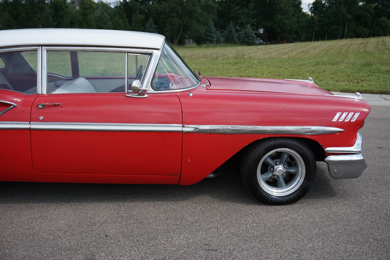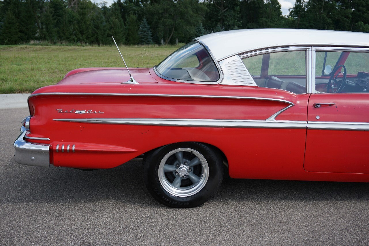 SUPER COOL and EYE-Catching 1958 Chevrolet Bel-Air. NOT a $150,000 Barrett-Jackson Bank Breaker, nor a perfect show piece, but a very nice driver that will turn heads at any classic car event. Lots of $$$ spent on recent upgrades! Lots of original patina on Paint and Chrome including nicks, scratches, dings, etc. that give this car that cool patina look. Has been cleared with Poppy's Patina. Missing Radio and few trim pieces on interior. Factory Radio included! Starts Easy, Idles Smooth, Runs Strong (See Video!). Please call or email with any specific condition questions.866-718-6504.