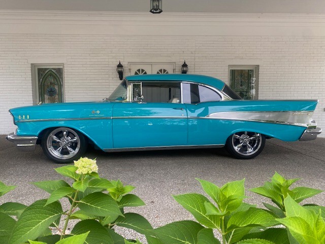 This is a pristine 1957 Bel Air. It is a full frame off restoration with upgrades in 2022. 350 fuel injected engine, small cam with Holly Sniper fuel injection system with new polished intake manifold and Sniper ignition system. TCI 700R4 transmission low car shifter with throttle and kick down cable, serpentine belt system, wildwood front and rear disc brakes. Polished serpentine drive system. Ridgetech rear coil over kit, Qa1 adjustable suspension, 2" drop down spindles and Ride tech shocks. PRC polished radiator core support setup with electric fans and transmission cooler. Dakota digital dash gauges. Holley fuel system with steel braided lines. Polished headers with custom exhaust. Leaf springs/ride tech shocks. New steering box complete with all rag joints and hoses. New drive shaft was made with new yoke and joints. Many more upgrades were done in 2022 by C&S Performance Engines and other shops. A little history on this car; it was originally from Buford GA. The car was kept within 3 blocks of the dealership where it was sold. The car was originally given to an employee who was injured on the job in 1957 in lieu of workers comp. The employee kept the car until he passed away and promised the car to the pastor of his church. Unsure of year original owner passed, but the pastor started restoration and became ill so the congregation completed restoration. Several of the people in the community knew of this story when my wife and I went to purchase the car for my brother. My brother has made many upgrades since the purchase of the car 3 years ago to total over $110,000.00 invested in the build of the car.