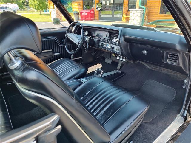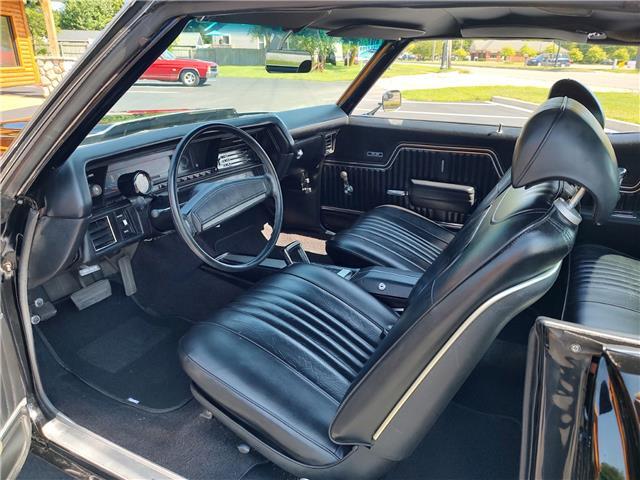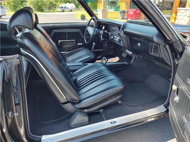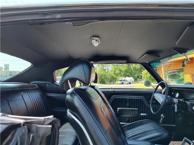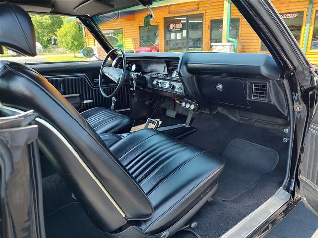 Black bucket seat console interior, original dash and dash pad in excellent condition, nicely outfitted with AM/FM/Cassette stereo, trio of gauges nicely mounted under dash, original SS steering wheel, at time of restoration had new headliner and front & rear door panels, original arm rest in excellent condition, original rear seat in excellent condition, front seats have been reupholstered, front seat belts with shoulder straps, original center console and correct staple shifter in excellent condition, new carpet, original sill plates in excellent condition.